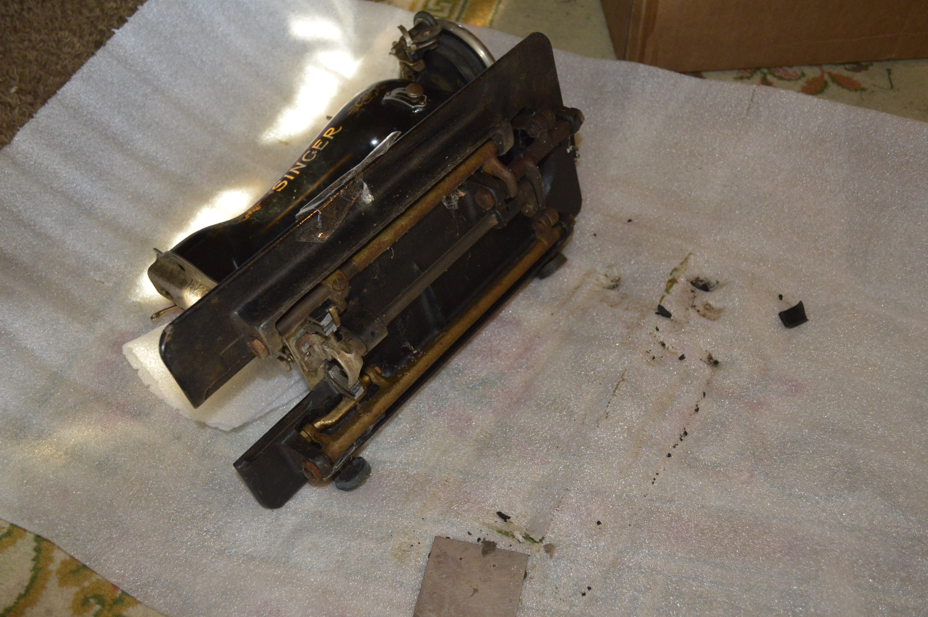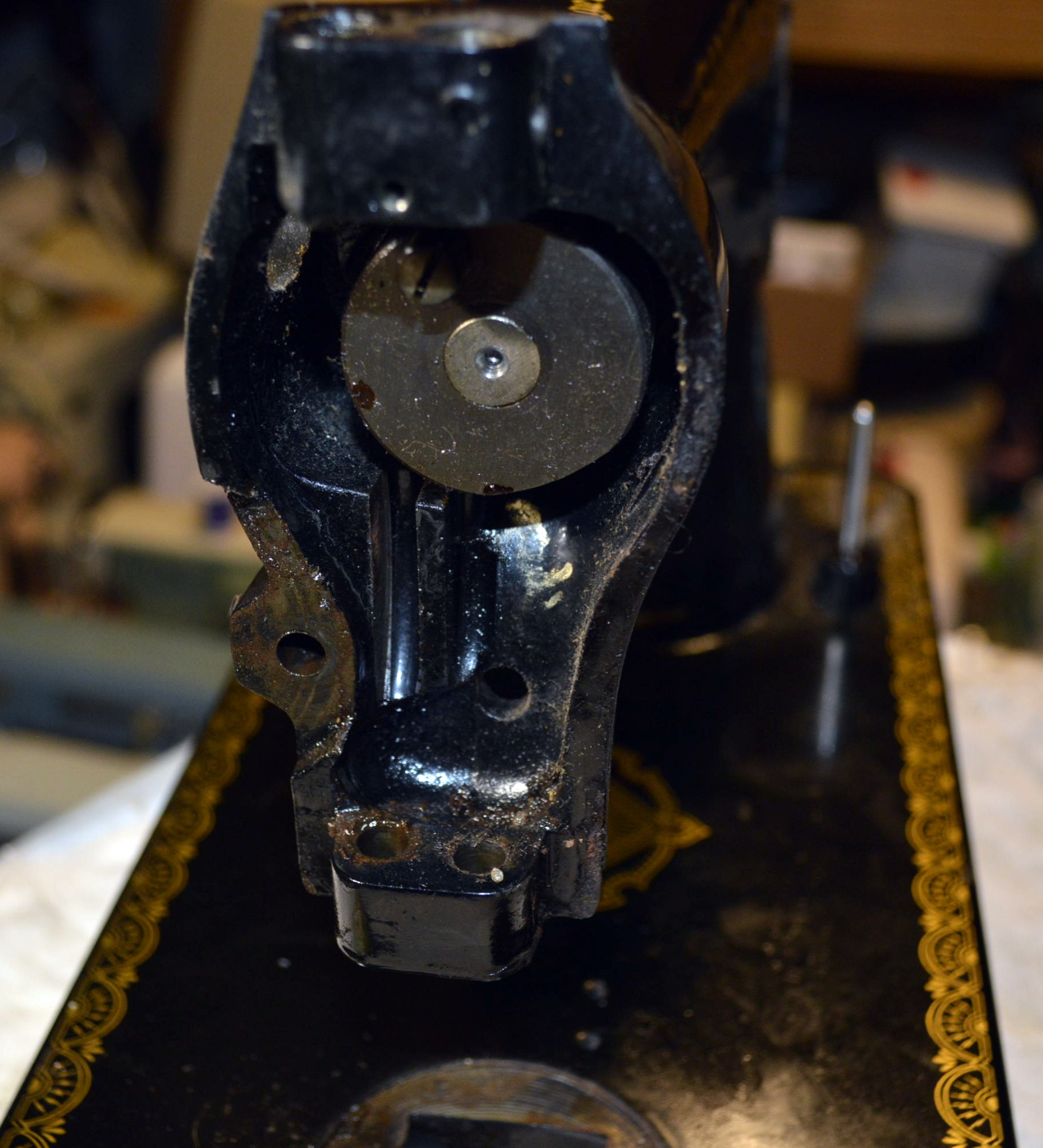 This is the 1938 Singer 15K that I originally intended to restore… but the machine’s casting that holds the bobbin shuttle race and hook was broken in shipment.