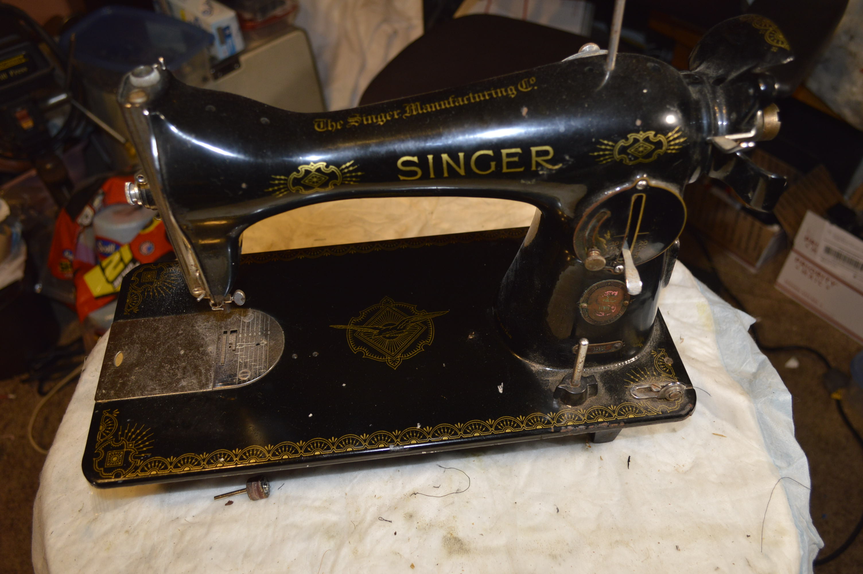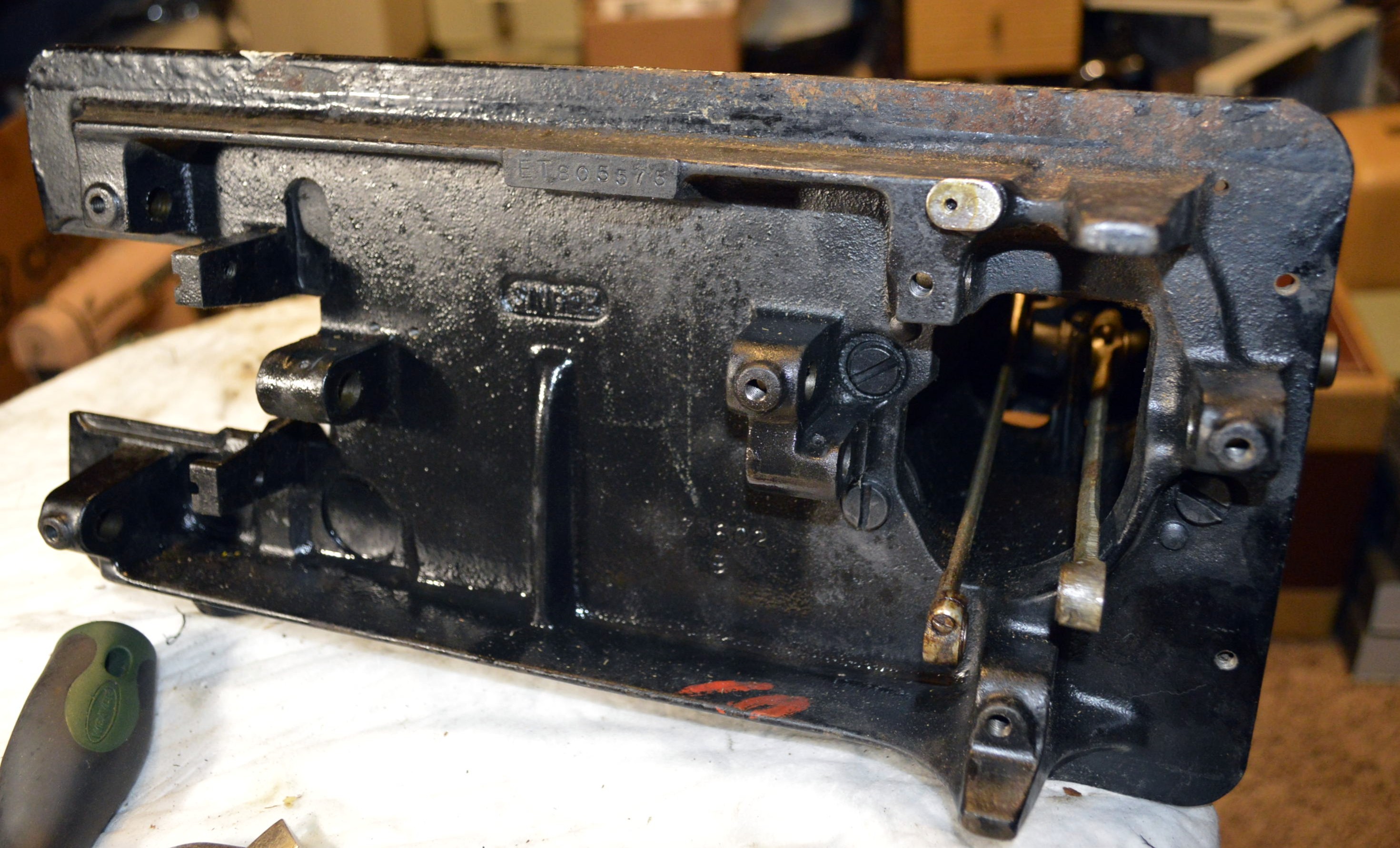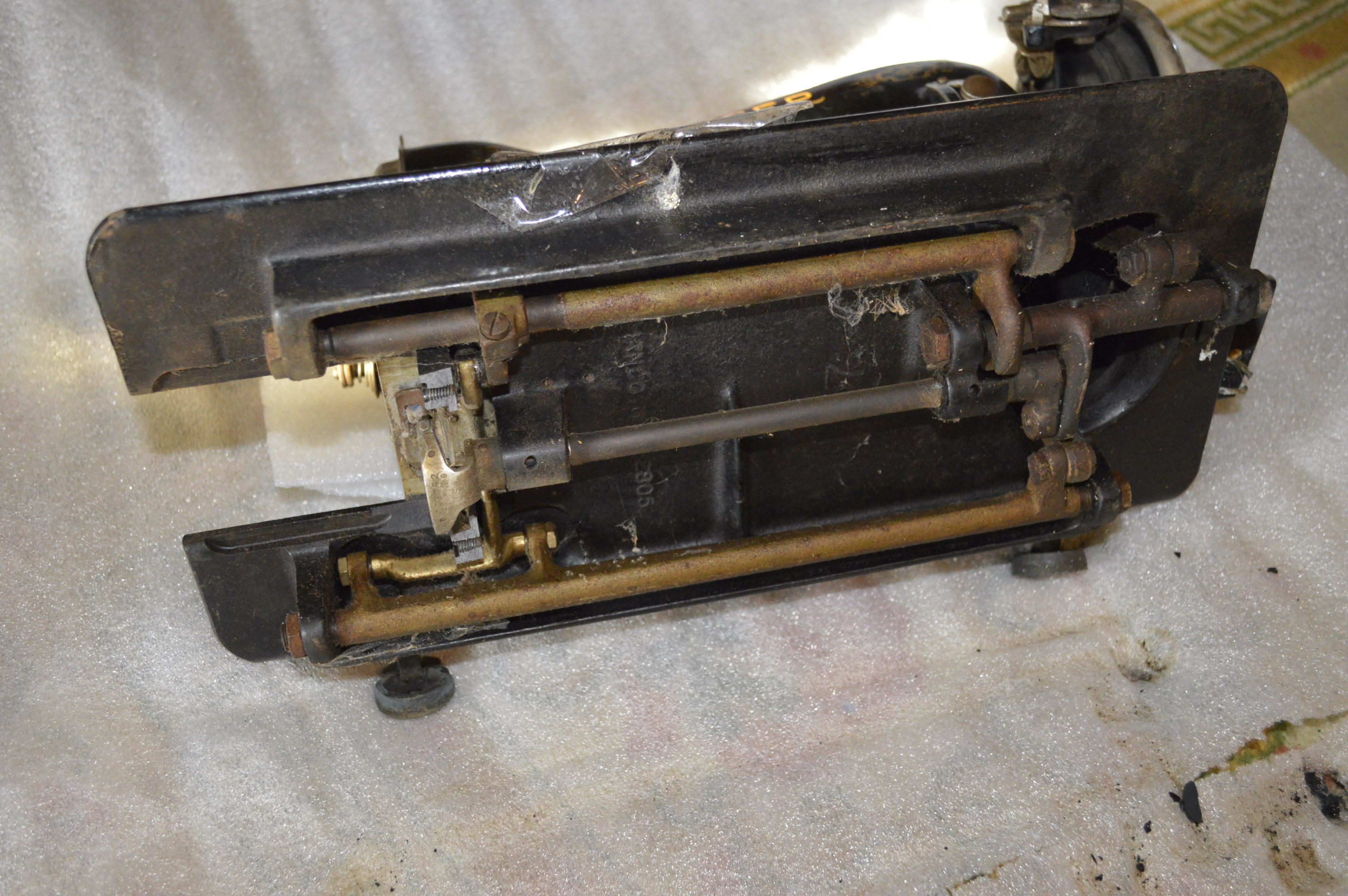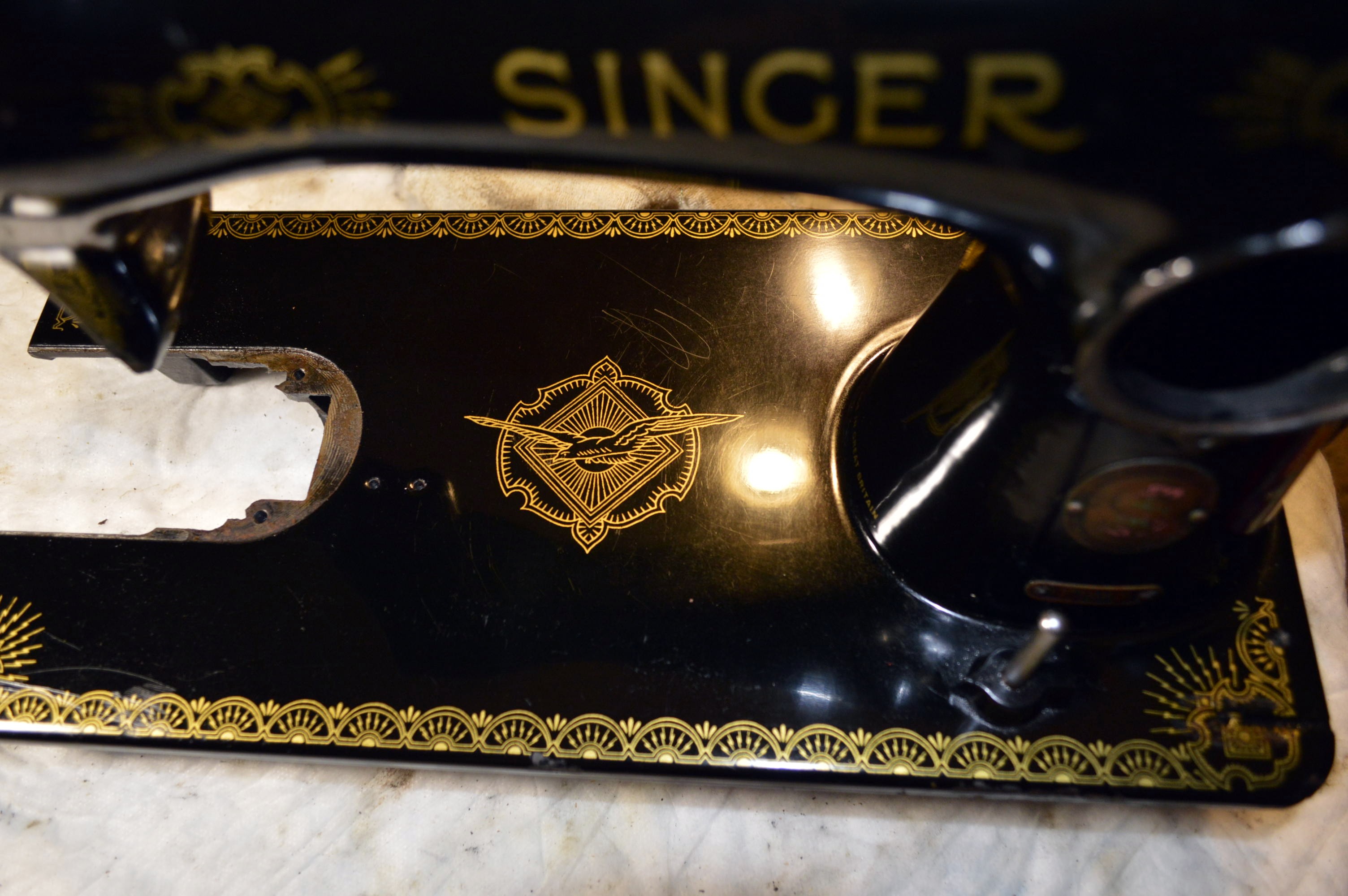 About the machine… Singer began production of the model 15 in the early 1870’s and it was in constant production until the early 1960’s. Essentially it remained the same machine with a few features added in its evolution. The last model produced was the model 15-125. Many are familiar with the Singer model 15-91 because of its gear drive and potted motor, but they were manufactured in different variants. This one is belt driven by an external motor. The Singer machines made in Great Britian and Scotland were designated with a “K” following the model number. This Singer model 15K-110 simply signifies that it is a model 15 made at Singer’s Kilbowie plant in Scotland, and it is the 110 series. No, it is not rare, but it does represent the first model 15 that Singer produced with the feed dog drop mechanism activated by a knob located on the sewing bed, adjacent to the sewing arm pillar. This will be important later. For now, lets just focus on the process.It also has the RAF decal set (yep… Royal Air Force).