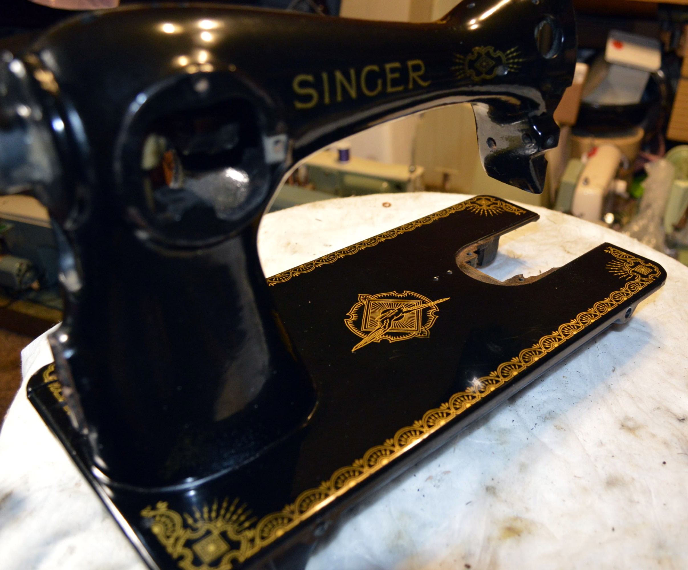 “Making a silk purse out of a sow’s ear”. I heard this old saying when I was a kid. It means being able to turn something ugly or inferior into something attractive or of value. So it is with vintage sewing machines. Say you come across an old black Singer sewing machine in your travels and it is dirty, or rusty, or so stiff it will hardly turn … is it worth a second glance? Well, unless the cast iron bed or sewing arm is cracked in half, I think the answer is “YES!”. The decals may be in great shape or maybe they are worn from use, it doesn’t matter. Why? because it is fully capable of being a reliable, attractive, and wonderful sewing machine with some cleaning and thorough reconditioning.