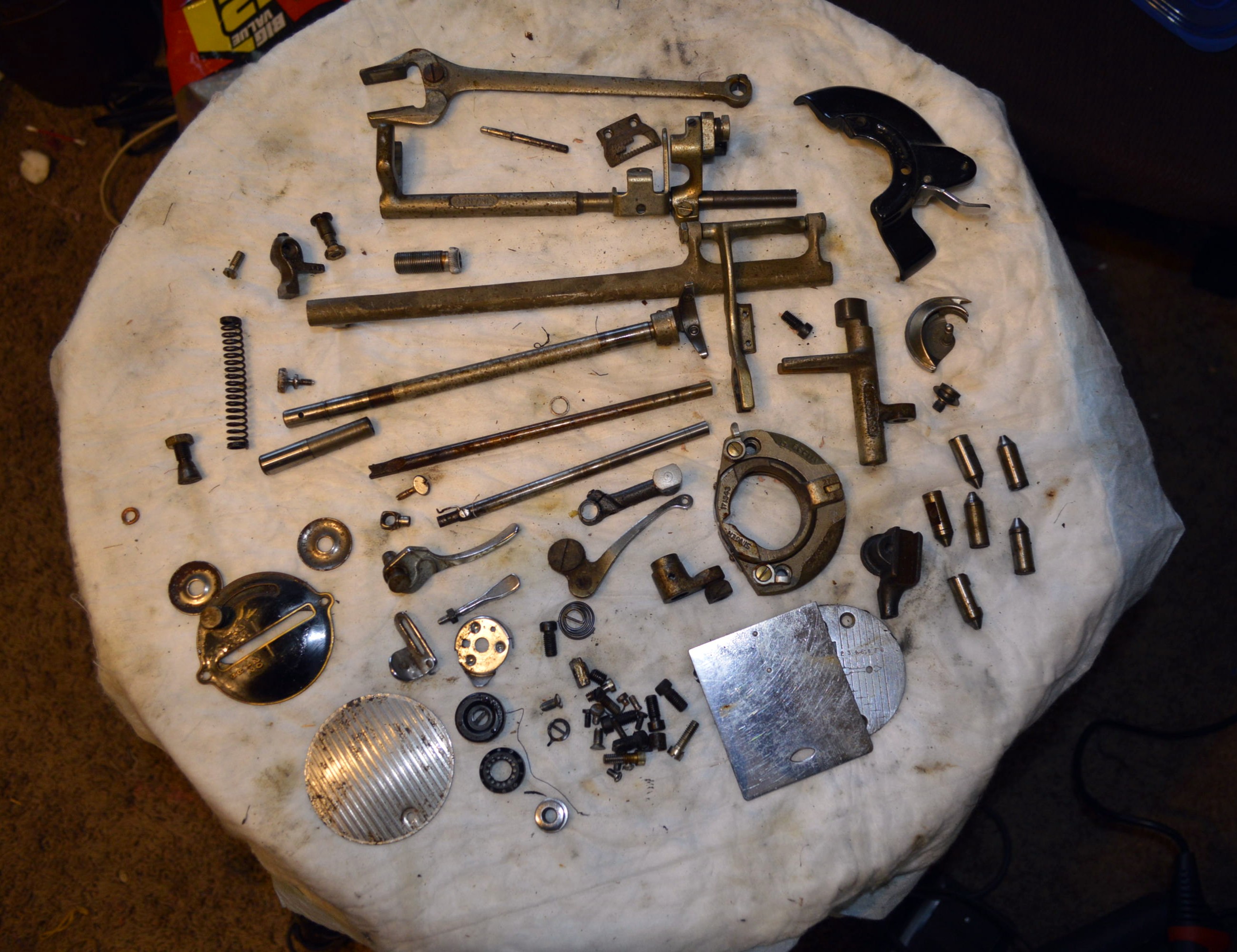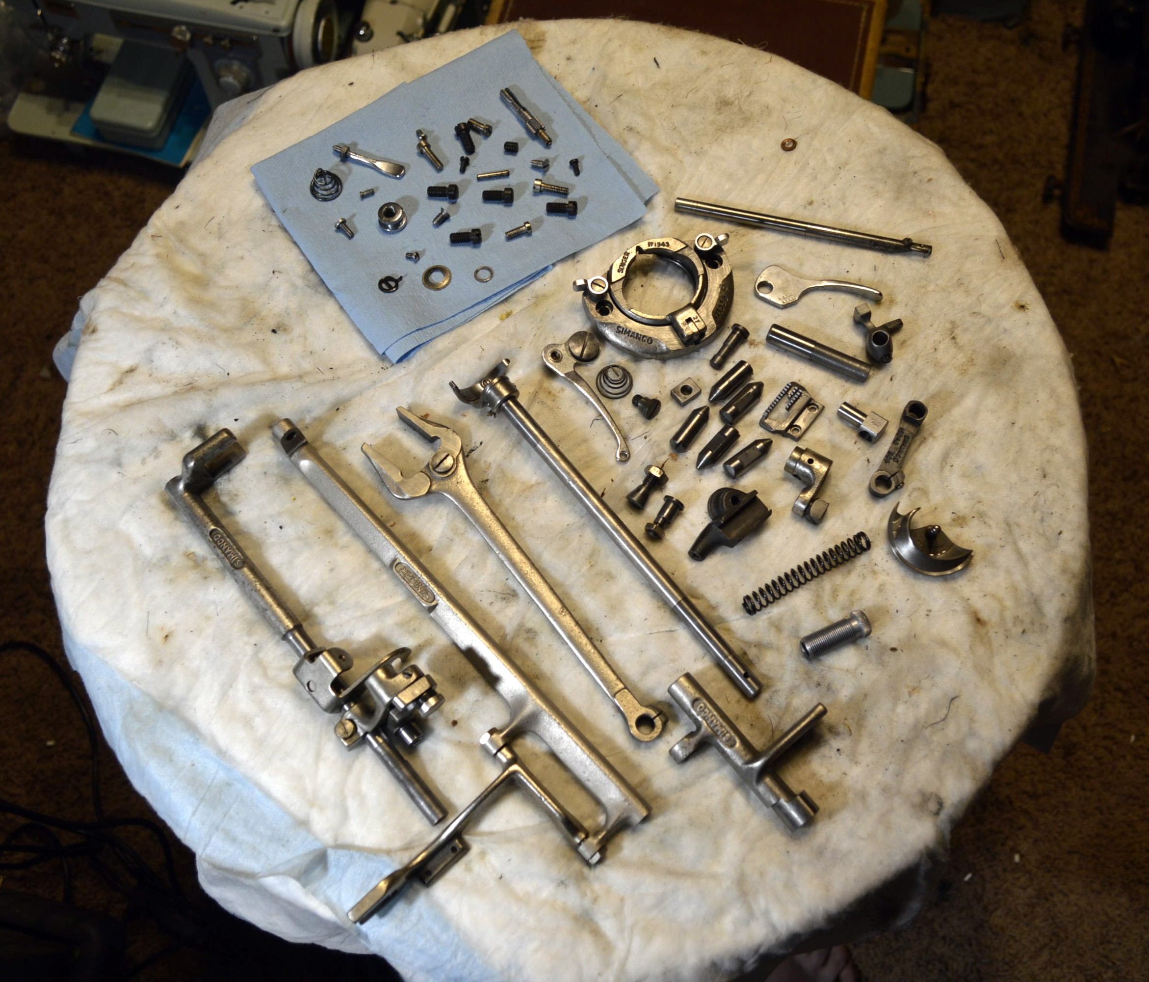 Between the two machines, I have enough to make one, so here it goes. Oh, I forgot to mention to set your expectations appropriately. Damaged decals will always be damaged. Deep scratches will always be seen, and any corrosion or scratches present on the plates, levers, or screws will always leave their mark. The cosmetic condition of all these blemishes can be greatly improved, but don’t expect them to look like new… just a thousand time better.