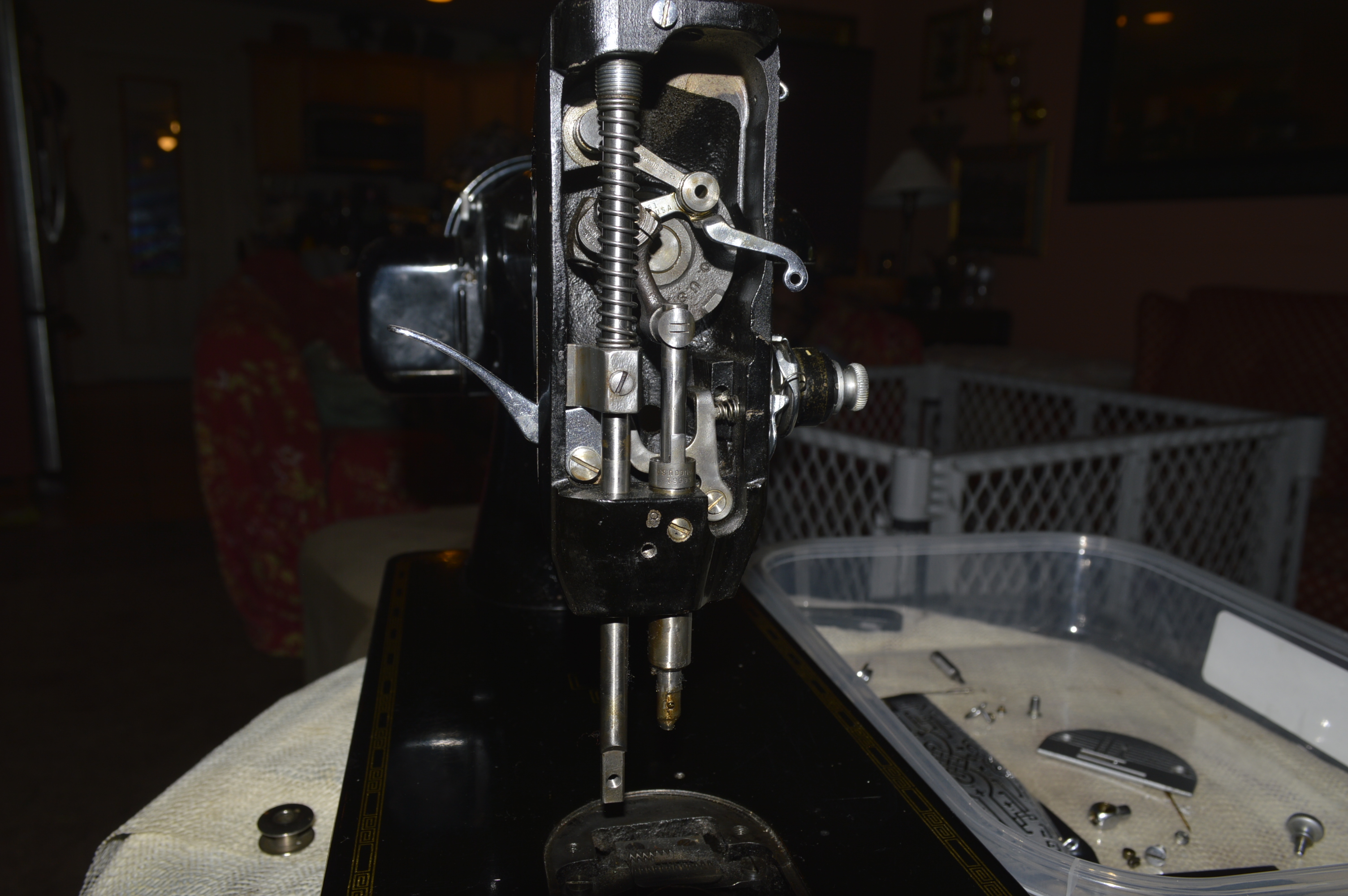 It is not hard to tell, the 201 is silky smooth, quiet, powerful, and produces a laser straight stitch. There is no “play” anywhere in the machine. In a good 201, there is absolutely no loss of movement anywhere in the drive train. The least perceptible movement of the balance wheel results in the same least perceptible movement in the needle bar, take up lever, feed dogs. and bobbin race hook. Every moving part is a free running fit with absolutely no side play. It is truly a precision built piece of machinery. I do a lot of research when restoring a machine… each has it’s little tricks and tweaks to properly disassemble and reassemble. The general consensus is that the 201 is not an easy project to tackle. I agree, but the truth is, the precision of the parts and pieces, makes the restoration of a 201 a worthy challenge, and I love restoring them.