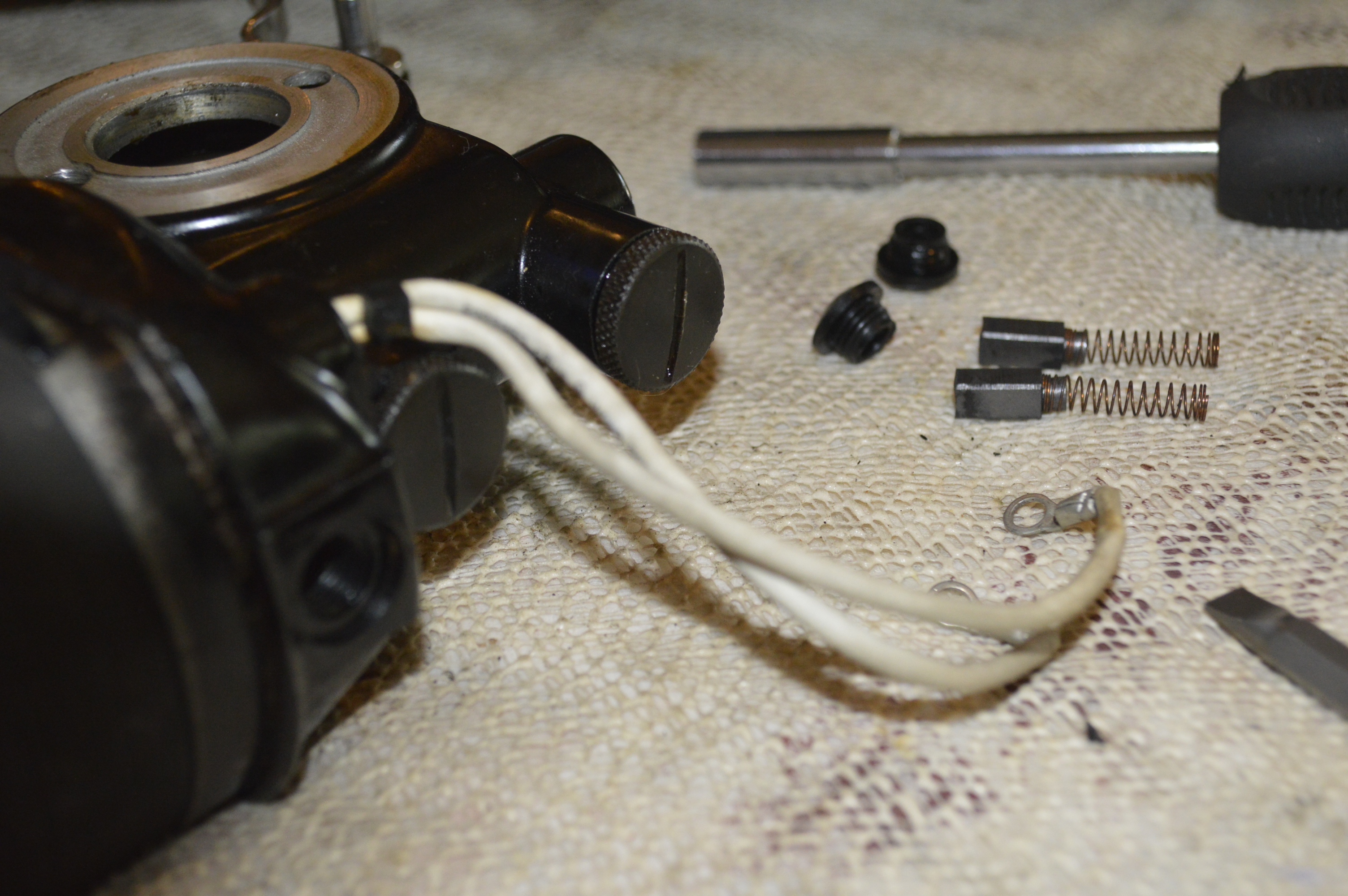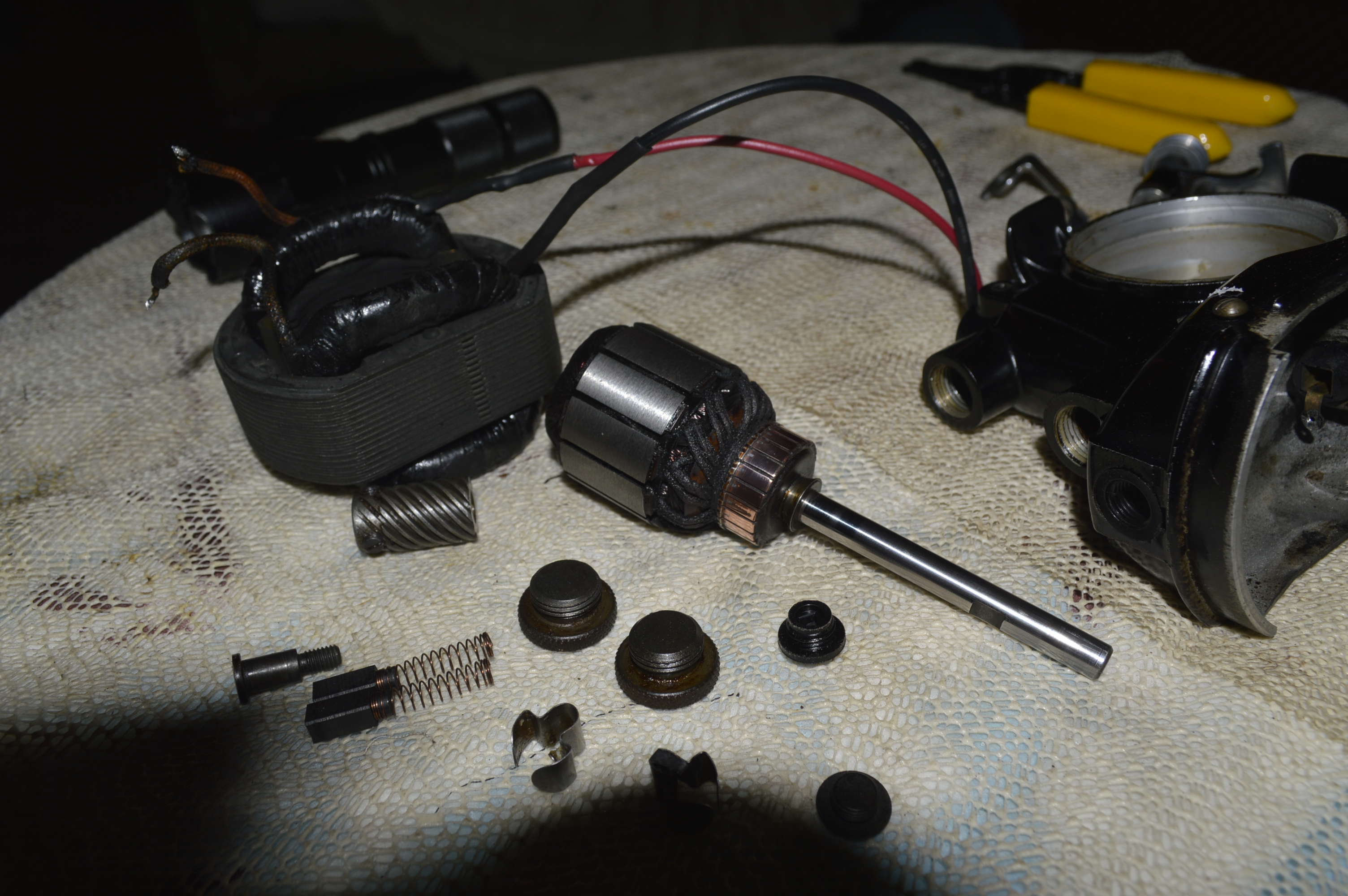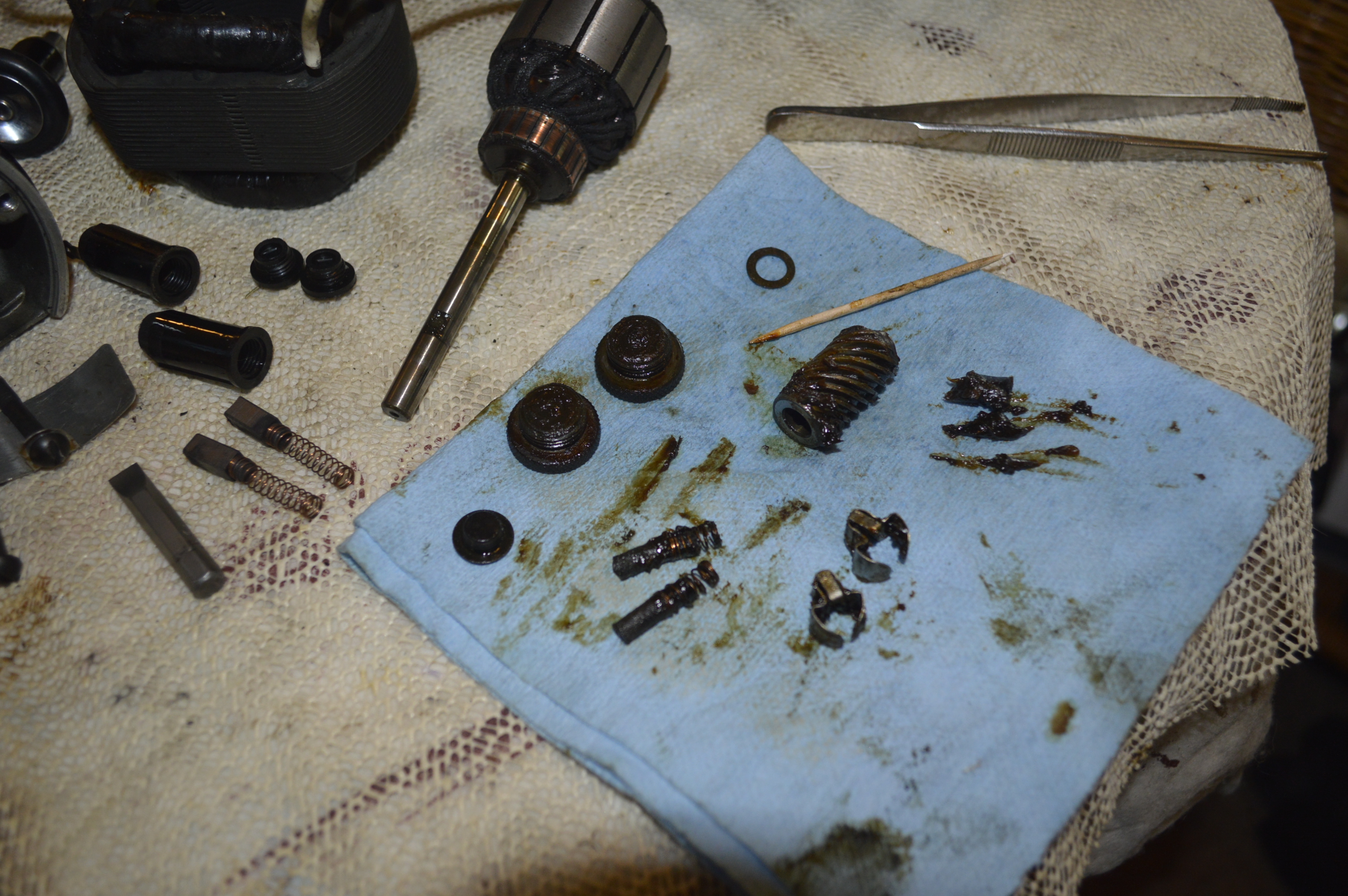 New wires with shrink tubing, armature and shaft polished, spiral gear cleaned, and everything ready for reassembly.