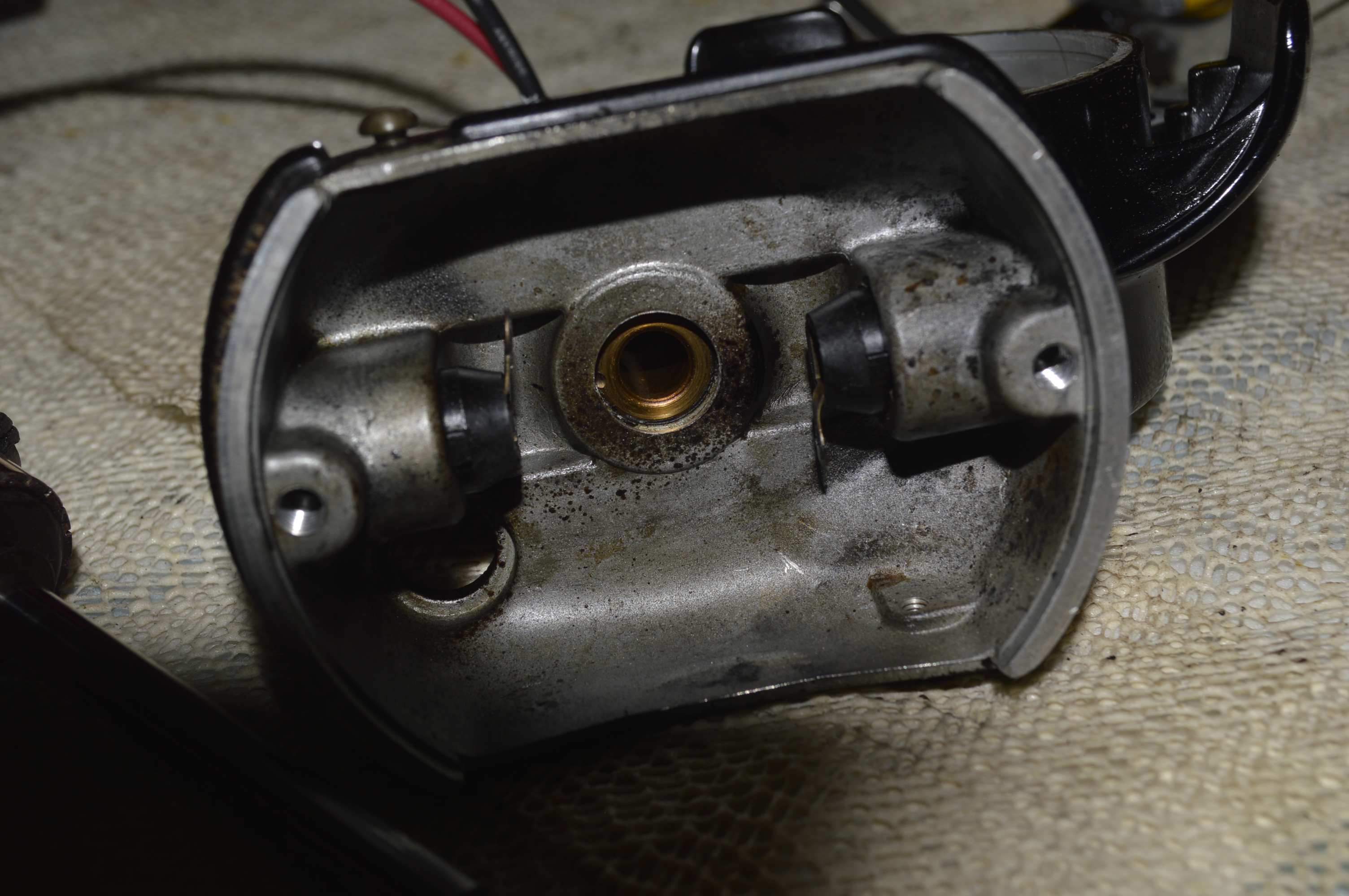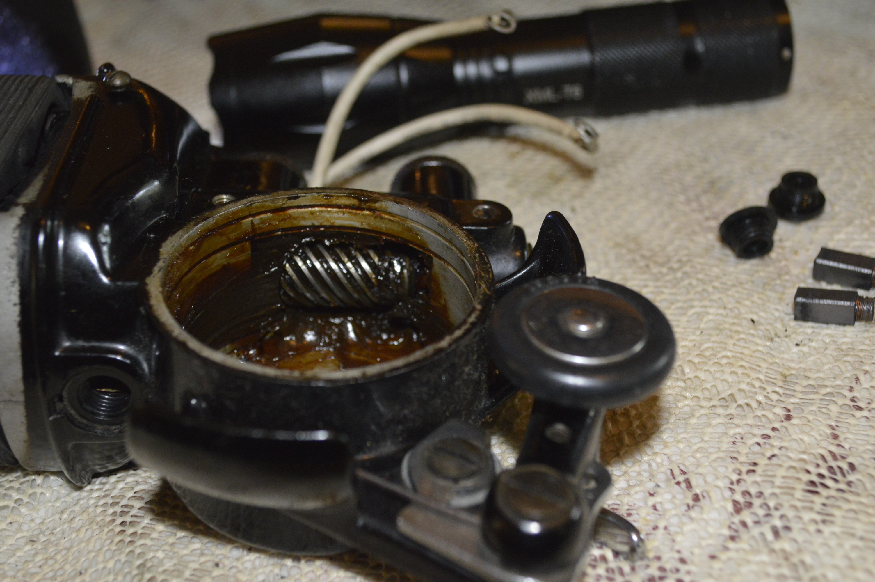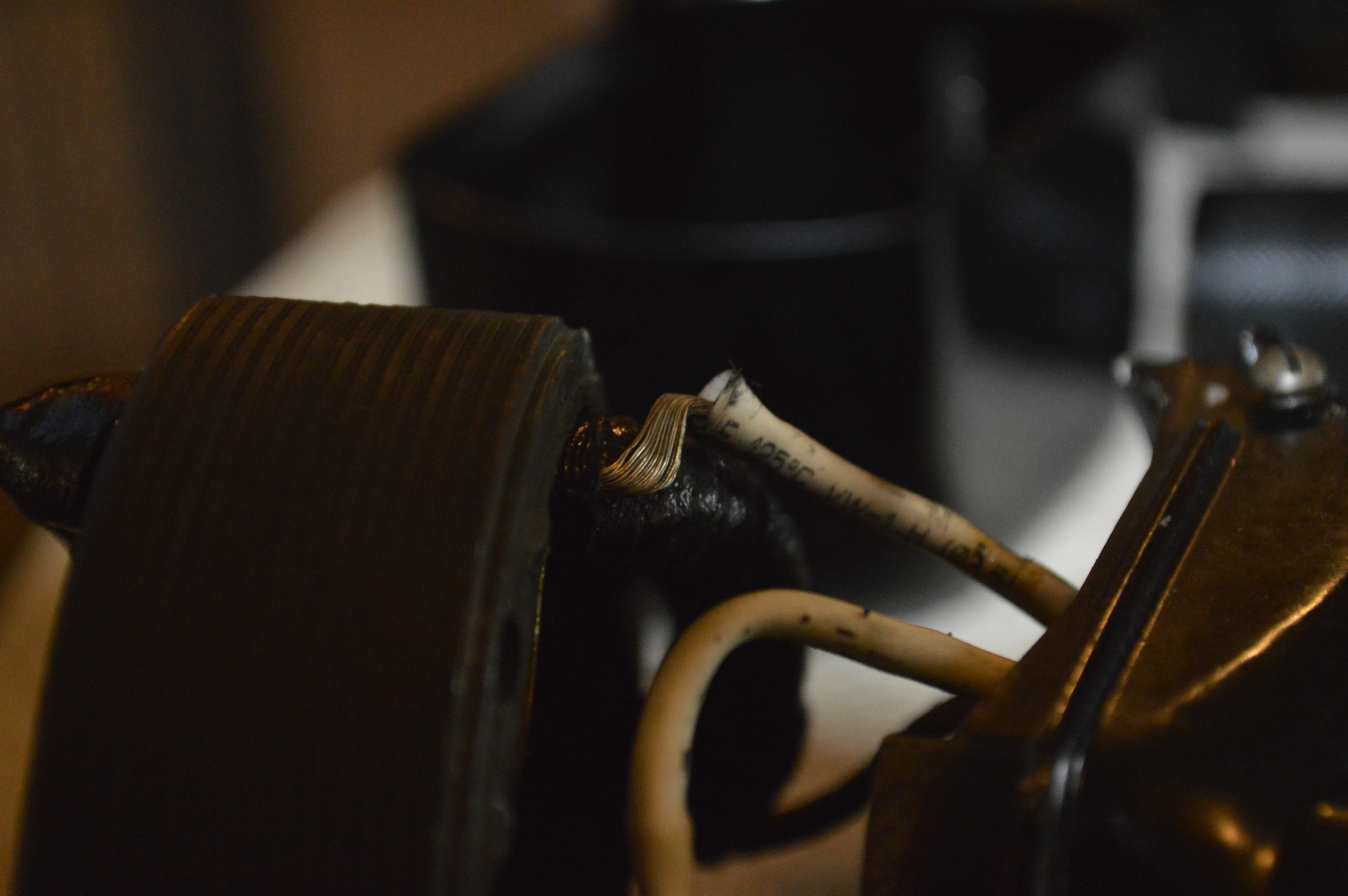 The next step is to disassemble and recondition the motor. Because of all of the thick brown grease packed in the gear housing, I elected to desolder the wires from the brush tubes so I could isolate the housing. The grease is picked out as best as possible and the housing and spiral gear is soaked in kerosene for about 24 hours… there is no rush since there is other stuff to do. The shrink tubing is removed from the field coil and replaced with proper wire. The armature and armature bearing shafts are polished, and the grease wicks are replaced. After reassembly, the grease tubes are filled with motor grease lubricant.
