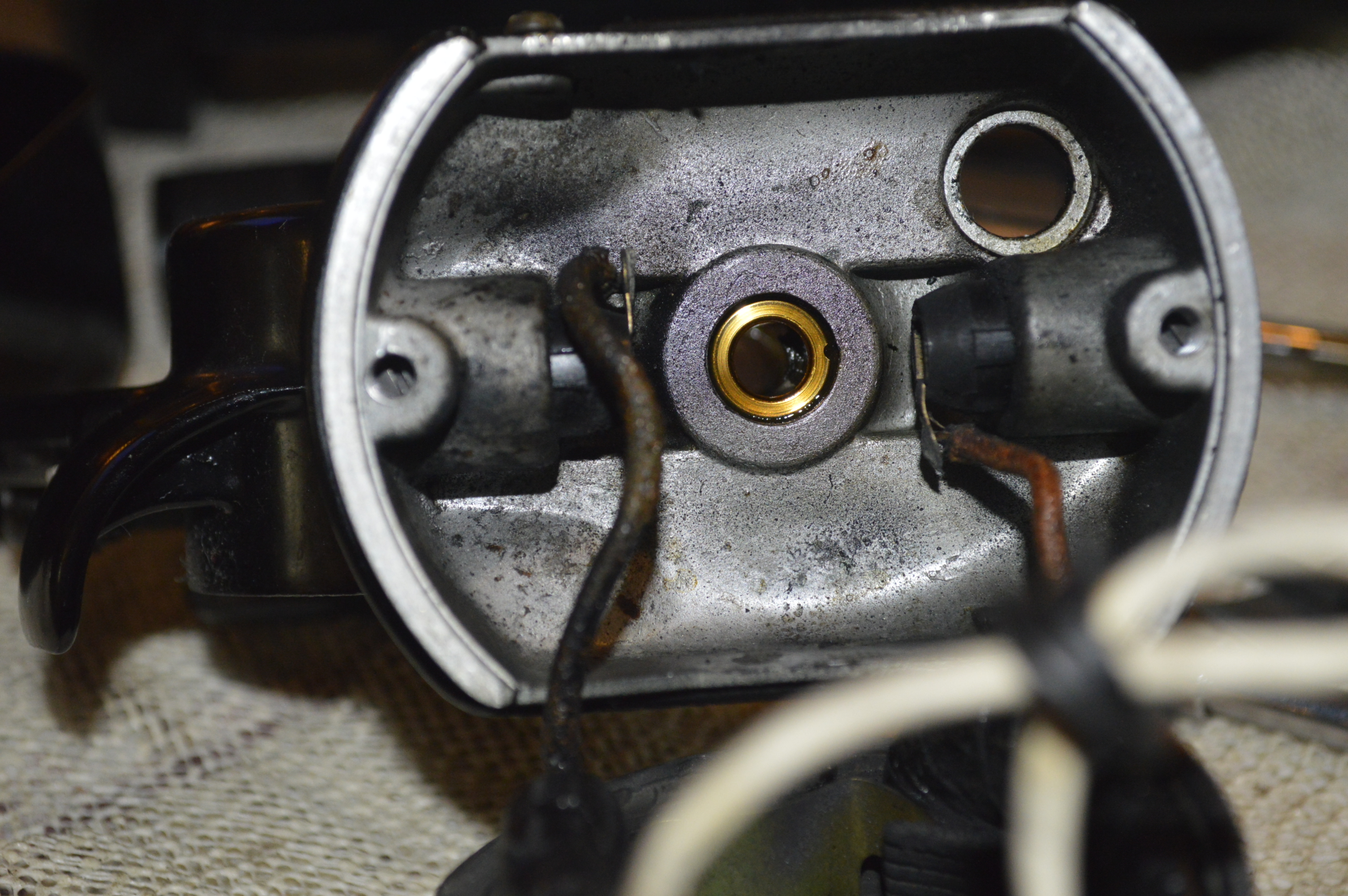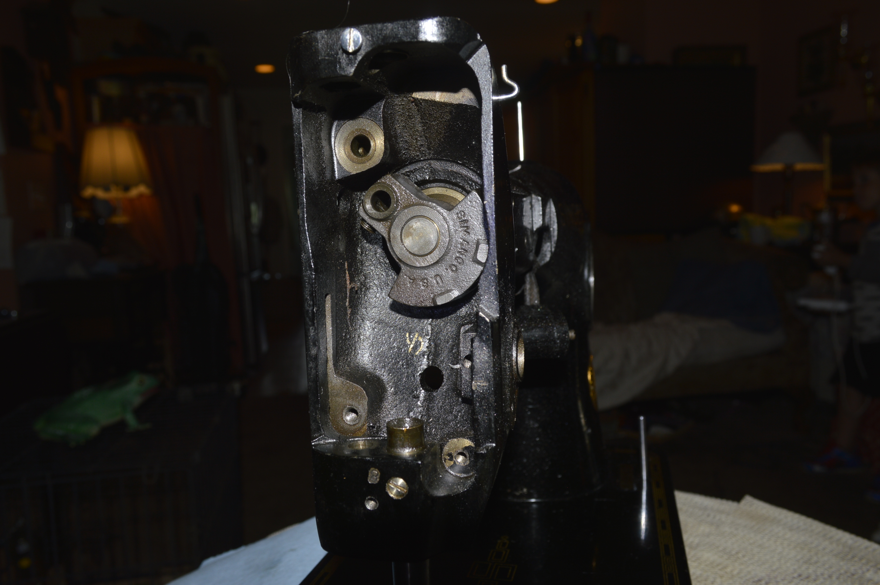 Compare this to the before… its in the center of the picture… also note the needle and presser bar. They too need to be polished.