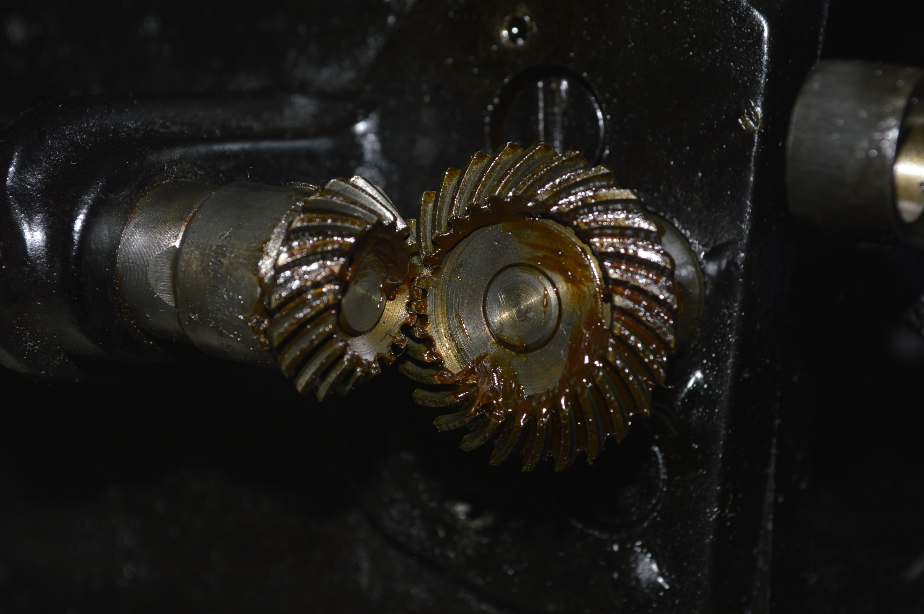 After the gears are cleaned, they are regreased and the shaft bushings lubricated with tri-flow oil. All of the bushings are cleaned and ready for the reassembly with the cleaned and polished parts.