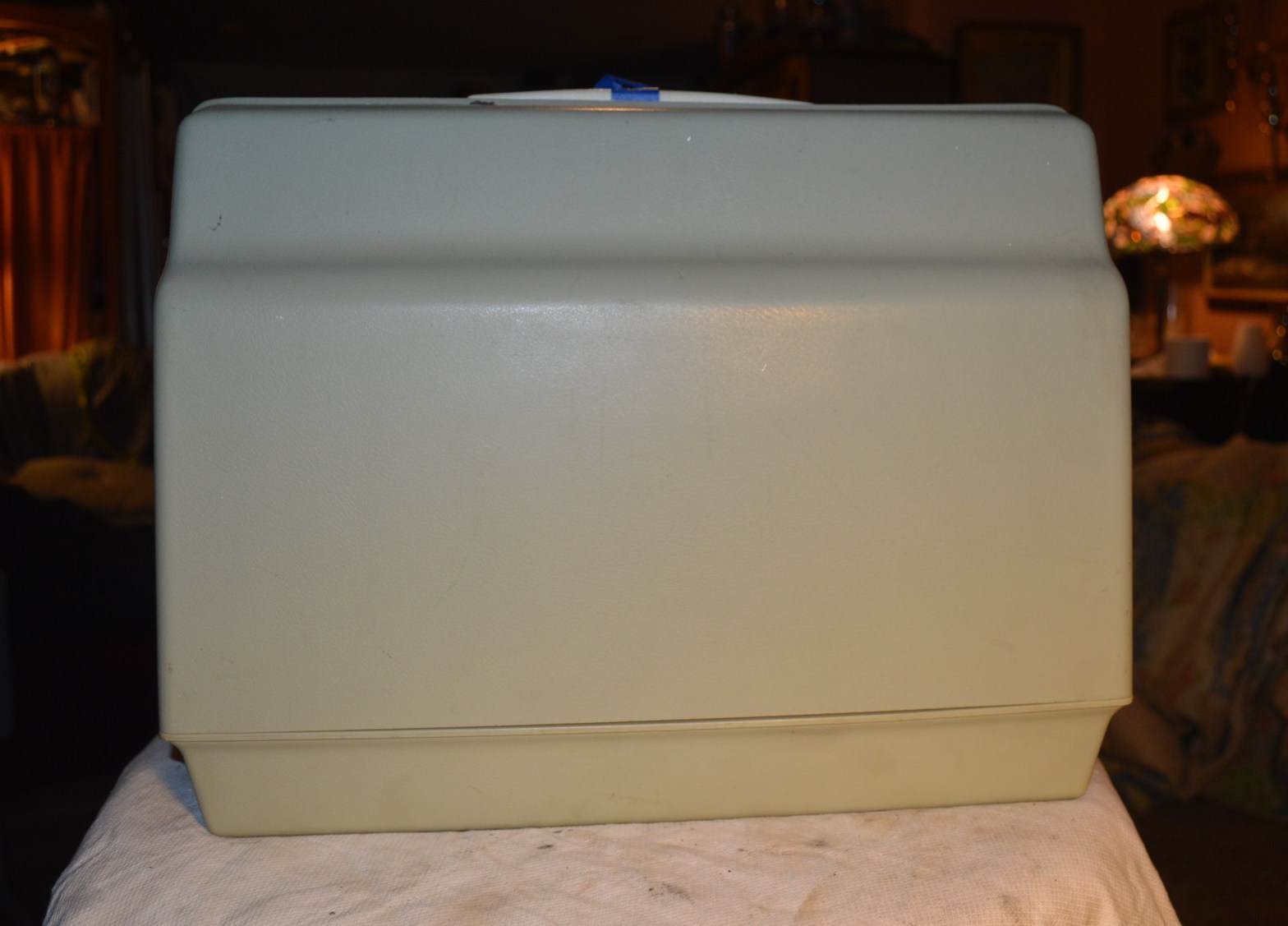 Kenmore sewing machine cases… they are very durable and I consider them to be the best vintage sewing machine cases out there. Even after decades, they have held up with no signs of aging. This case is from 1968-69. It has some battle scars but despite these, the sewing machine was protected. The case is still structurally strong and will continue to carry and protect this machine for years to come.