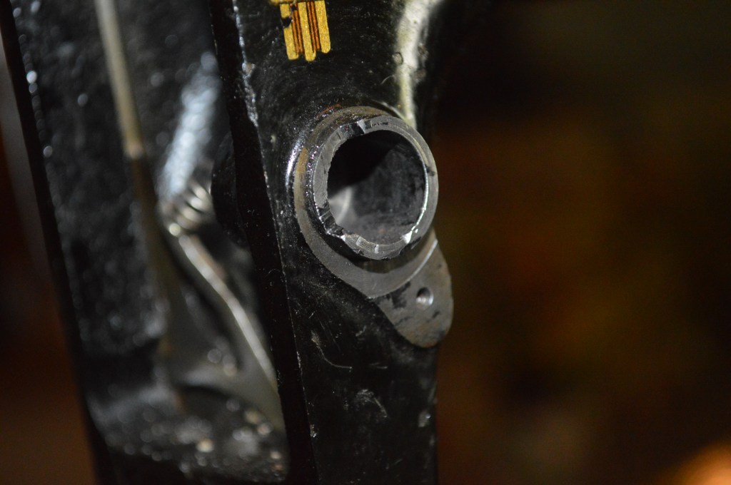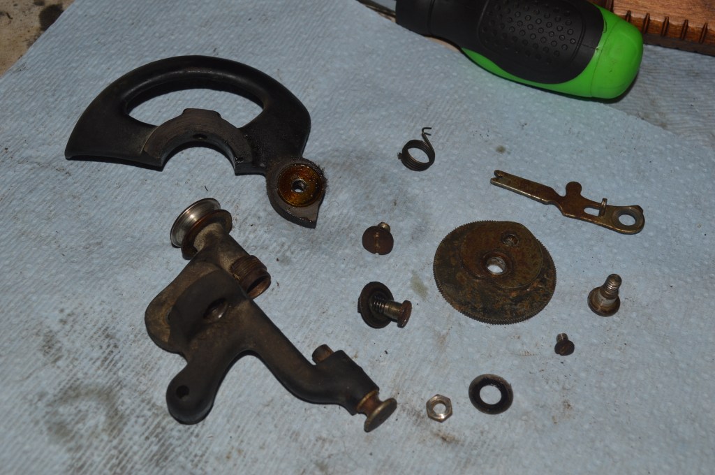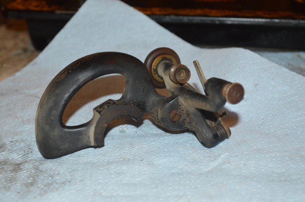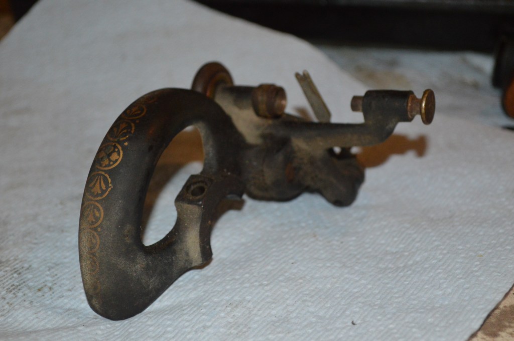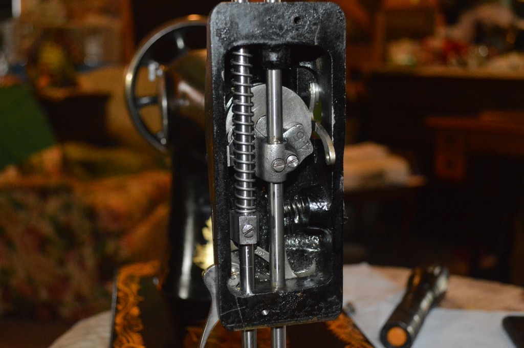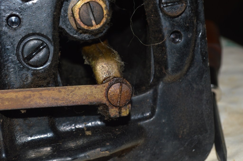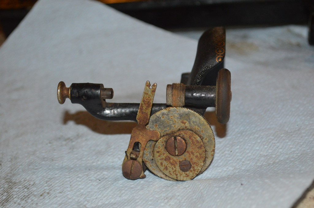 One advantage of disassembling a sewing machine to this level is that you can see every previous attempt to fix it… meaning that something got bunged up. Looking at the tension control housing in the following picture. It looks like someone tried to turn it with a hammer. The gouges left are proof of some attempt to “fix it”. Fortunately they stopped because it is cast into the body of the machine and can’t turn. Had it chipped off, I doubt if the sewing machine would still be with us today instead of being discarded in the trash. I wonder if that’s what happened to the fork mechanism? Still, it’s clues like this that make you wonder about it’s history and the stories it could tell.