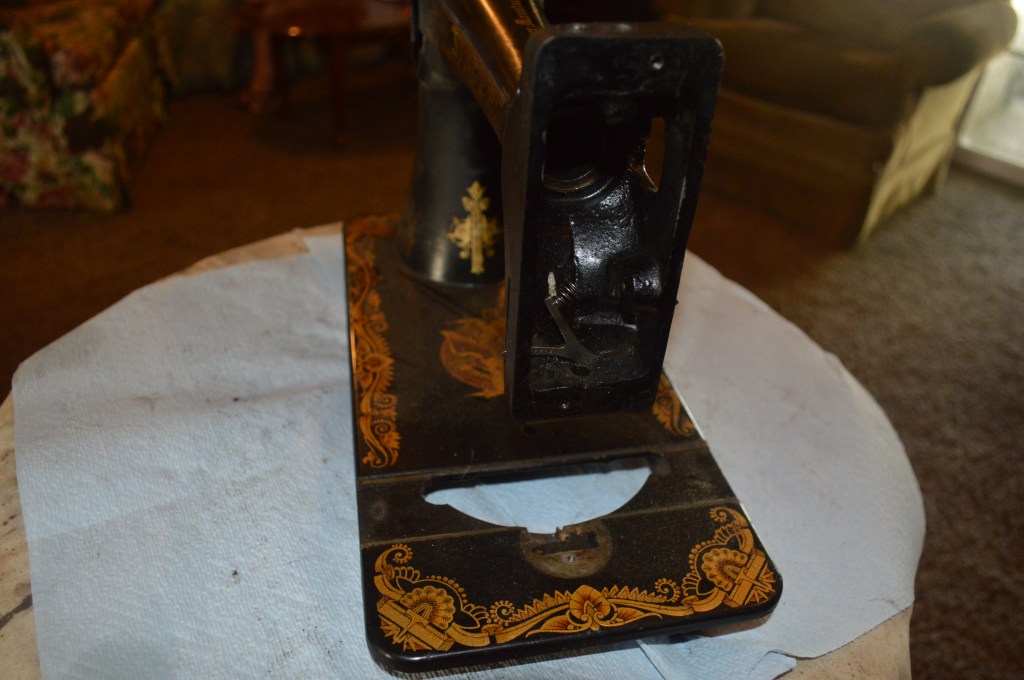 Since the beginning of the pandemic, personal protective equipment for health personnel has been in short supply. In response to this, there are groups of individuals who have come out to make face masks. To make face masks, they need sewing machines. Realizing that many of these folks do not have a sewing machine up to the task, I offered to provide a couple of good vintage sewing machines to support their cause. One of the recipients of a machine happened to have their Grandmother’s old sewing machine. She asked me if I could get it sewing again and being the cautiously optimistic person I am, told her I might be able to help. She brought it with her to pick up her “new” machine and I was surprised to see she had a wonderful Singer Model 127… and it has beautiful decals! Longer story short, I offered to restore it for her in gratitude for her wanting to sew masks to support the many, many folks that need them. Mostly because she deserves it for the great work she is doing, and partially because the machine deserves it.