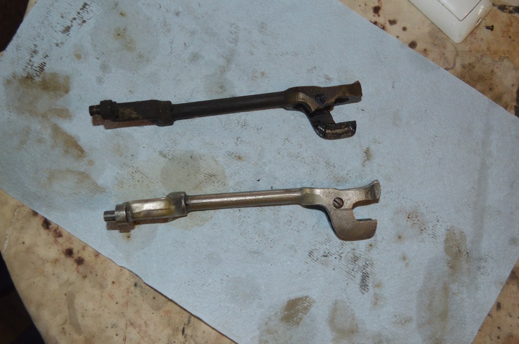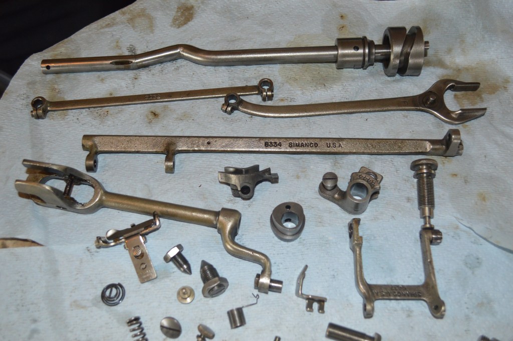 During the disassembly, I discovered that the fork mechanism in the arm shaft was broken. I can’t say how or why it broke, but the machine could not sew in this condition, and a replacement part was needed. Believe it or not, finding parts for this machine proved to be much easier than most newer machines… hmmm, I wonder if that is a symptom of planned obsolescence… a condition these machines are immune to. Replacement of this part is difficult and requires disassembly of the horizontal arm shaft, but that’s going to happen anyway. The broken part is shown below.