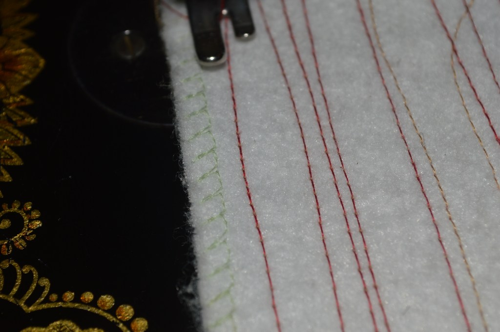 How does it run? Well, it is quiet as can be, only a slight whir of the motor and the click-click of the sewing mechanism punching fabric… the stitch? It is so straight that it is hard to tell where one stitch ends and the next stitch begins… don’t believe me? Here’s proof.