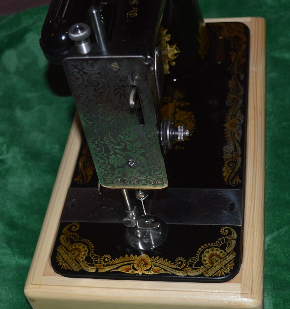 She (the owner) has a treadle cabinet the machine called home for 95 years, but just in case, I built a custom pine base for the machine so she can use with more convenience and portability.