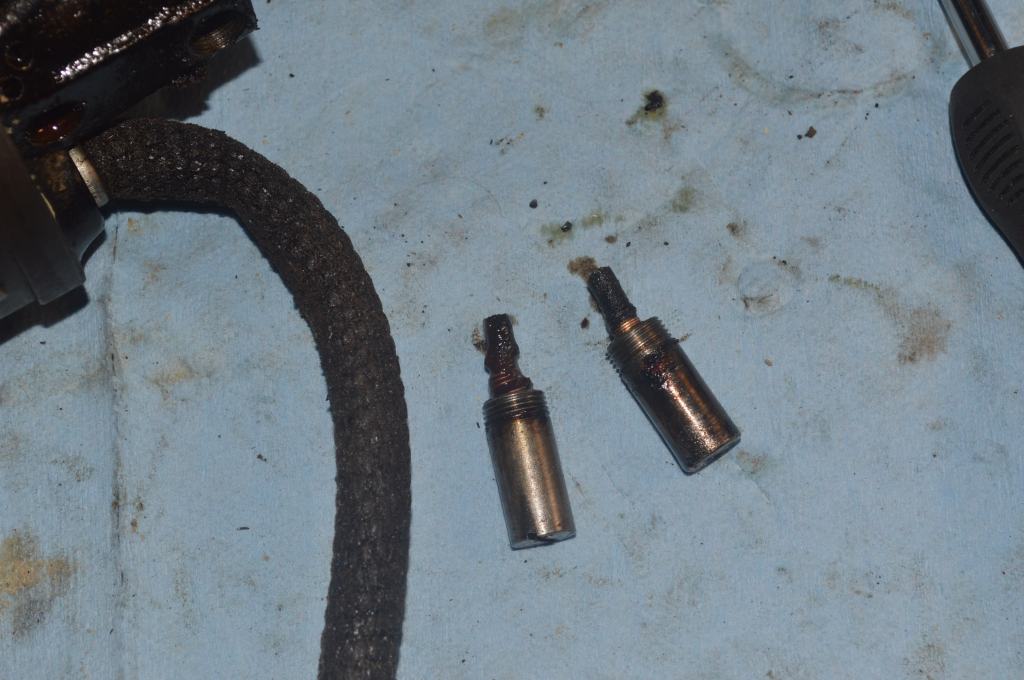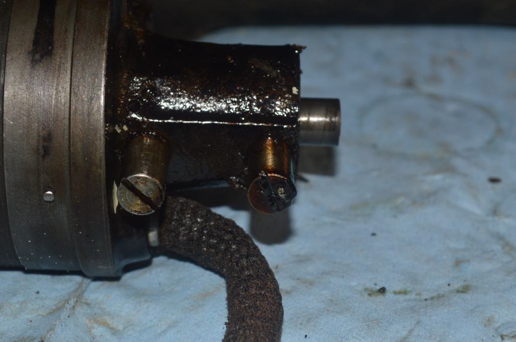 Now remove the grease tubes and grease wicks. The are simply removed by unscrewing the barrels of the grease tubes. The wicks will probably come out with the barrel, but if not, pull them out from the motor case.