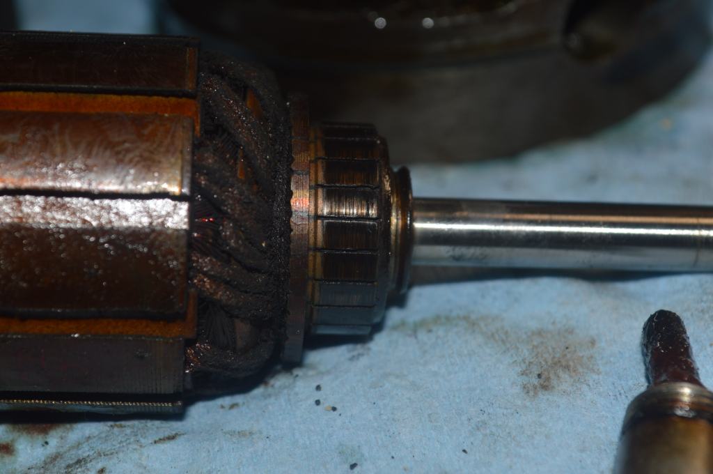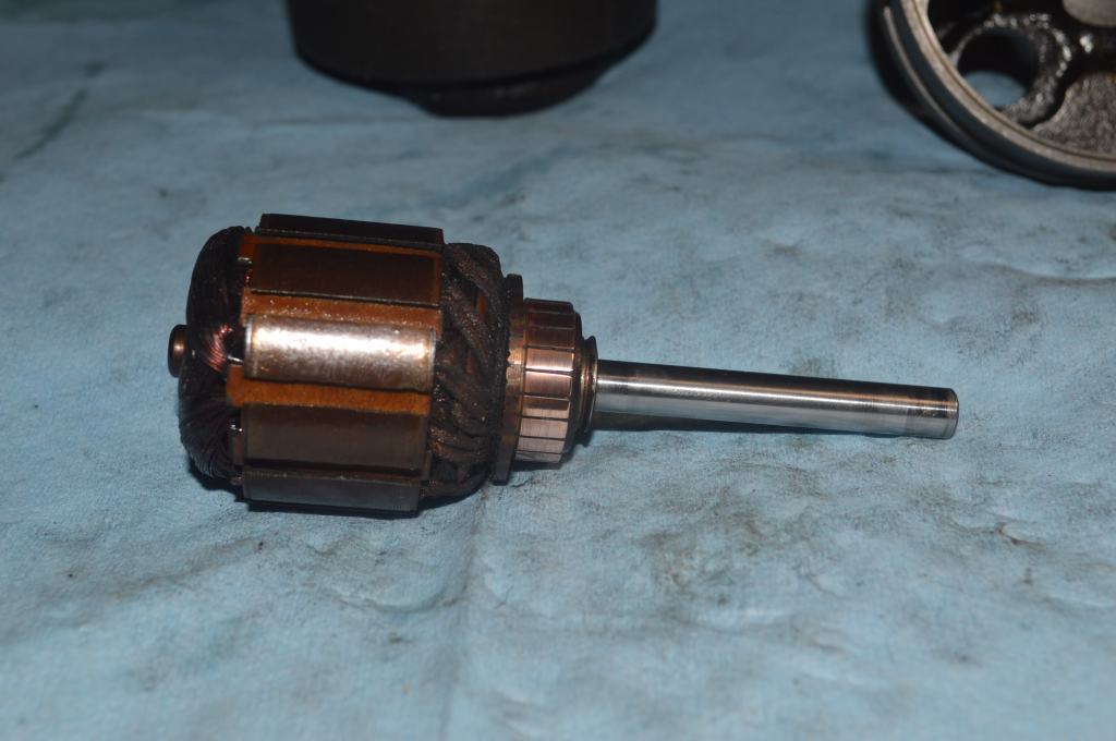 If you don’t have a dremel tool, you can polish the commutator with a drill and 2500 grit dry sandpaper… Chuck the armature shaft in the drill and lightly wrap a strip of sandpaper until it forms a 180 degree arc around the armature and turn the drill until it is polished. If you use this method, keep the sandpaper lightly against the commutator… you are polishing it, not grinding it. When the copper is bright, it’s done. Don’t have a dremel or a drill? you can use a red pencil eraser… it works.