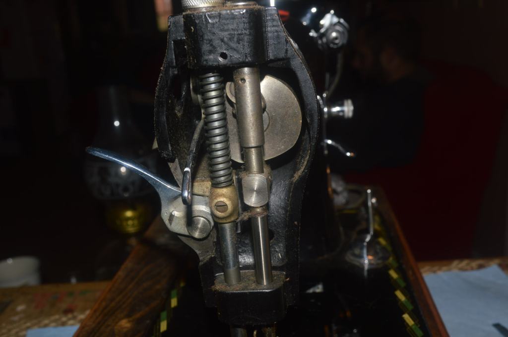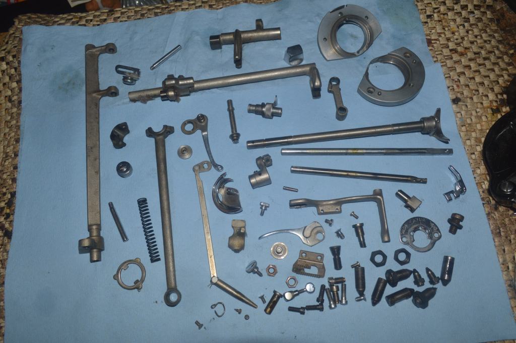 The plan included the disassembly of the top shaft and stitch length fork… The following picture convinced me not to attept this.