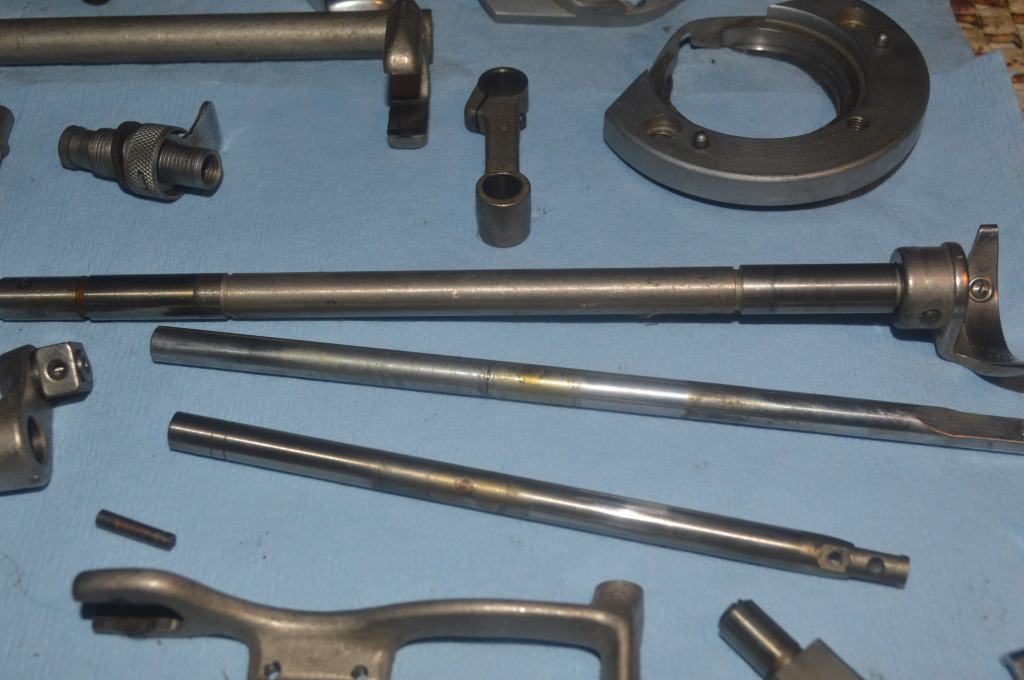 All of those likages fit together and are attached to a single bolt on the machine deep in the pillar cavity. I thought about it long and hard and decide that if I removed these assemblies I may never get them back together and in place. Rather than risk this, I decided to clean them in place. Luckily, the arm shaft turns smoothly and I can work around its removal.