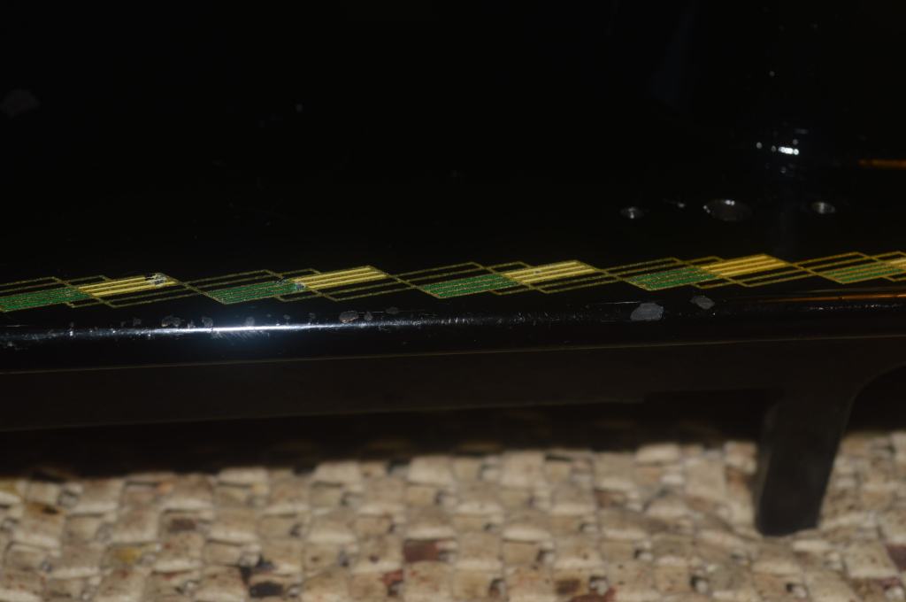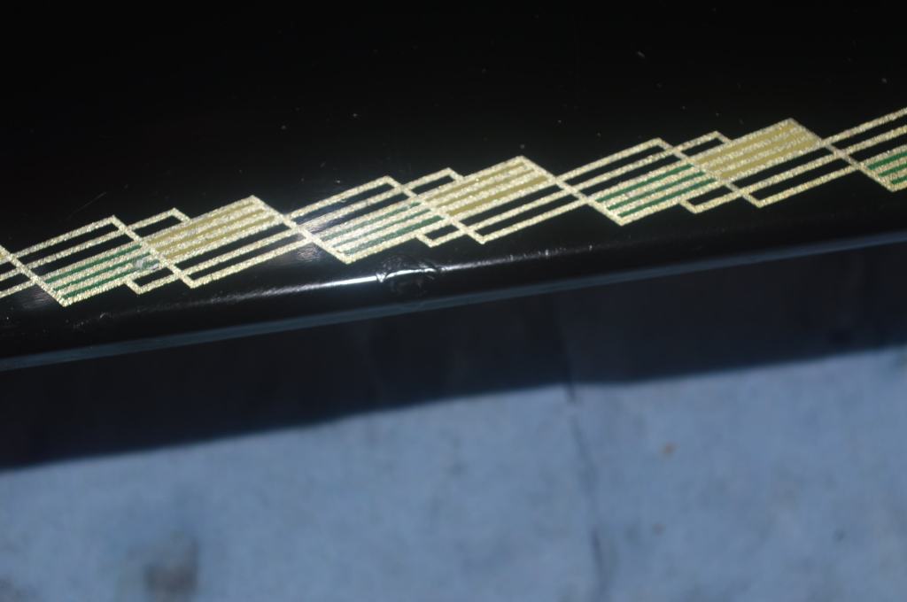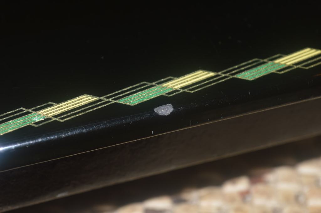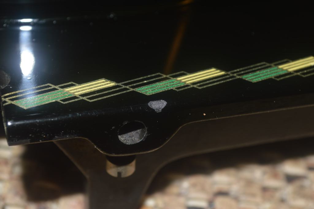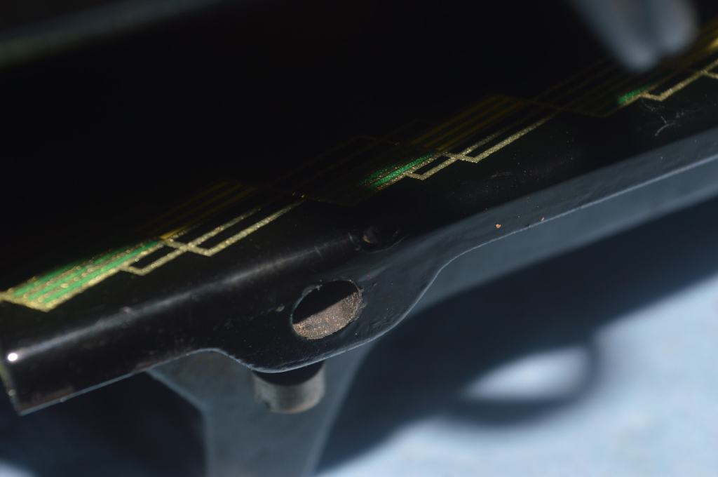 The scars on the sewing machine arm are too big to get a nearly invisible repair. Fortunately, the location is such that they are not “in your face” when seated in front of the machine. Paint matching will effectively make them far less obvious. The chips on the bed are another story.