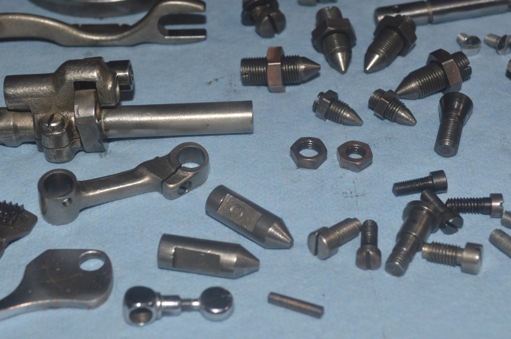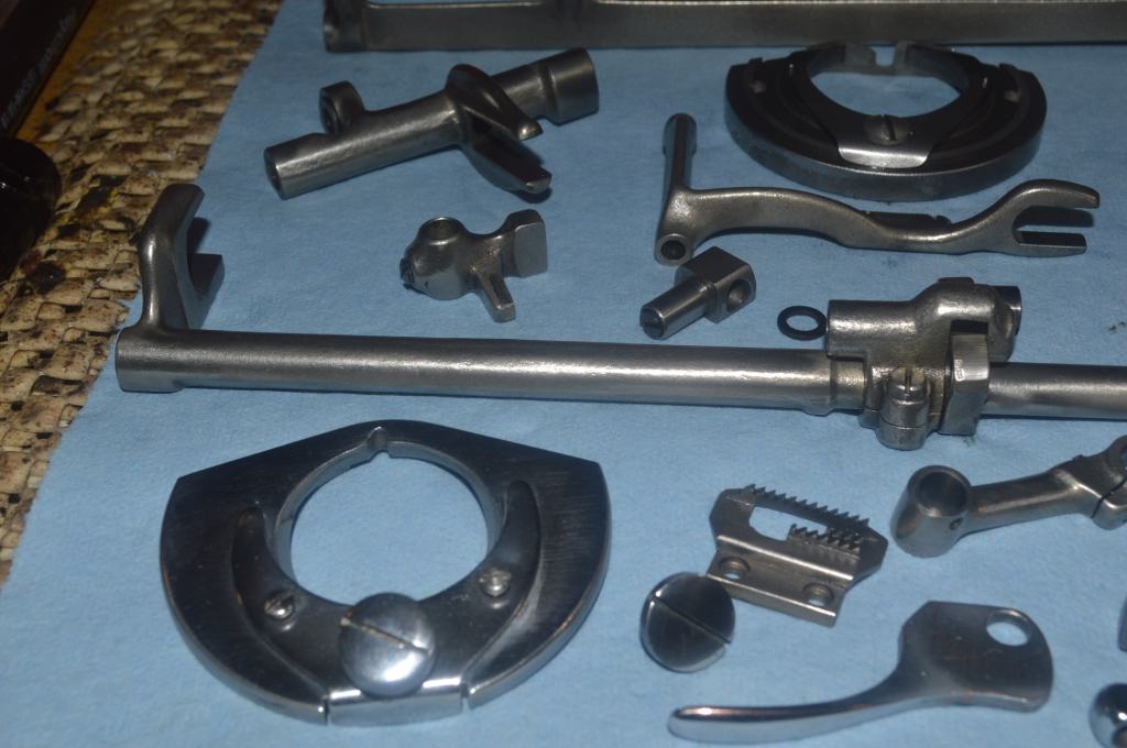 The large plated pieces are cleaned and then polished. Taking pictures of polished pieces isn’t easy, so you will see them shine on the assembled machine! Sorry, but it is worth the wait… The same goes for the little pieces like the stitch length lever, bobbin winder guide, and other little bits and pieces.