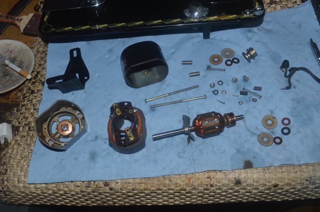 Now its time to restore the motor. The motor on the machine is a Morse motor and it is rated at 1.0 amps. This is a lot of power for a straight stitch machine. I don’t know the condition of the motor because I never run a motor before it is restored. I just feel it is better to do the restoration first. If there is an apparant problem (like shorted wires), I have a chance to see it before it burns up and ruins the motor. Always better safe than sorry!