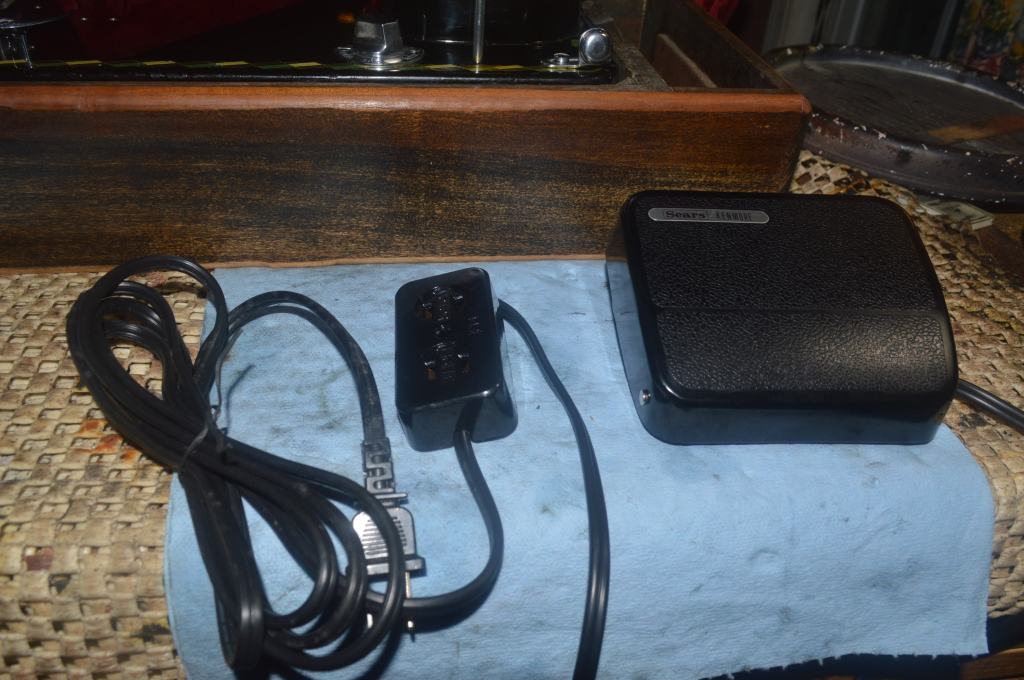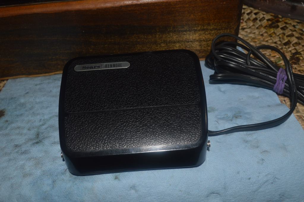 Notice the name on the controller? Its a vintage Kenmore foot controller. The more I use these, the better I like them. Thet are just the right size, have a great heft and feel, operate smoothly, and have very good motor speed control. They are a carbon pile controller and they run much cooler than resistance style foot controllers (the type of controller the machine came with).