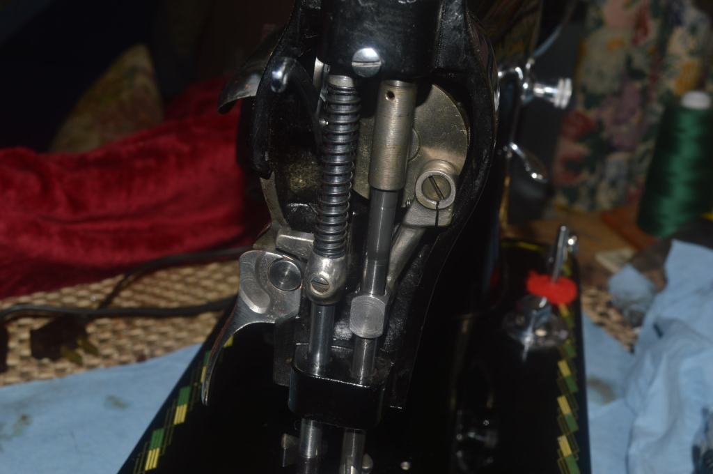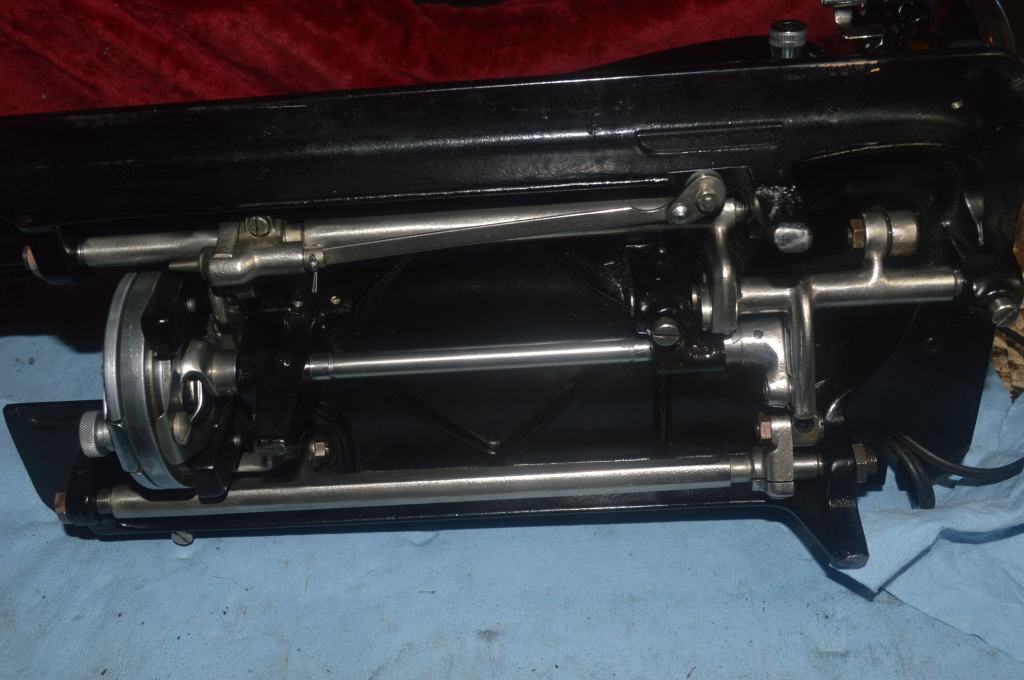 The needle bar, presser foot bar, and bottom bobbin hook shaft are polished to a glass smooth finish.