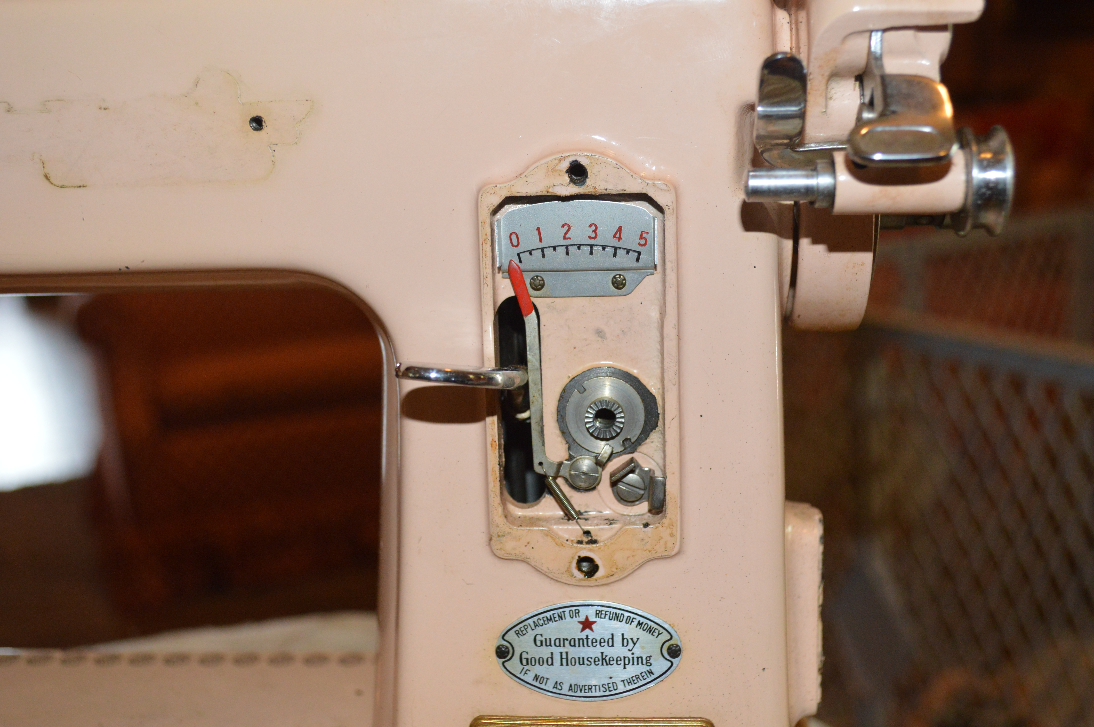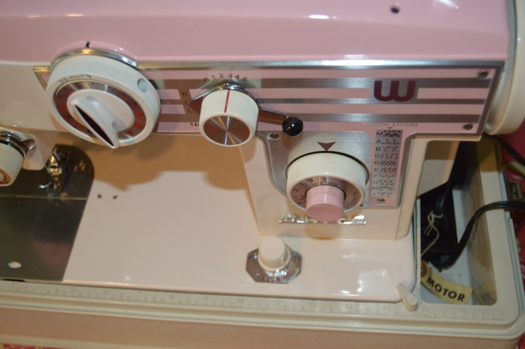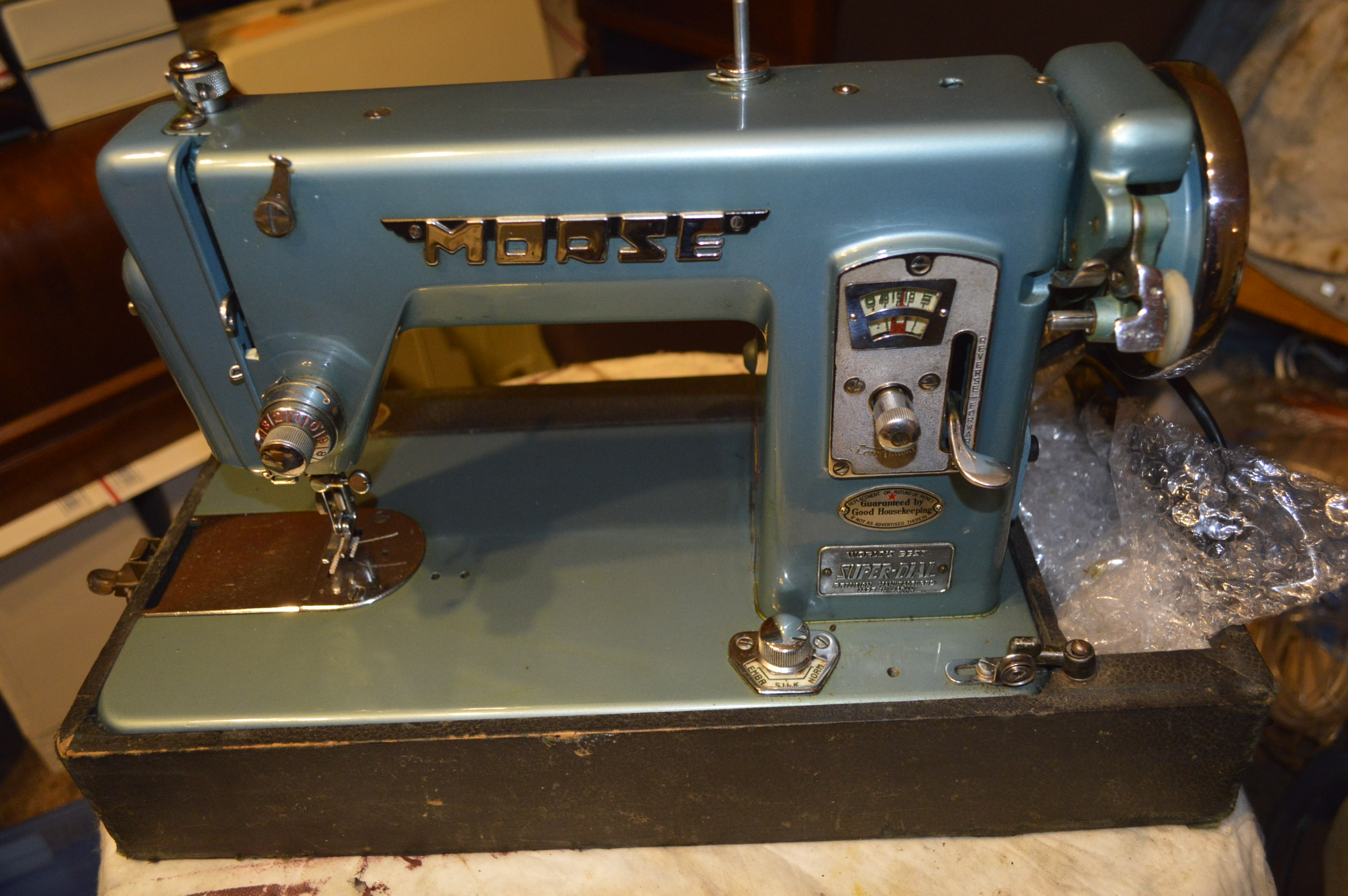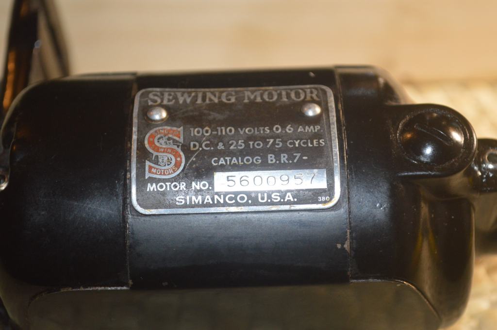 The model 1953 is a straight stitch machine. There are no identifying marks cast into the machine that give any clue clue to who manufactured the machine or when. The model 1953 might suggest that it was first introduced in 1953, but I couldn’t say with any certainty thats the year it was made. The motor on the machine is a Morse motor, and it may be an indication of the machine being manufactured by Morse. The stitch length controls and the top tension knob look similar to controls I have seen on Morse machines, but thats not enough to claim Morse was the manufacturer. The motor may have been replaced at some point in time and the controls also appear similar to machines Brother manufactured in the early 60’s. Unfortunately, I cannot conclusively provide a date or manufacturer for this machine., but If pressed for an answer, I would say it is likely made by Morse for Gimbels.