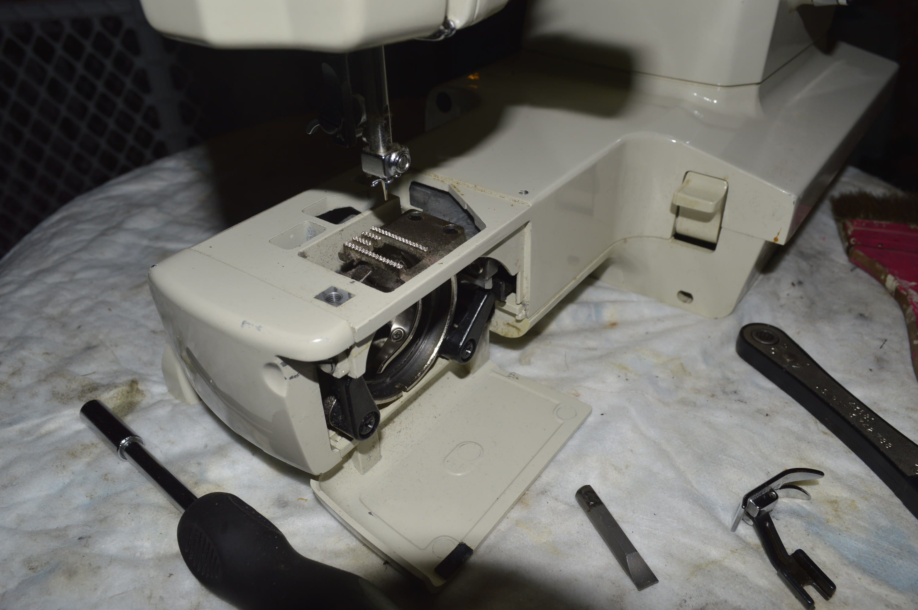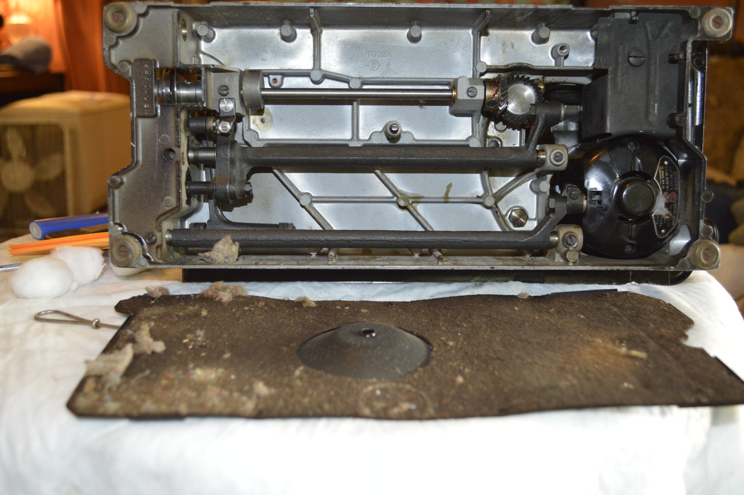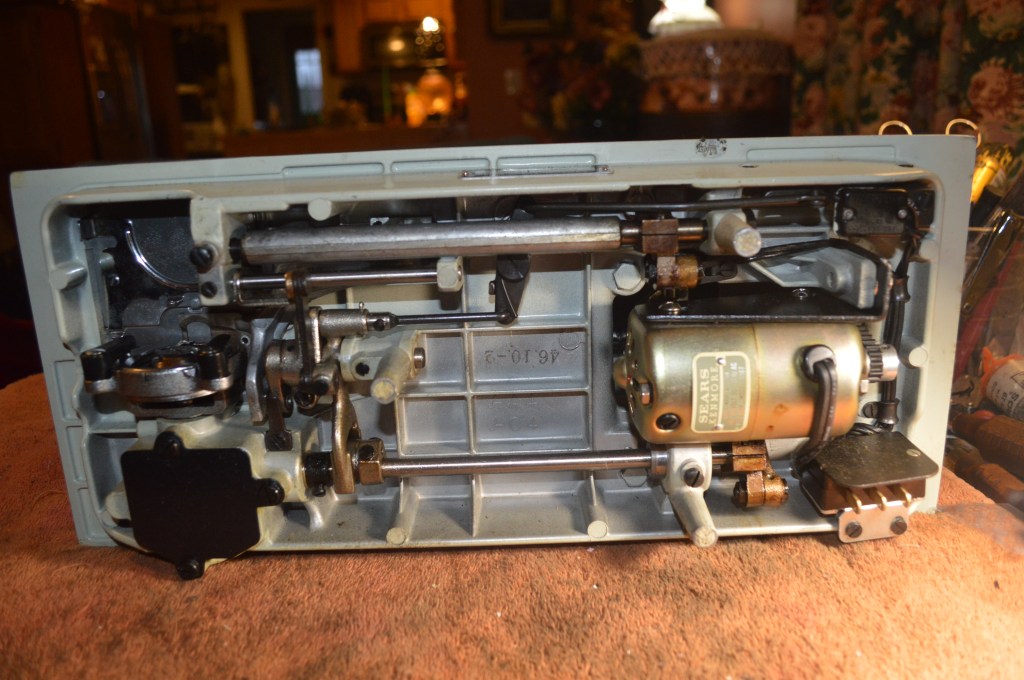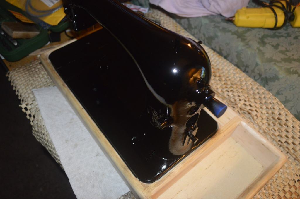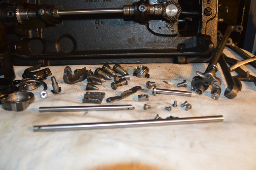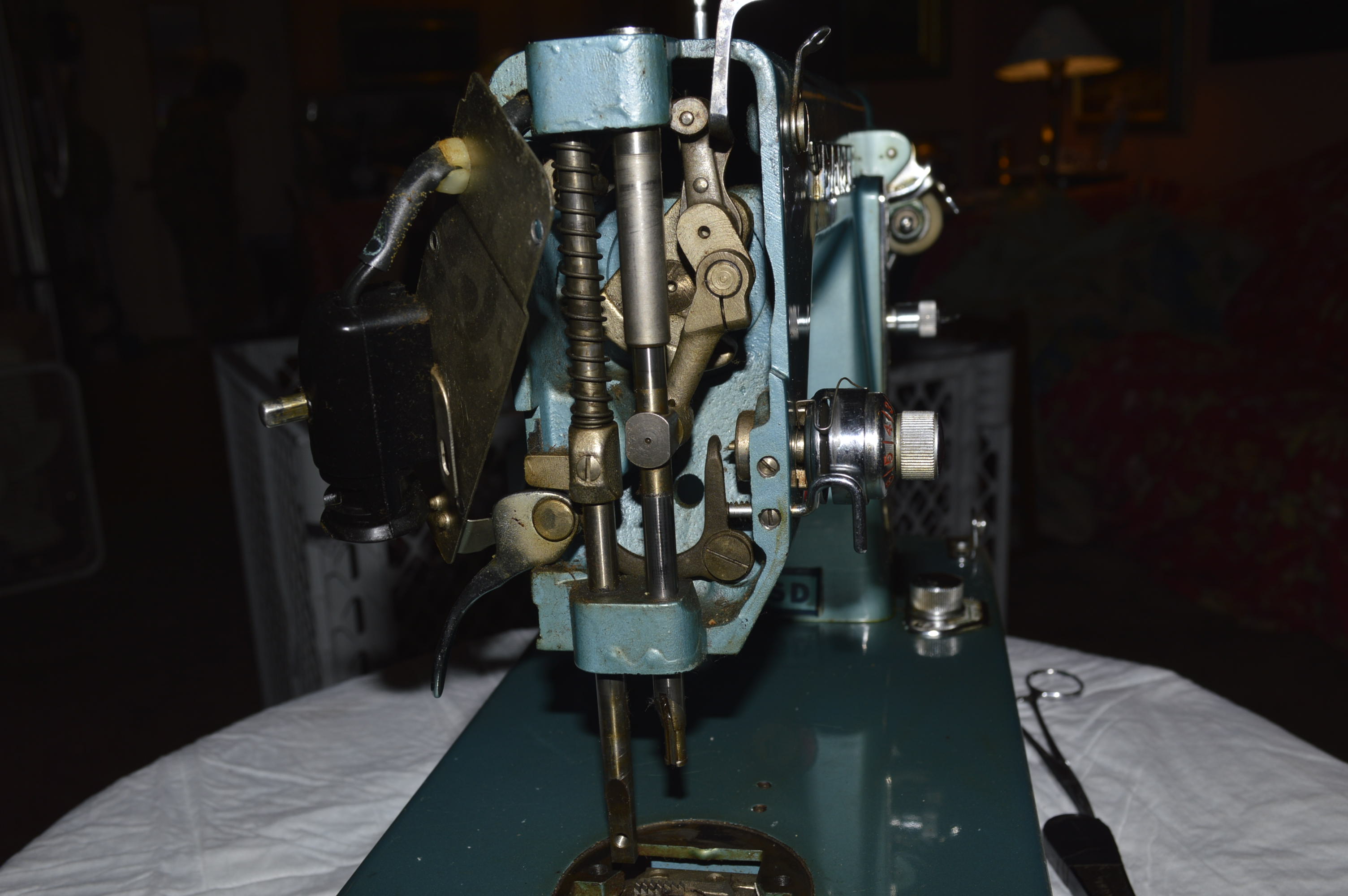 The machine’s sewing mechanisms are reassembled and rough adjustments are made. It is then hooked up to an external electric motor and run for 5 minutes at 1400 rpm. This mates all of the moving parts together and makes the machine incredibly smooth. After this exercise, fine adjustments are made and the motor, light, and all of the bits and pieces are reassembled to the machine.