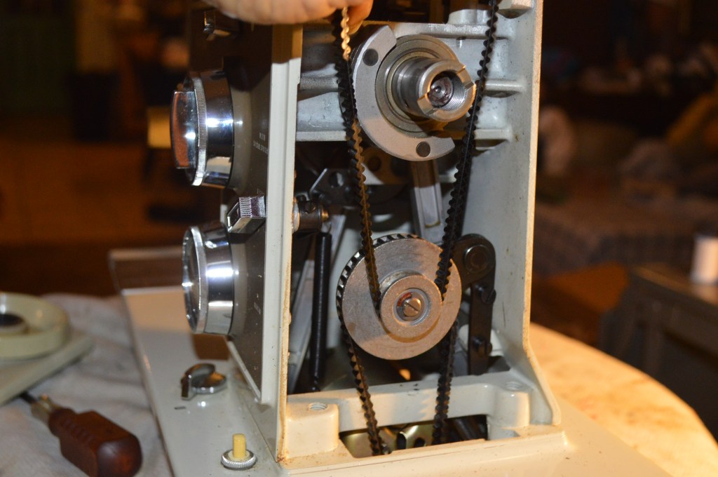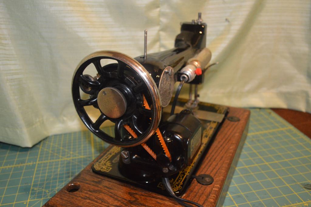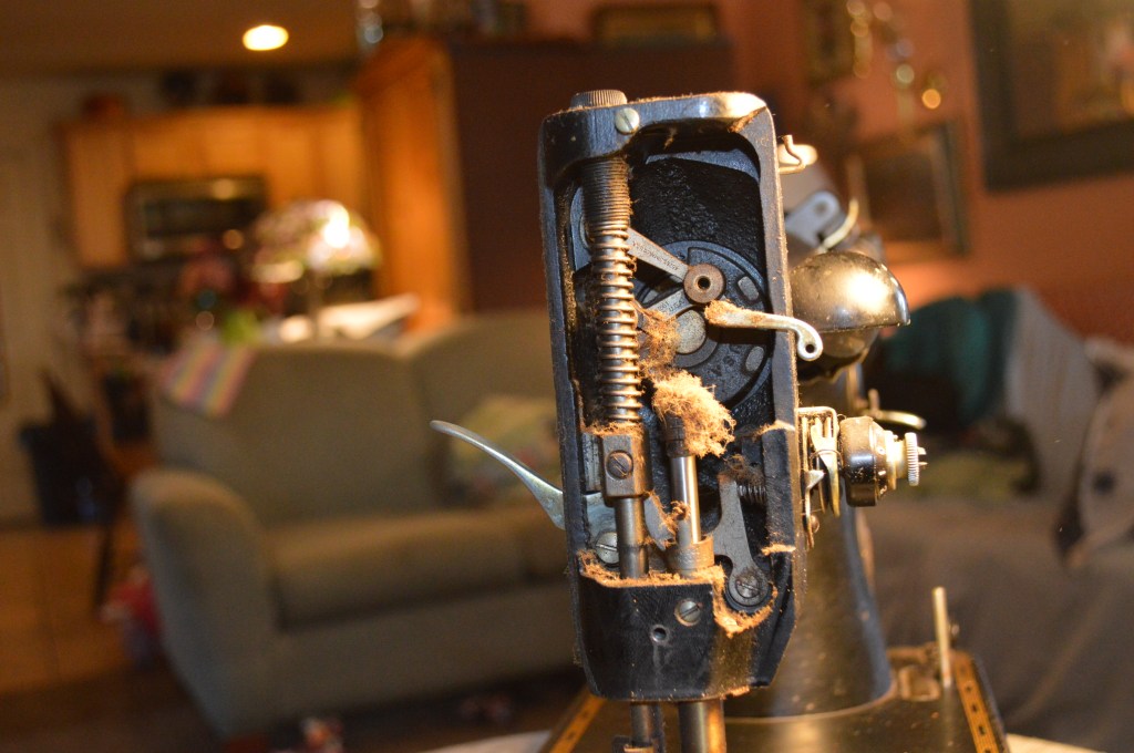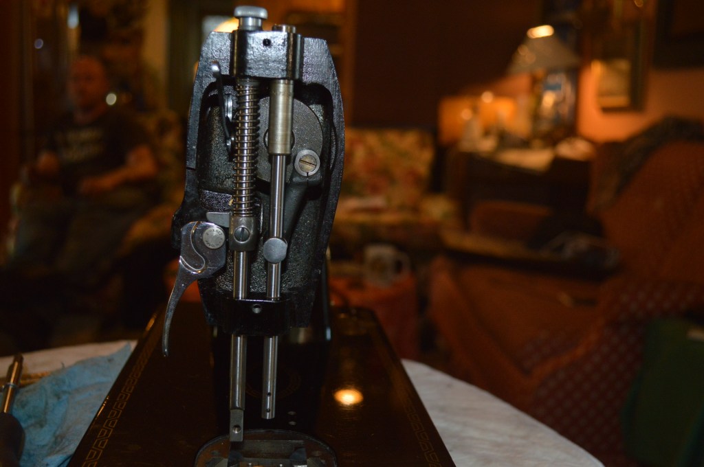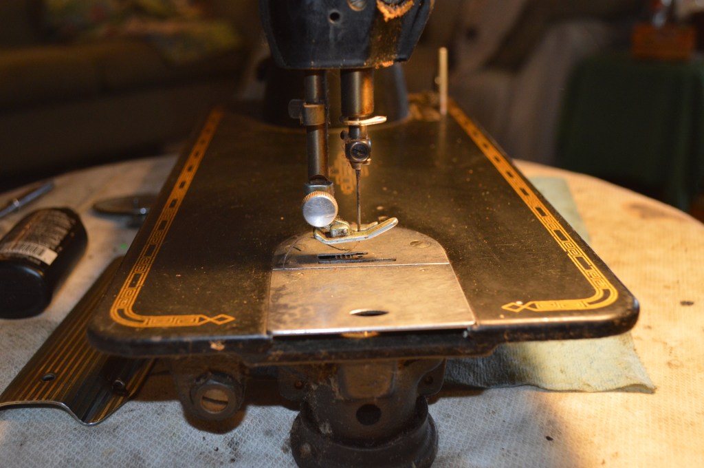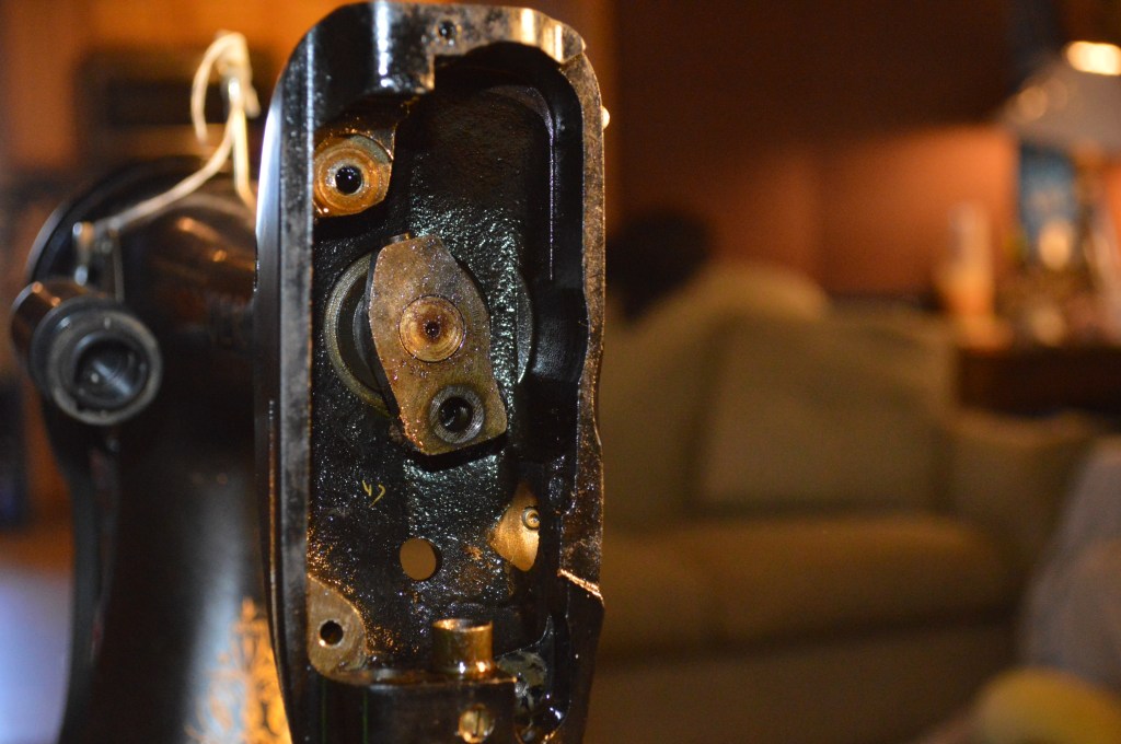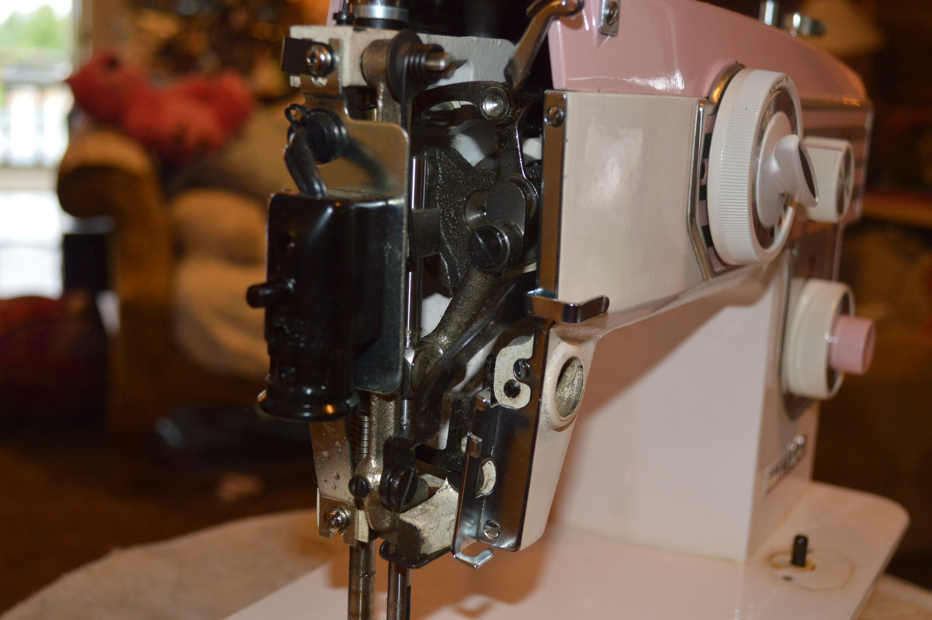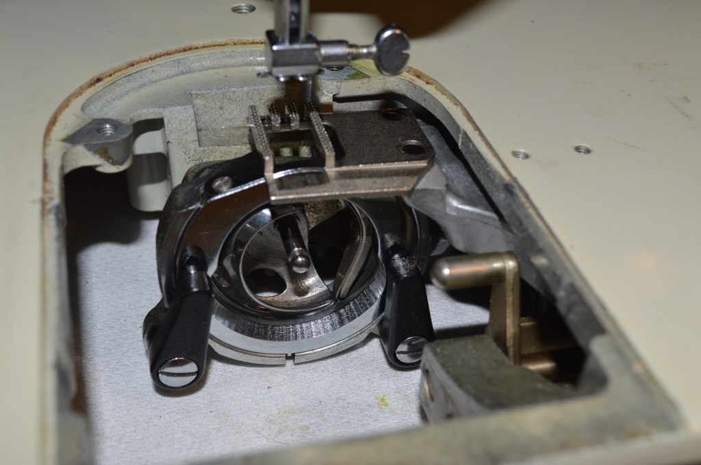 The machine’s sewing mechanisms are reassembled and rough adjustments are made. It is then hooked up to an external electric motor and run for 5 minutes at 1400 rpm. This mates all of the moving parts together and makes the machine incredibly smooth. After this exercise, fine adjustments are made and the motor, light, and all of the bits and pieces are reassembled to the machine.
