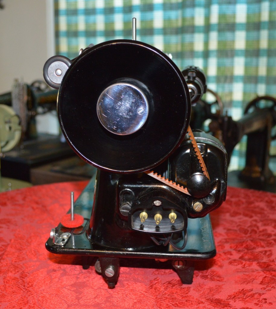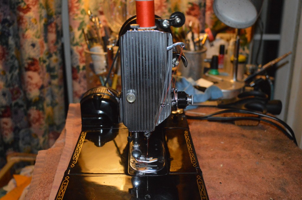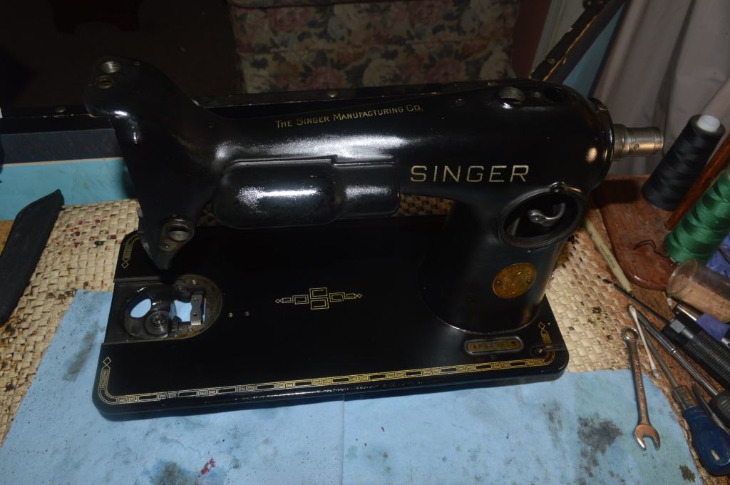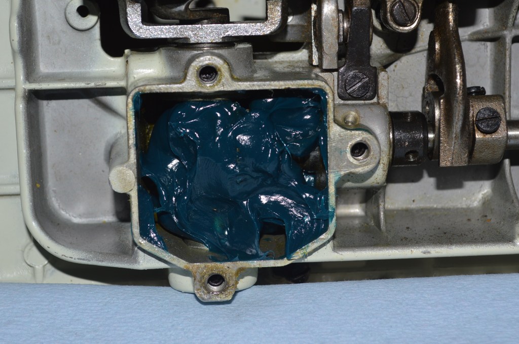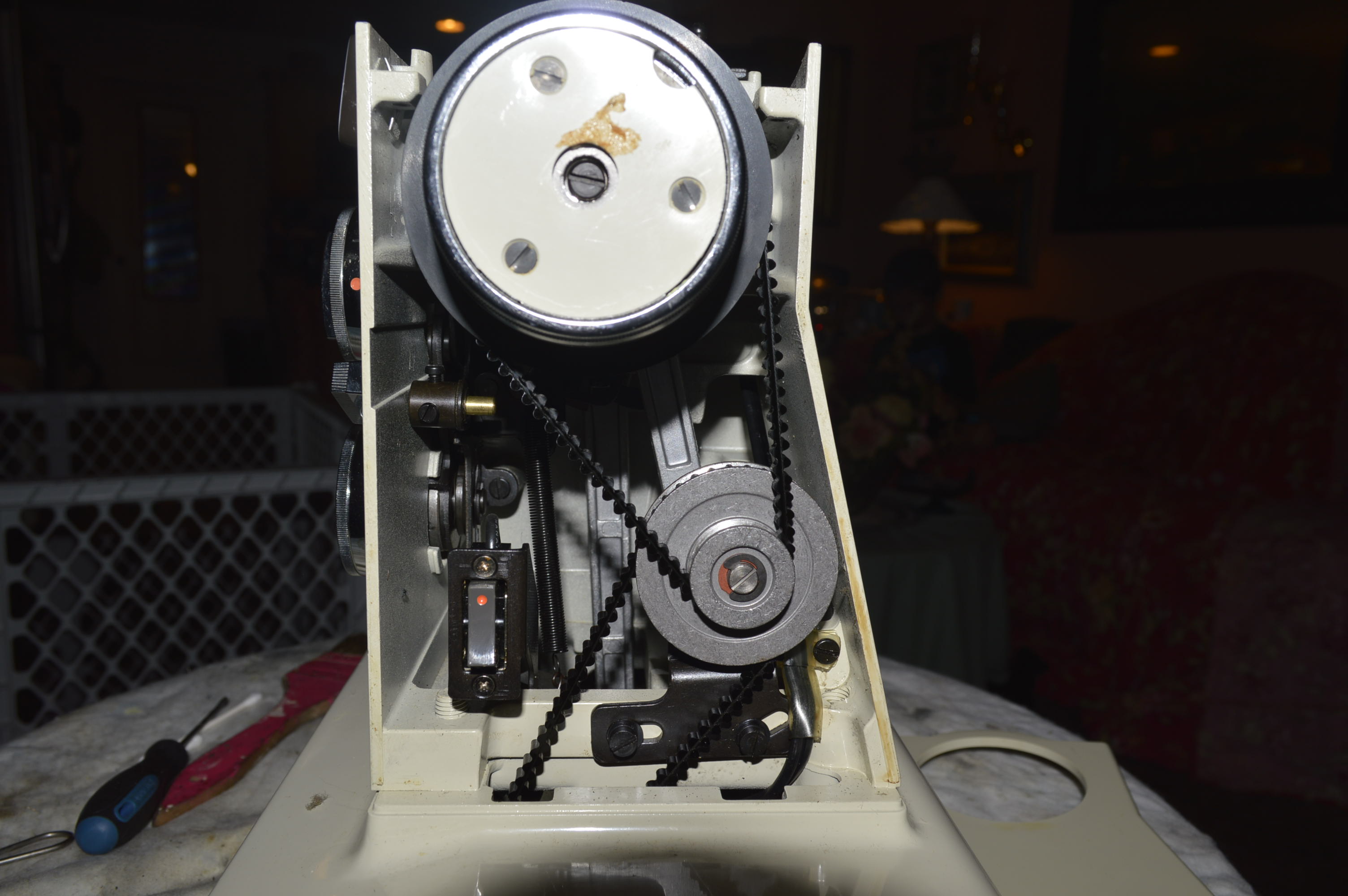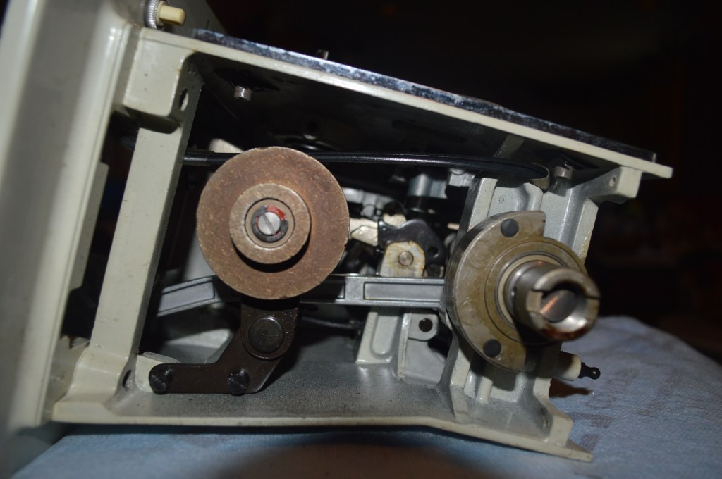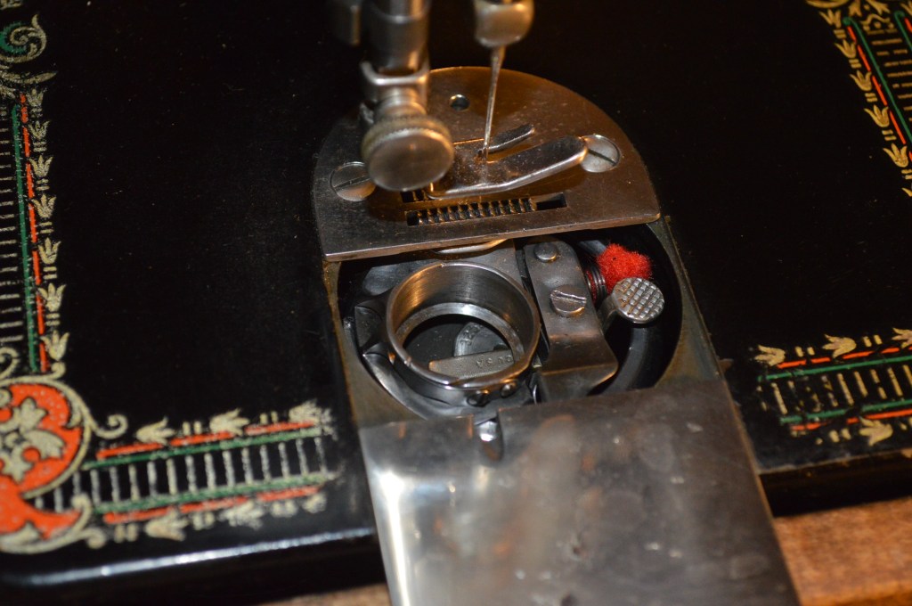 The machine’s sewing mechanisms are reassembled and rough adjustments are made. It is then hooked up to an external electric motor and run for 5 minutes at 1400 rpm. This mates all of the moving parts together and makes the machine incredibly smooth. After this exercise, fine adjustments are made and the motor, light, and all of the bits and pieces are reassembled to the machine.