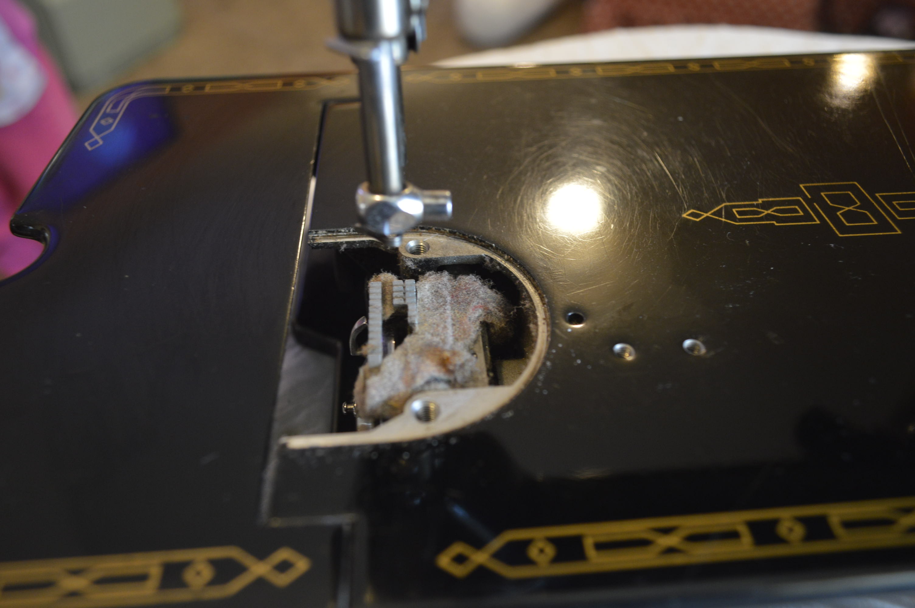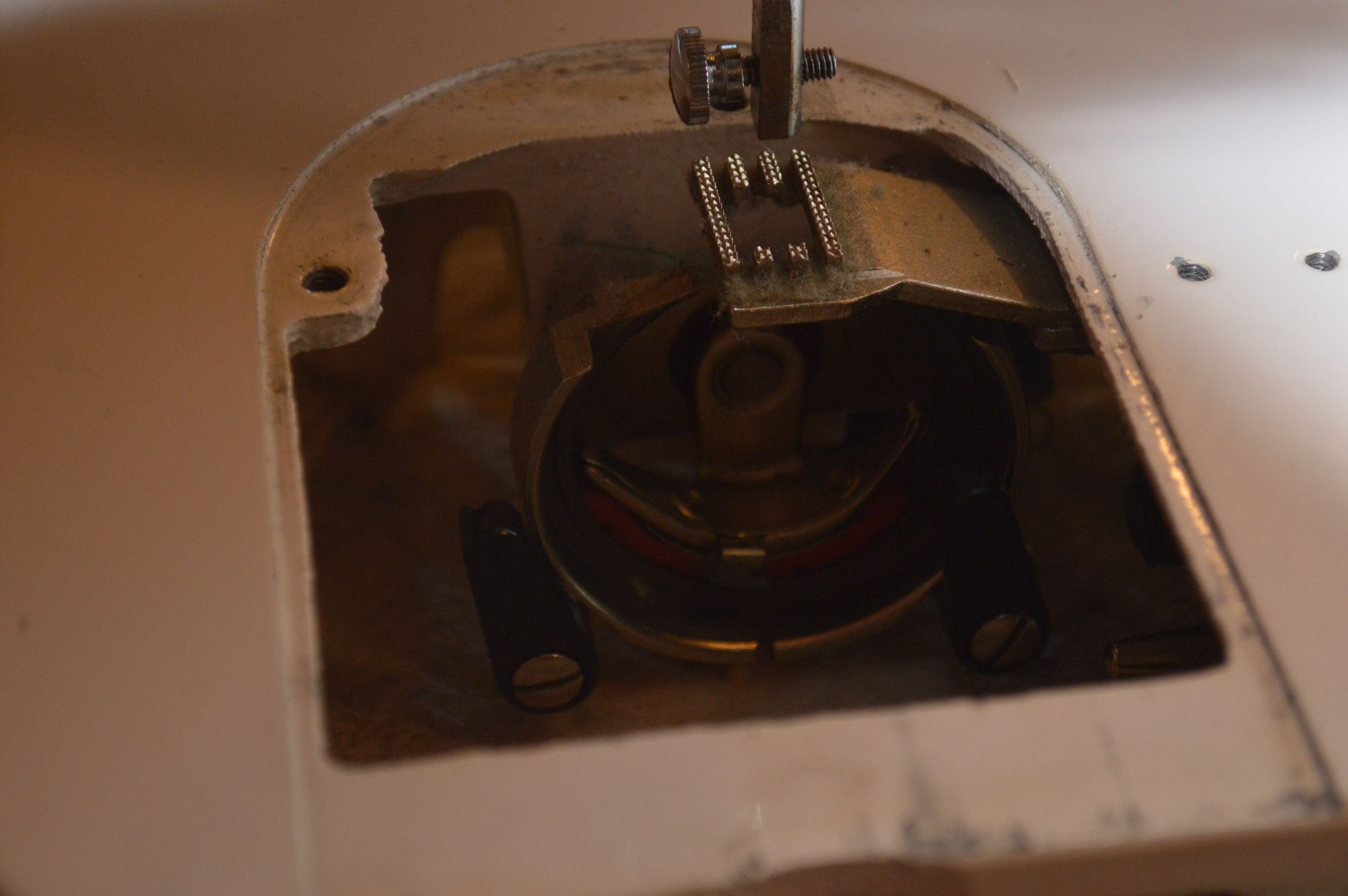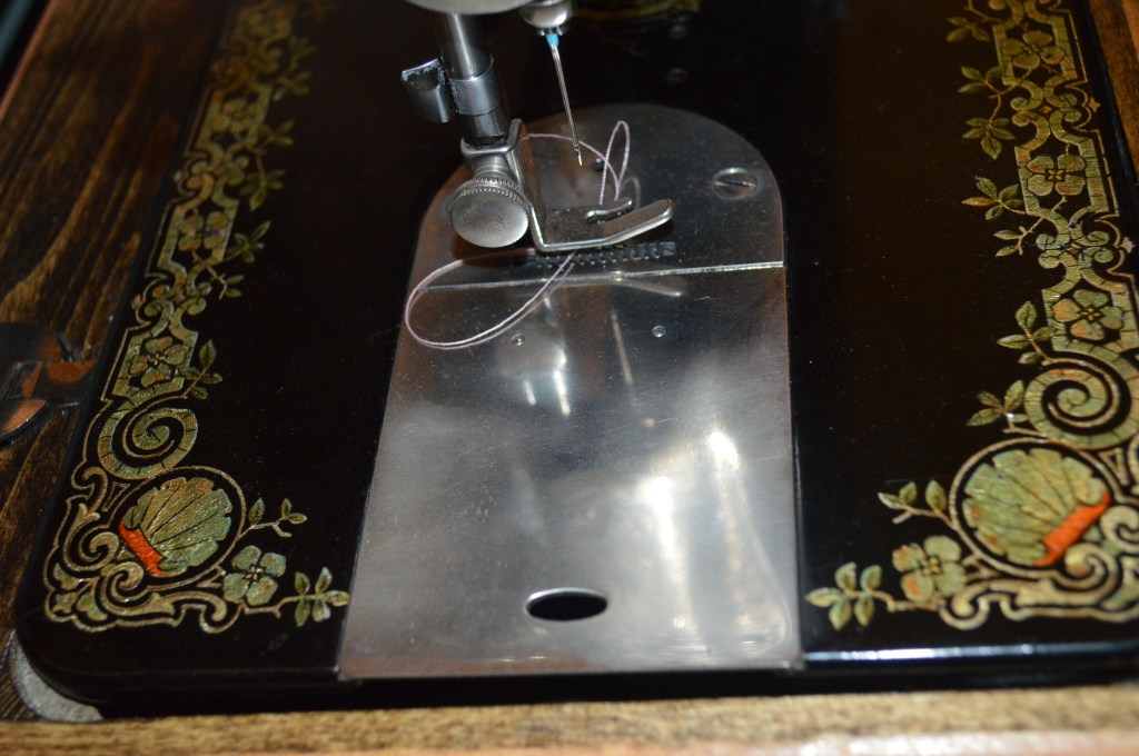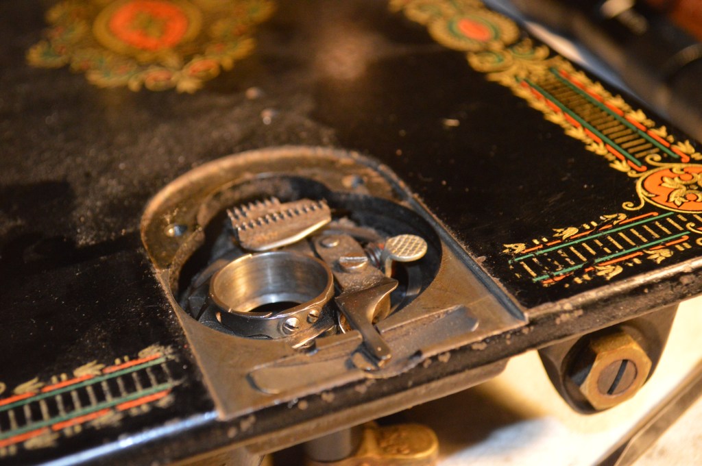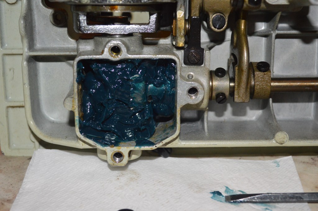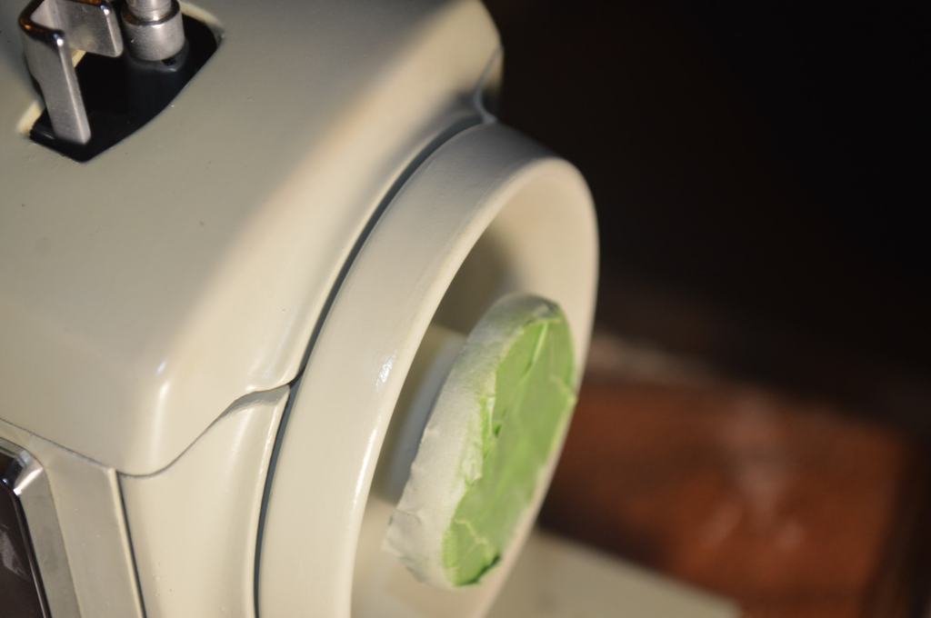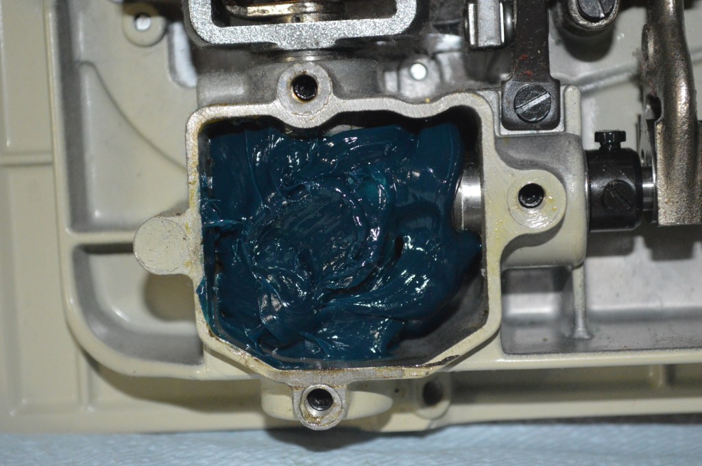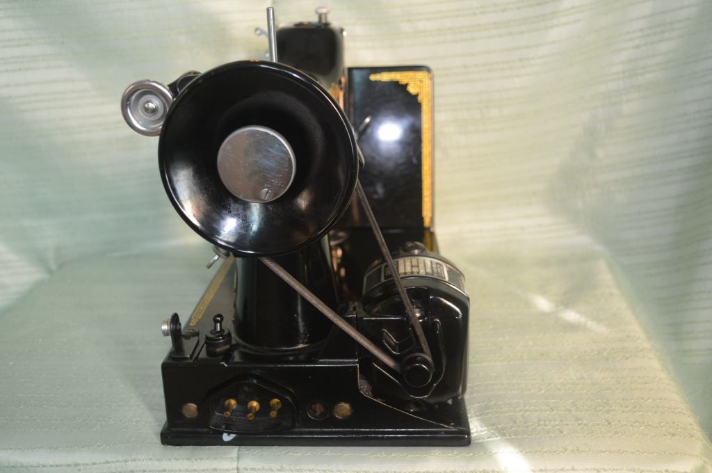 The machine’s sewing mechanisms are reassembled and rough adjustments are made. It is then hooked up to an external electric motor and run for 5 minutes at 1400 rpm. This mates all of the moving parts together and makes the machine incredibly smooth. After this exercise, fine adjustments are made and the motor, light, and all of the bits and pieces are reassembled to the machine.