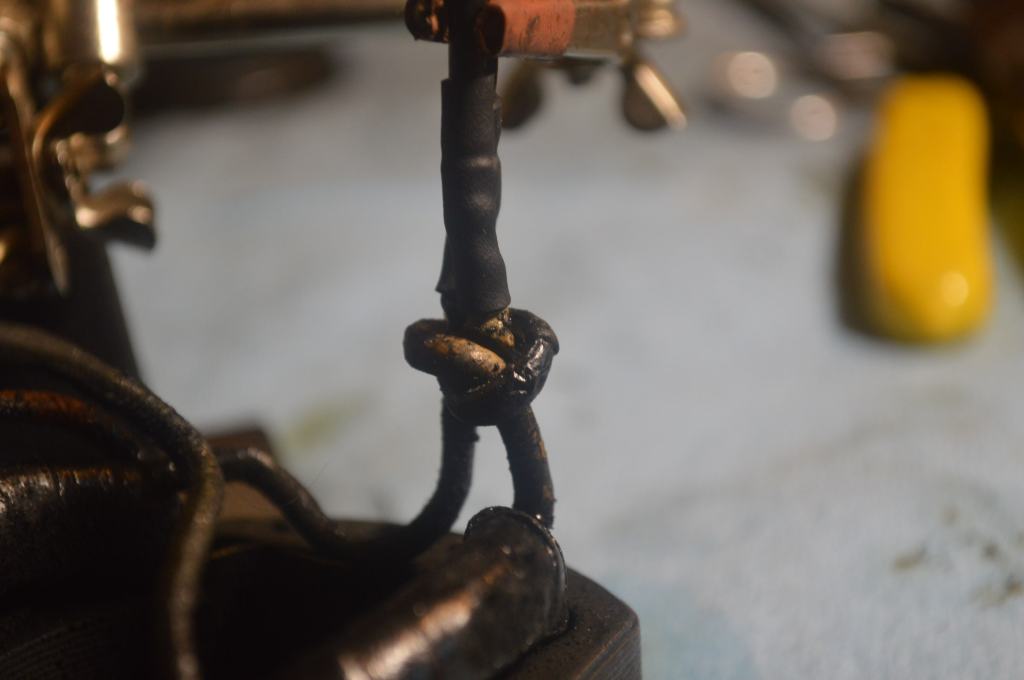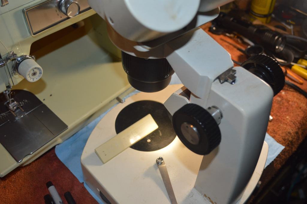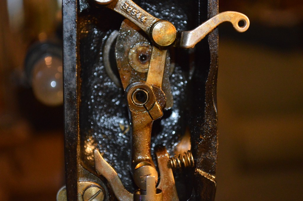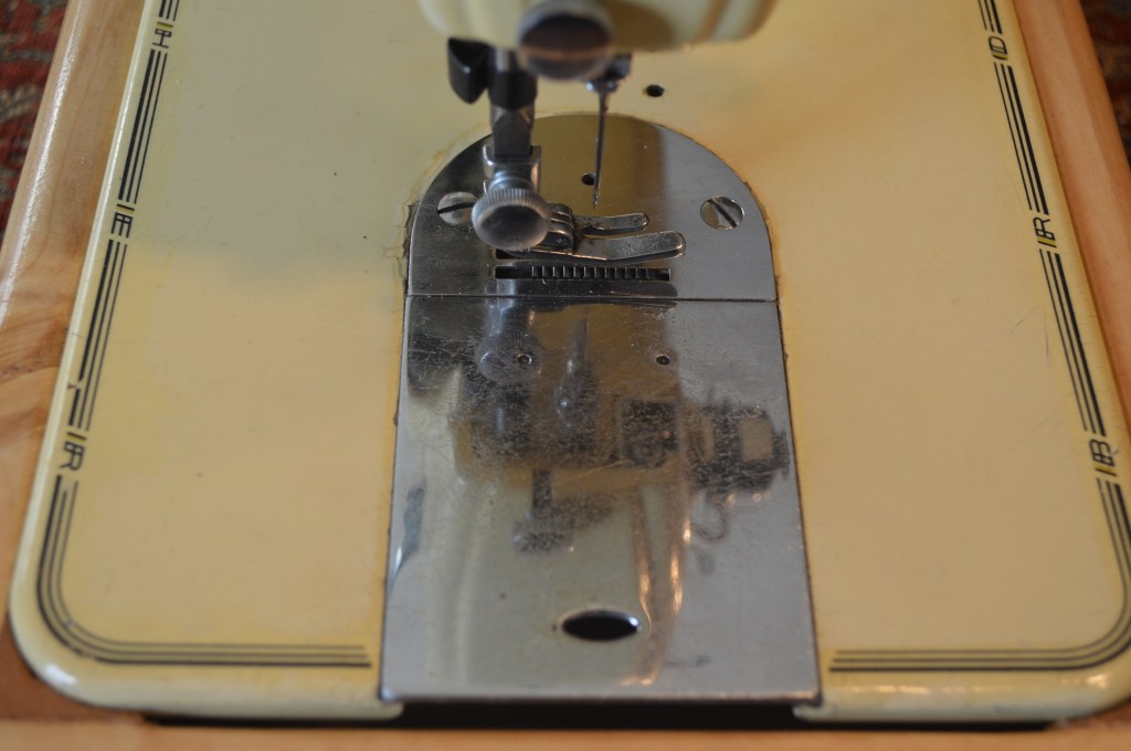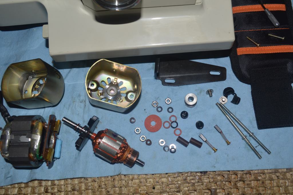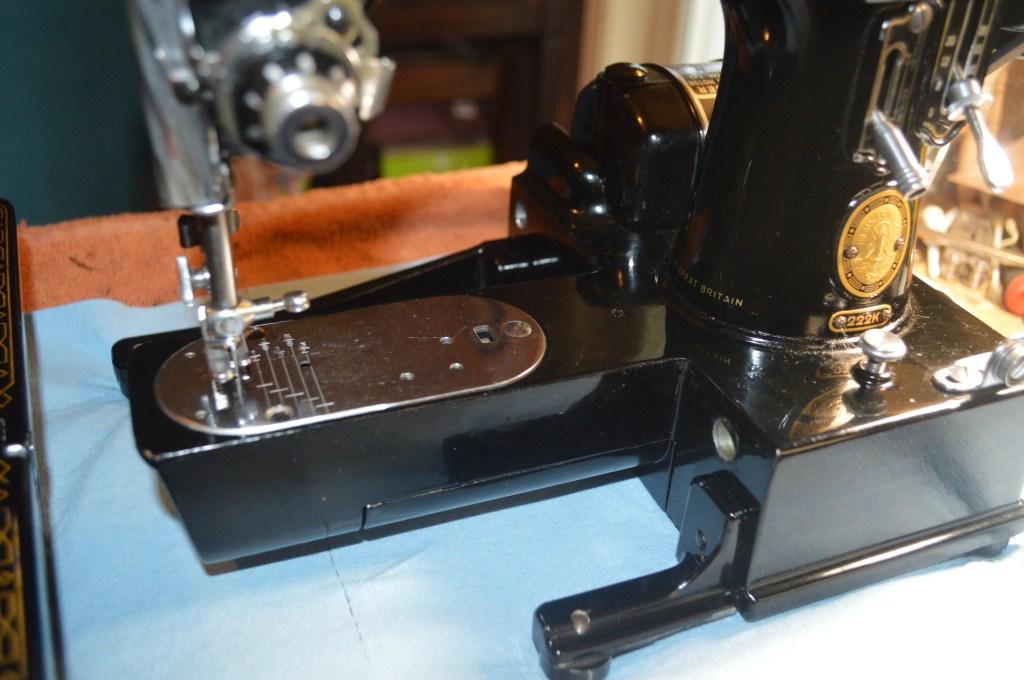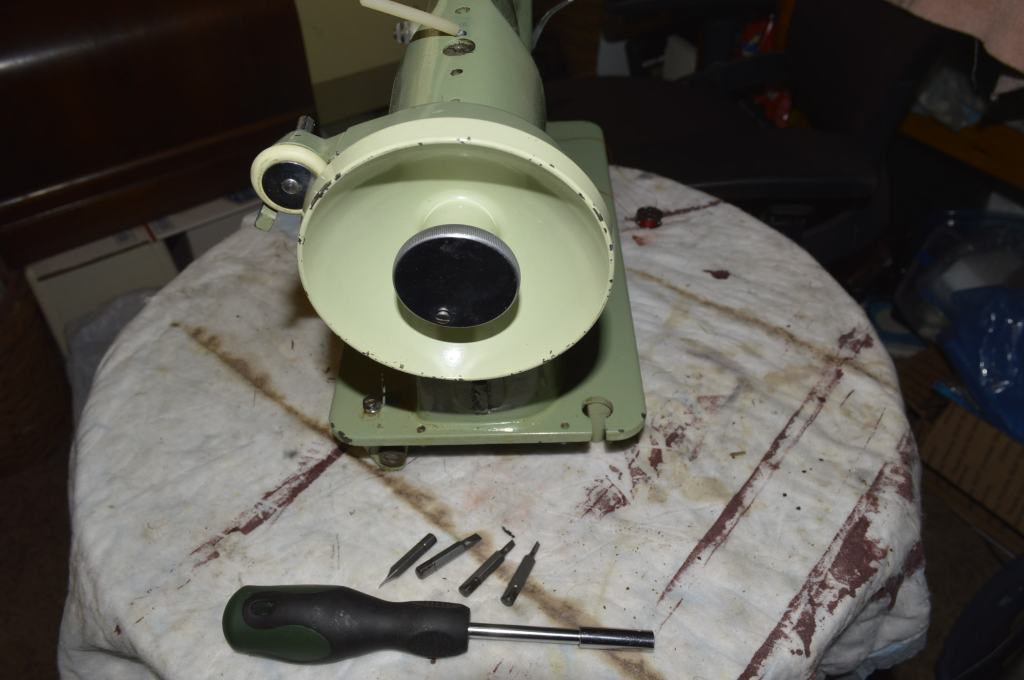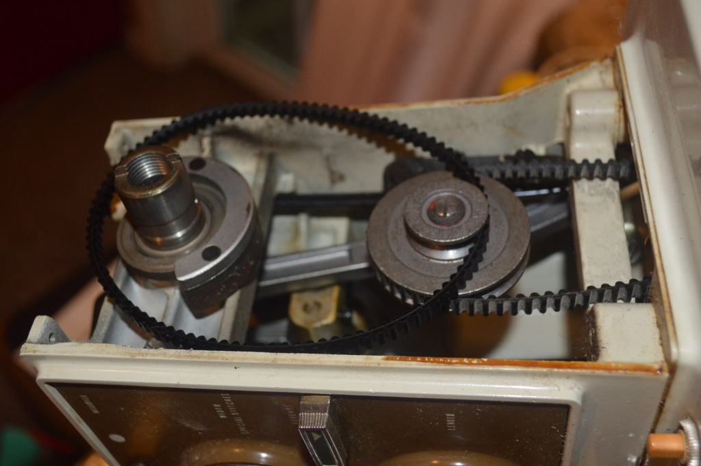 The machine’s sewing mechanisms are reassembled and rough adjustments are made. It is then hooked up to an external electric motor and run for 5 minutes at 1400 rpm. This mates all of the moving parts together and makes the machine incredibly smooth. After this exercise, fine adjustments are made and the motor, light, and all of the bits and pieces are reassembled to the machine.