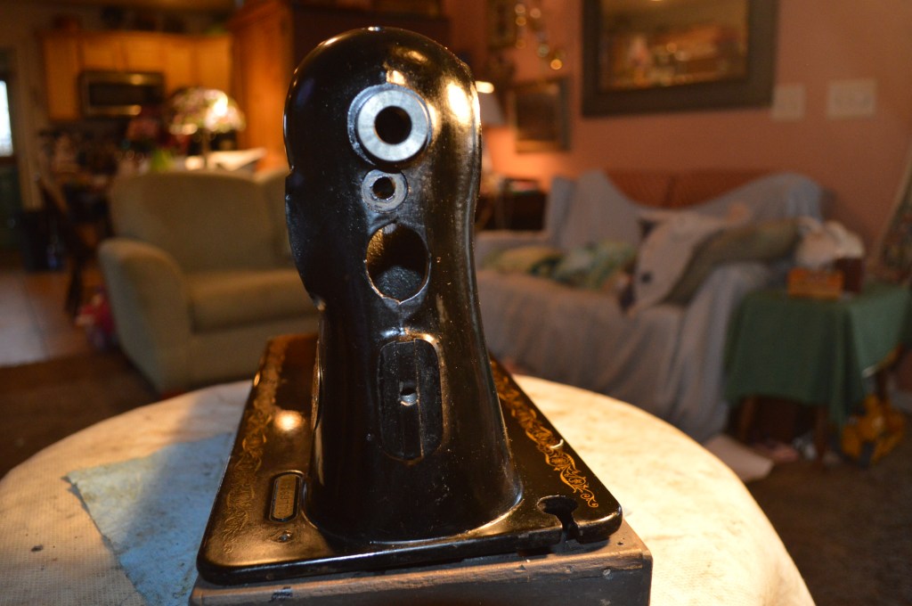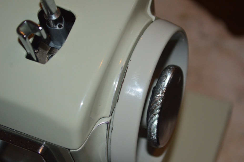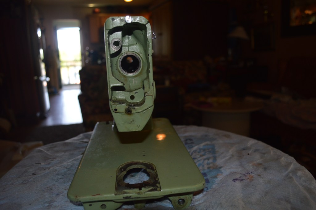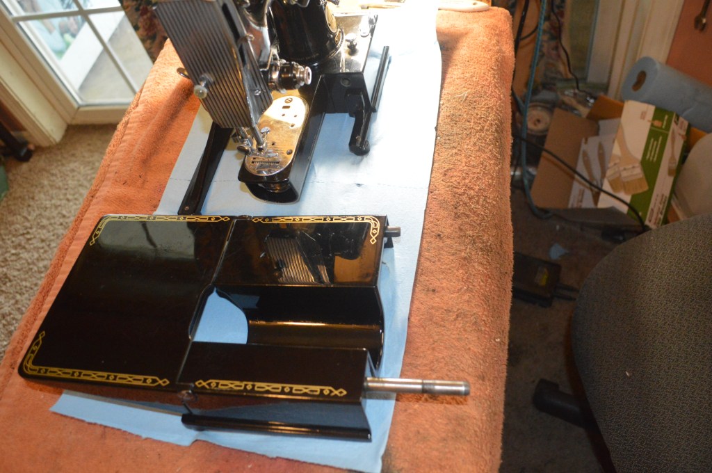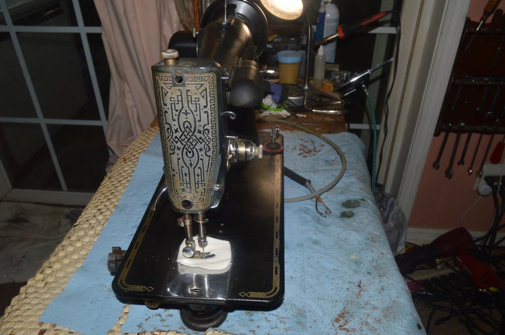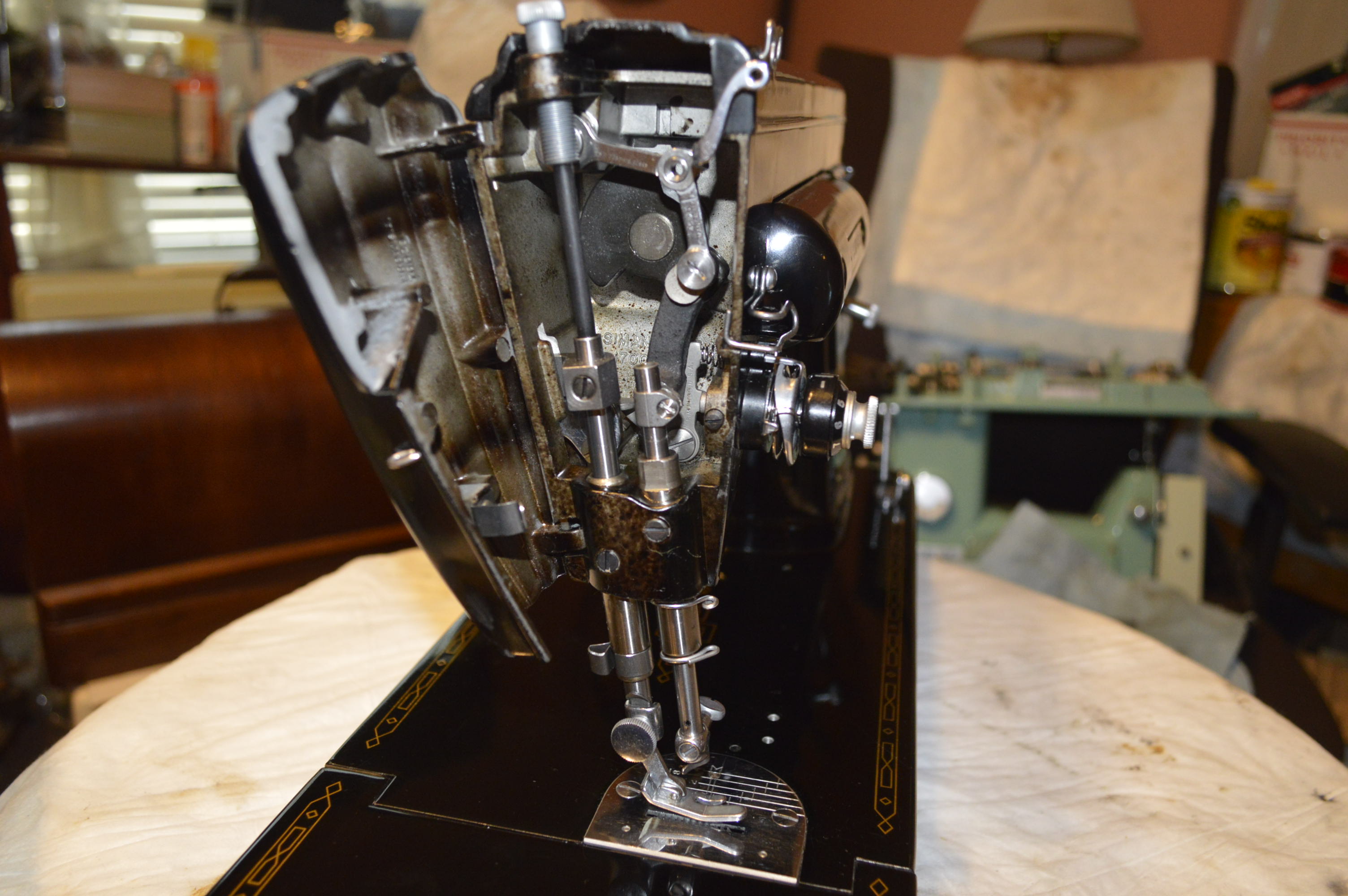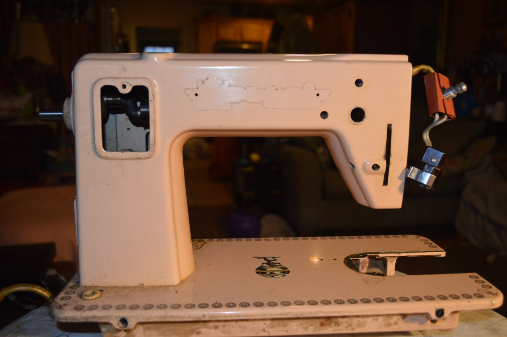 Part of the reason for this restoration is a sad story. As I said, my customer purchased this machine at a Shopgoodwill online auction. Shopgoodwill is a great place to find both common and unique sewing machines. At any given time, they can have 500 or more sewing machines for auction. I have purchased machines from them, and I have seen some rare and wonderful machines over the years. The only problem with purchasing a machine from them is that there is a high probability that it will be damaged in shipping… If it is in a case, the chance the case will be damaged by the machine smashing it or the spool pin punching thru the top… this is just my personal experience. I like Shopgoodwill and great bargains can be found there, but unless it is very desireable machine to me, I don’t source machines from them.