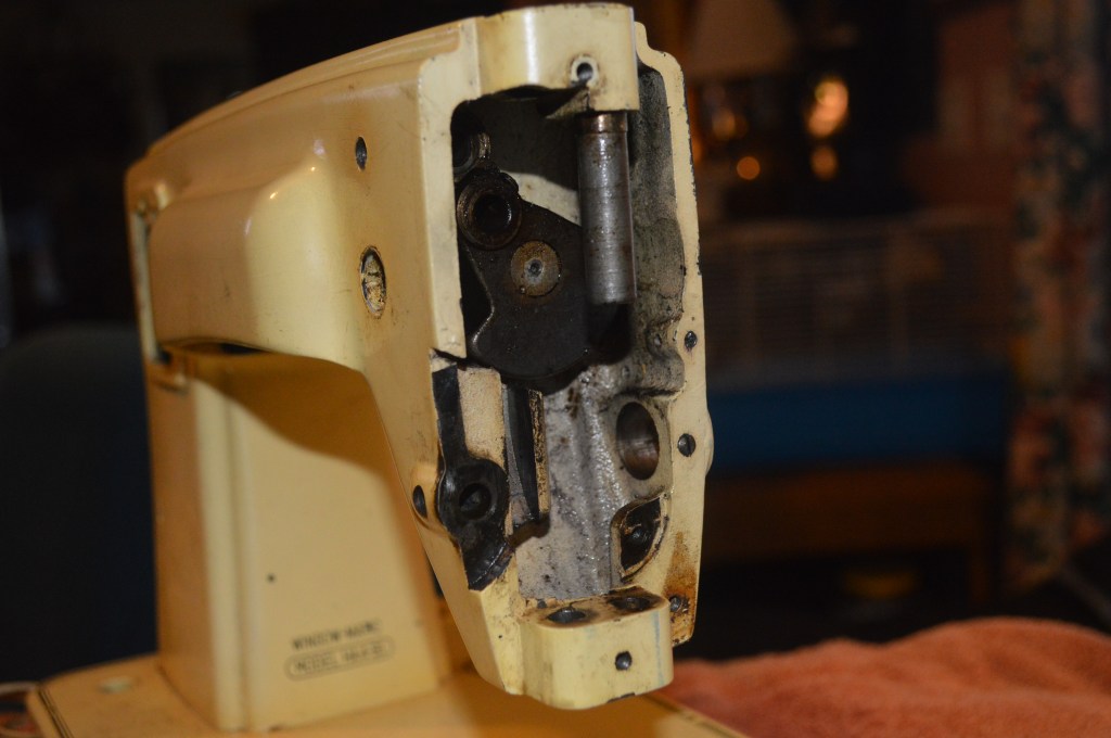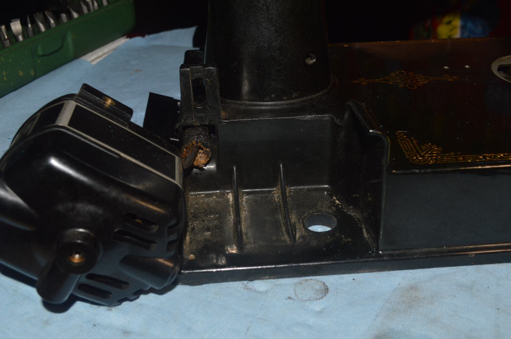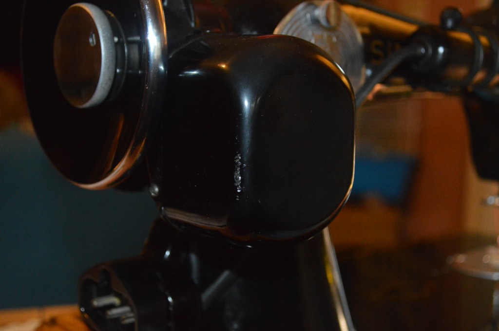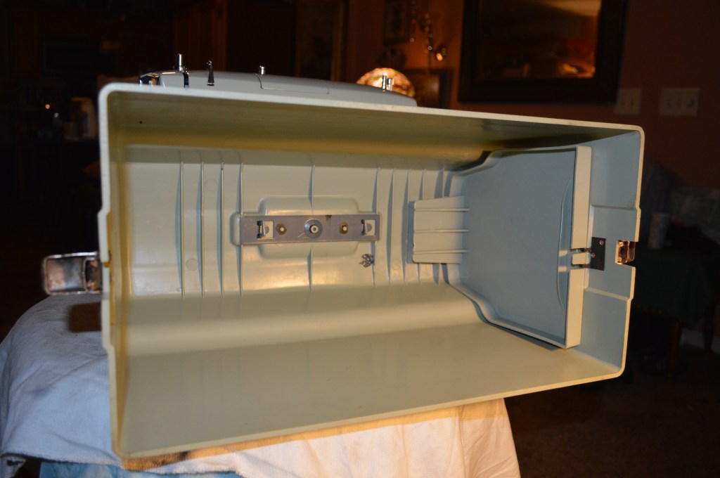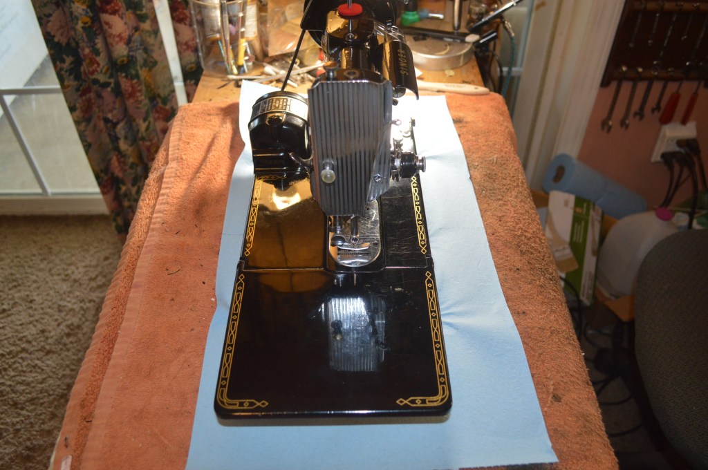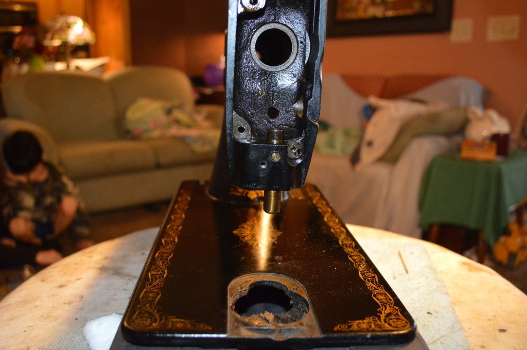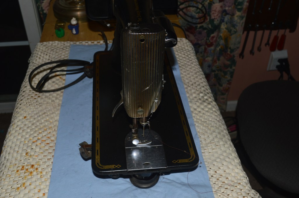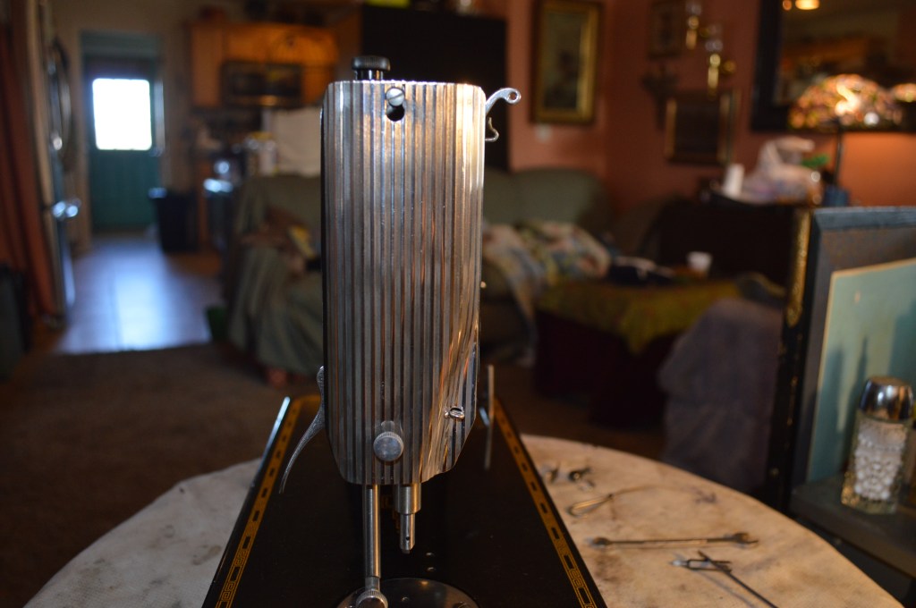 Part of the reason for this restoration is a sad story. As I said, my customer purchased this machine at a Shopgoodwill online auction. Shopgoodwill is a great place to find both common and unique sewing machines. At any given time, they can have 500 or more sewing machines for auction. I have purchased machines from them, and I have seen some rare and wonderful machines over the years. The only problem with purchasing a machine from them is that there is a high probability that it will be damaged in shipping… If it is in a case, the chance the case will be damaged by the machine smashing it or the spool pin punching thru the top… this is just my personal experience. I like Shopgoodwill and great bargains can be found there, but unless it is very desireable machine to me, I don’t source machines from them.