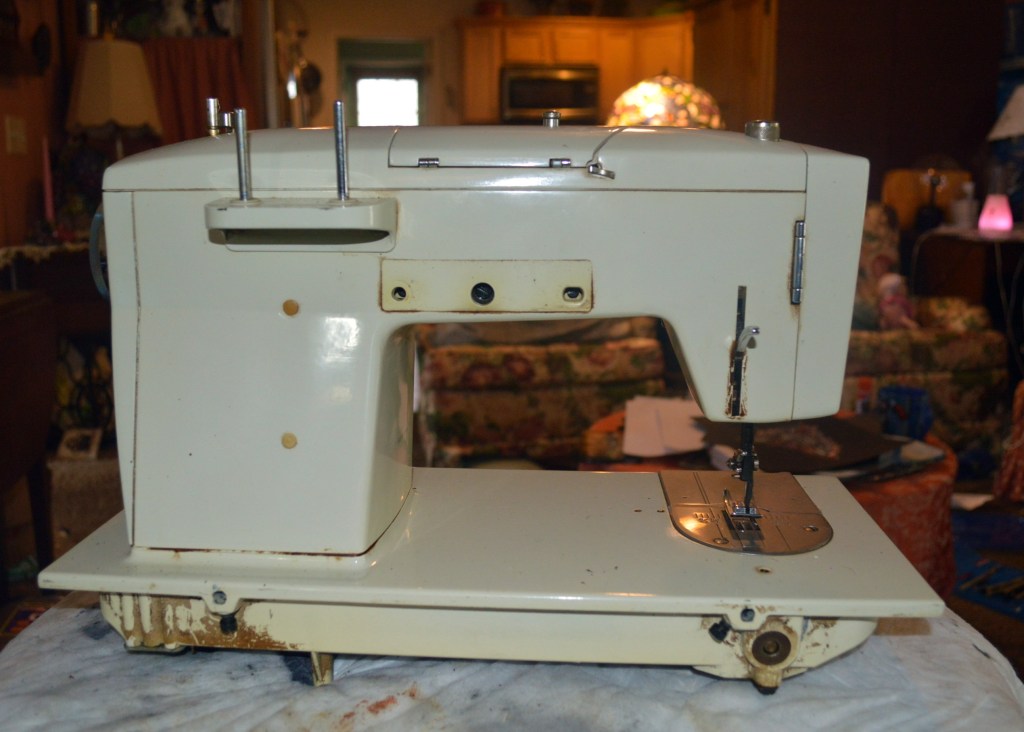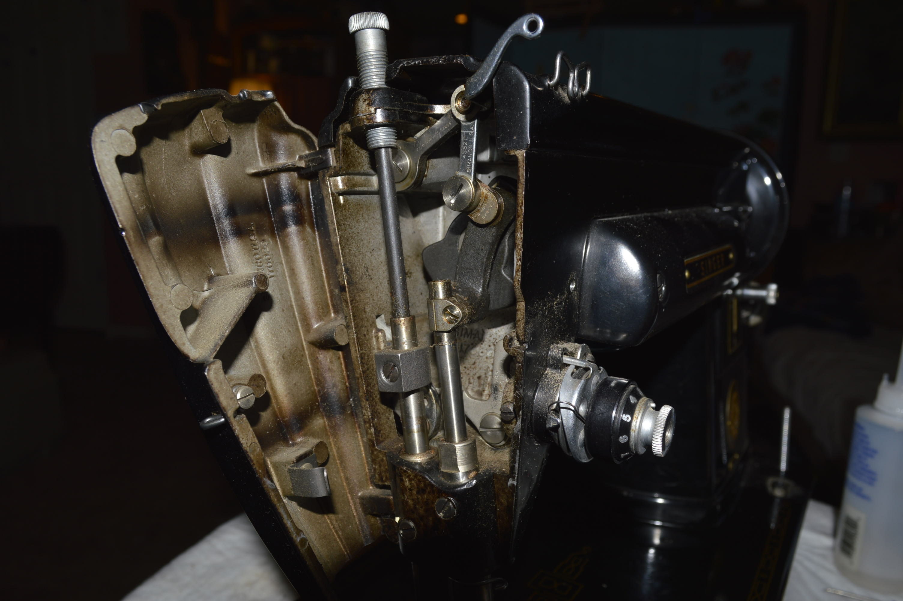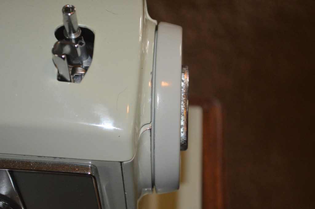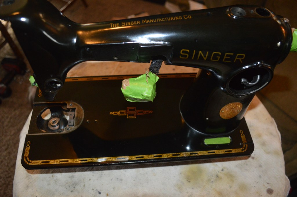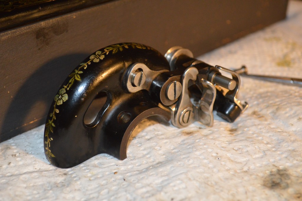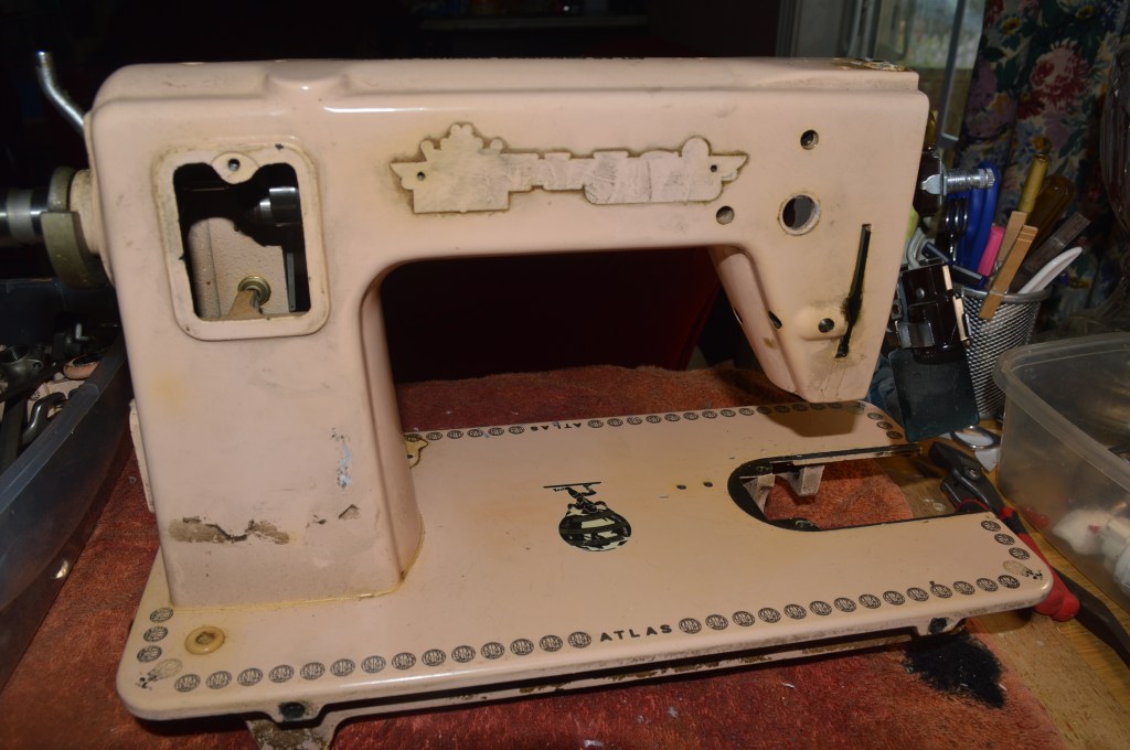 Part of the reason for this restoration is a sad story. As I said, my customer purchased this machine at a Shopgoodwill online auction. Shopgoodwill is a great place to find both common and unique sewing machines. At any given time, they can have 500 or more sewing machines for auction. I have purchased machines from them, and I have seen some rare and wonderful machines over the years. The only problem with purchasing a machine from them is that there is a high probability that it will be damaged in shipping… If it is in a case, the chance the case will be damaged by the machine smashing it or the spool pin punching thru the top… this is just my personal experience. I like Shopgoodwill and great bargains can be found there, but unless it is very desireable machine to me, I don’t source machines from them.