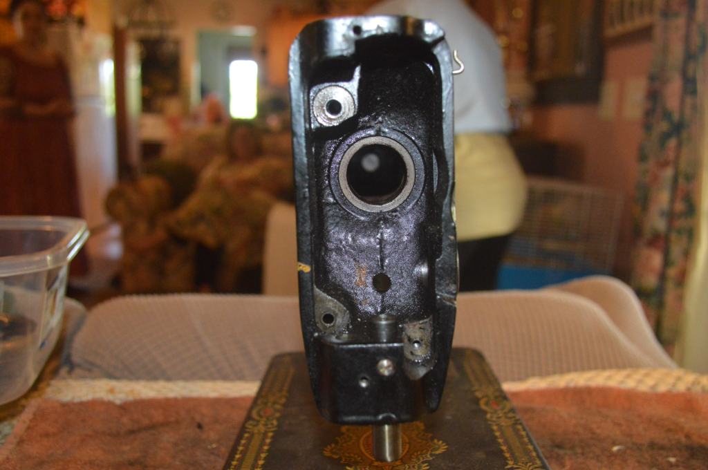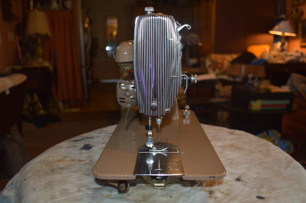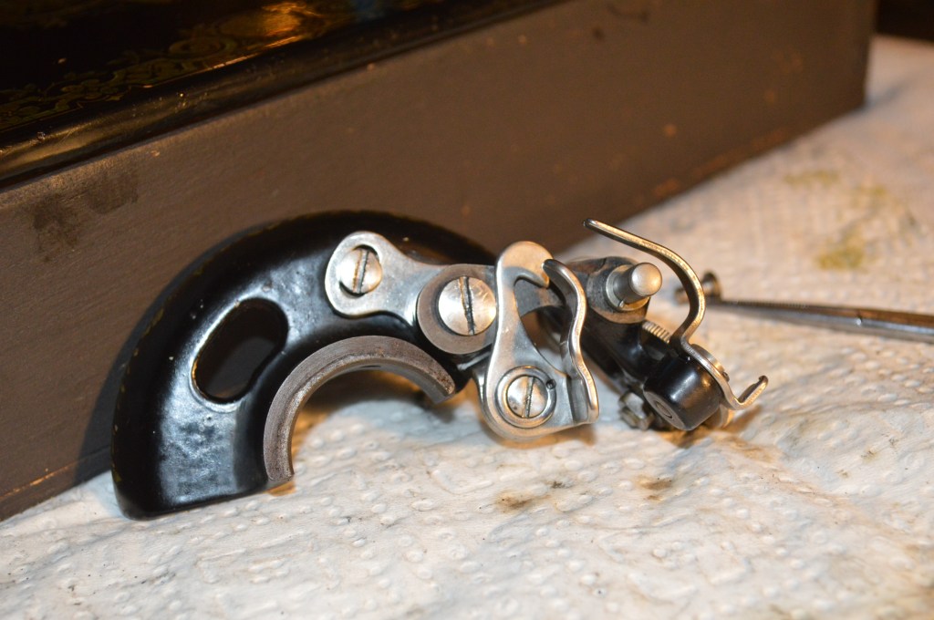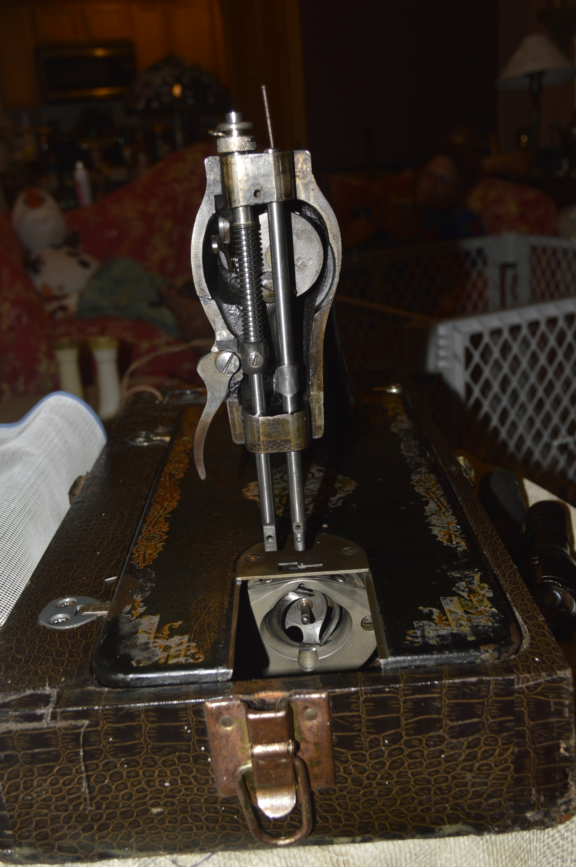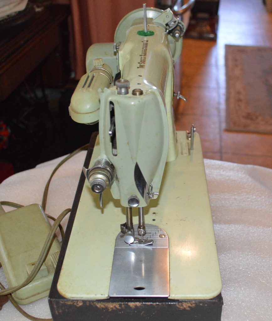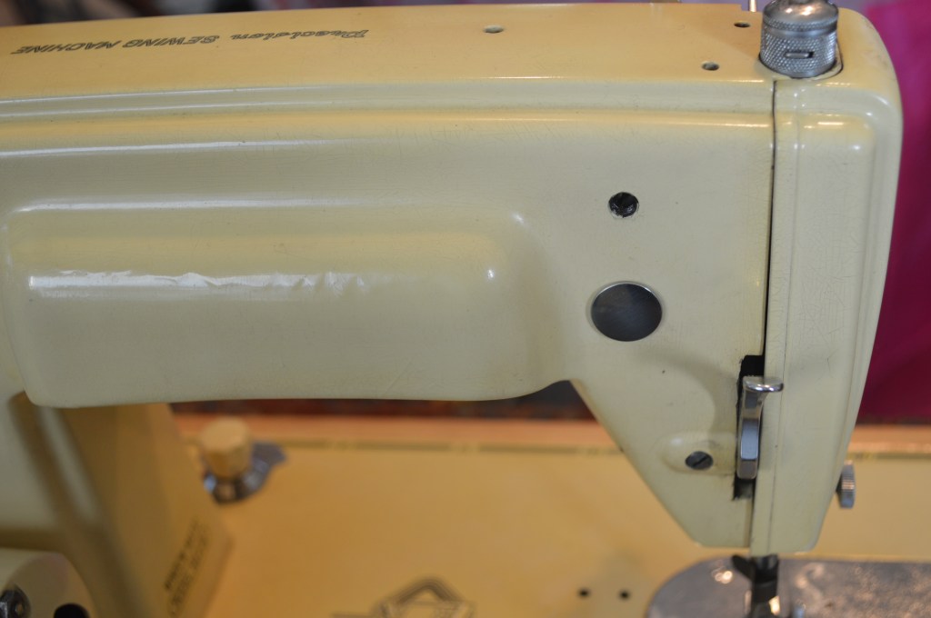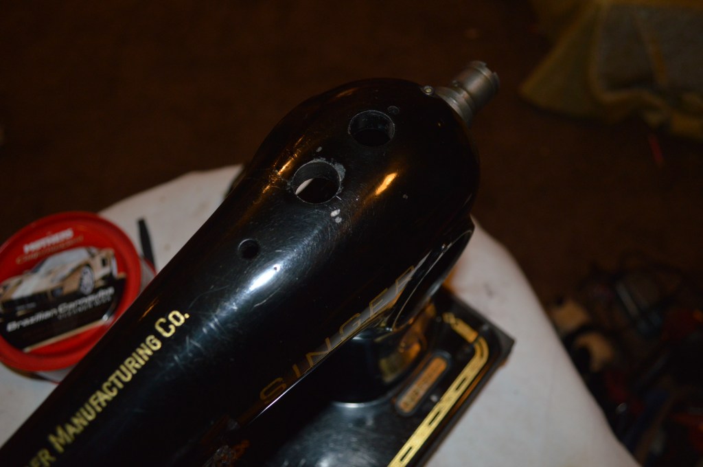 Part of the reason for this restoration is a sad story. As I said, my customer purchased this machine at a Shopgoodwill online auction. Shopgoodwill is a great place to find both common and unique sewing machines. At any given time, they can have 500 or more sewing machines for auction. I have purchased machines from them, and I have seen some rare and wonderful machines over the years. The only problem with purchasing a machine from them is that there is a high probability that it will be damaged in shipping… If it is in a case, the chance the case will be damaged by the machine smashing it or the spool pin punching thru the top… this is just my personal experience. I like Shopgoodwill and great bargains can be found there, but unless it is very desireable machine to me, I don’t source machines from them.