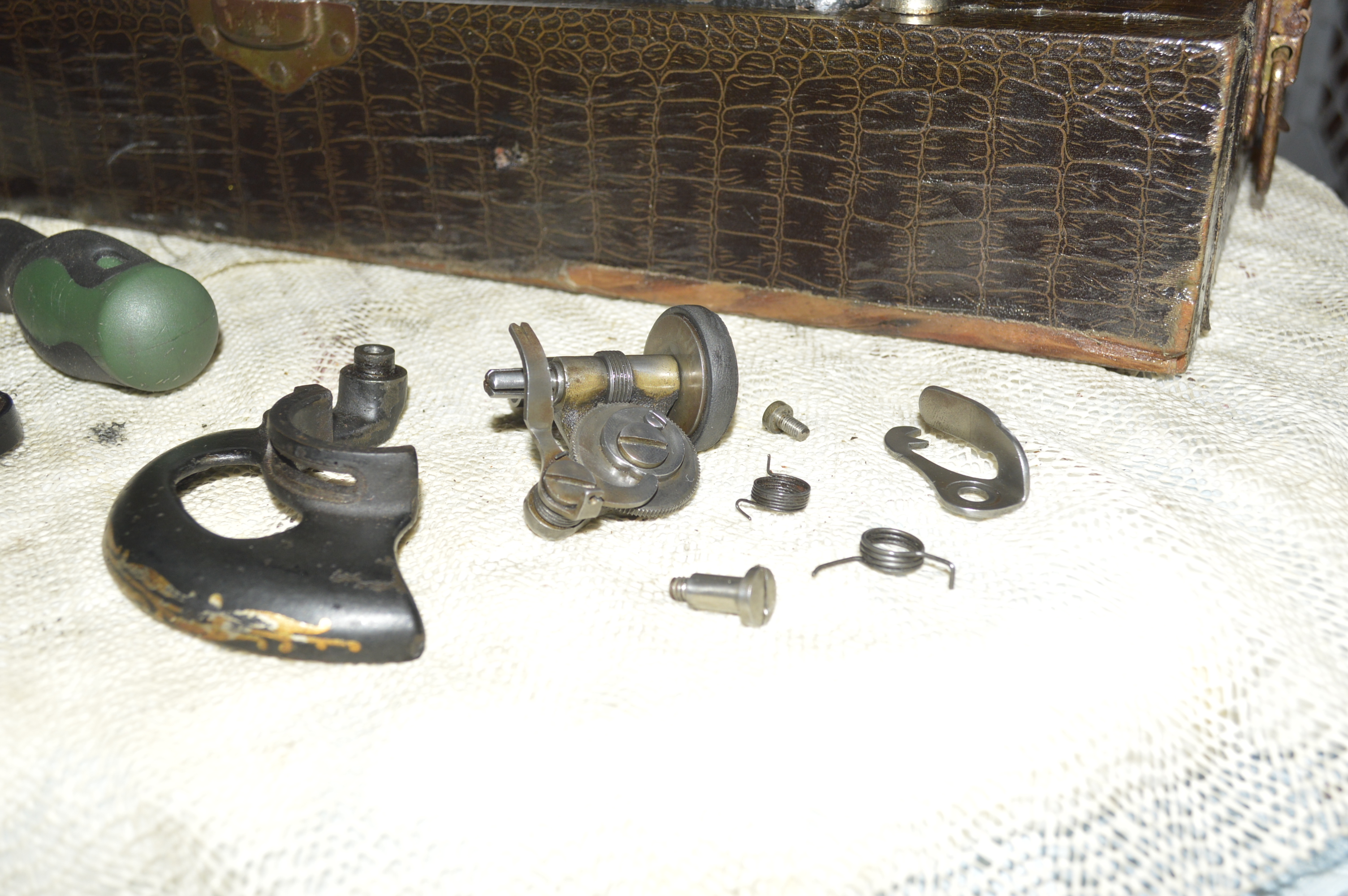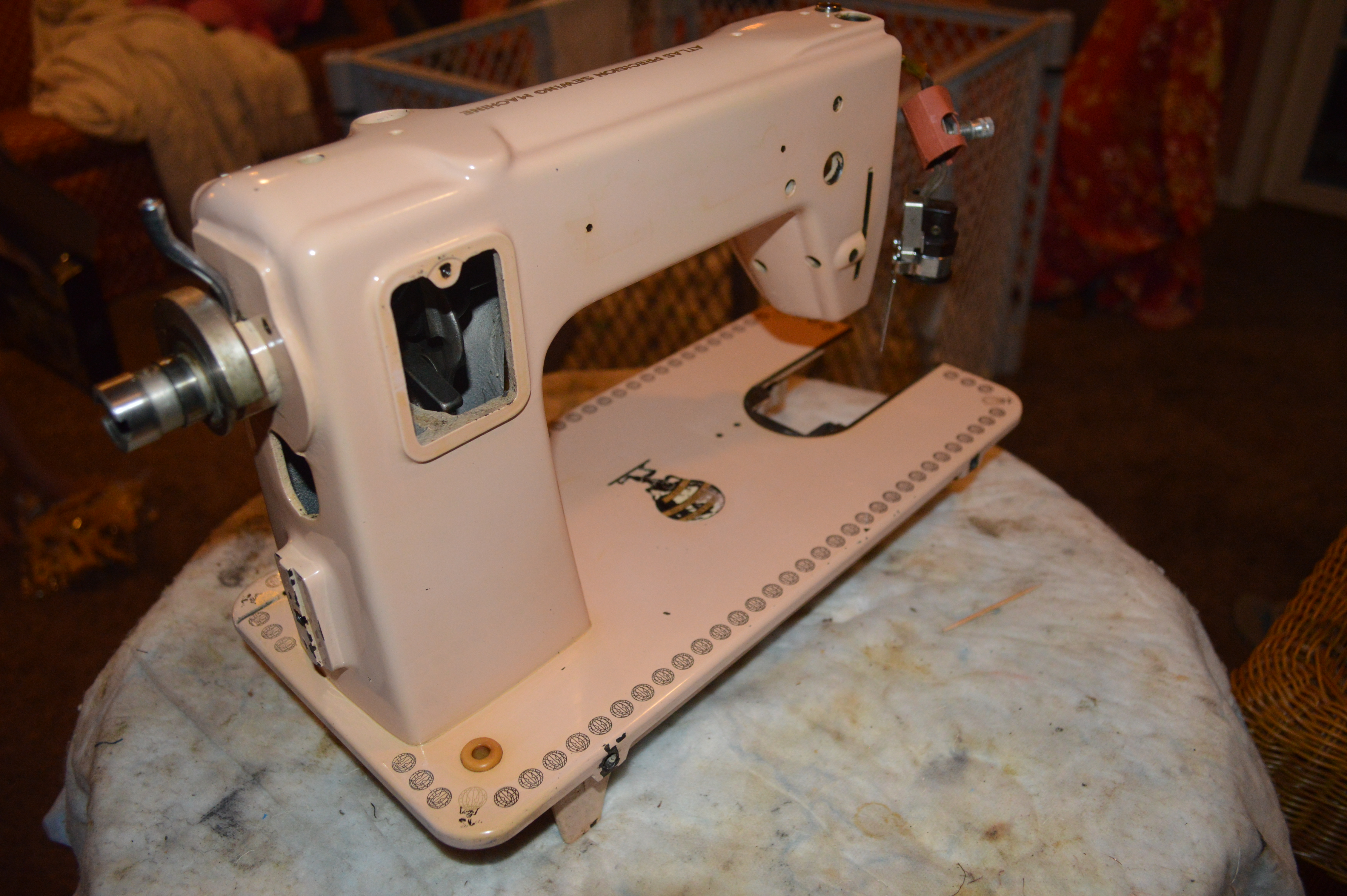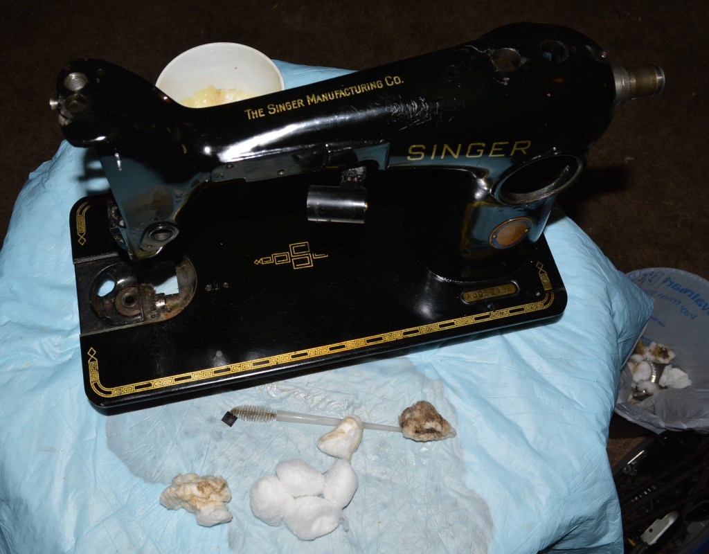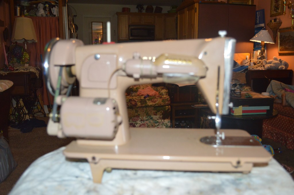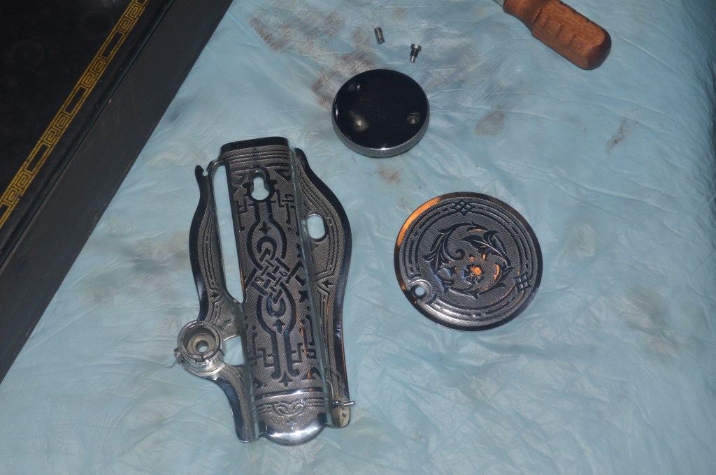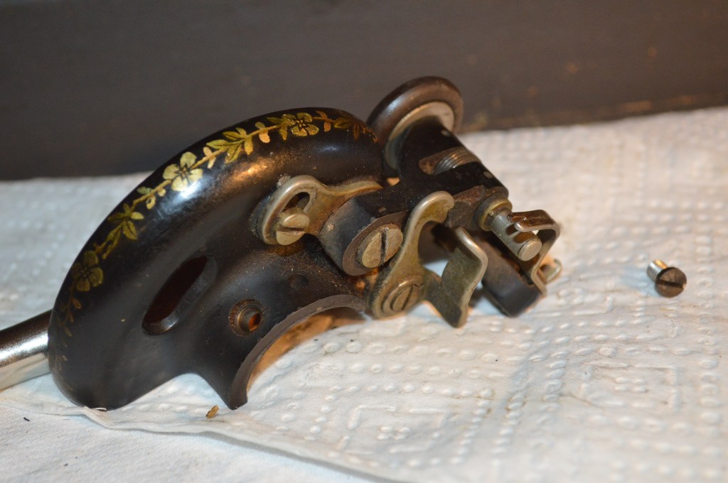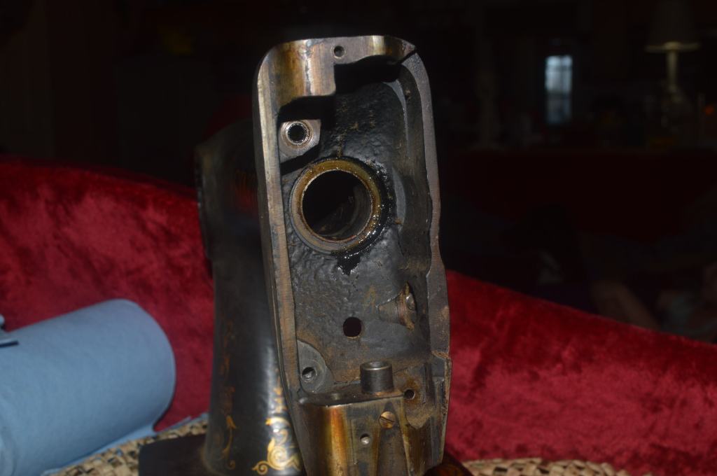 Part of the reason for this restoration is a sad story. As I said, my customer purchased this machine at a Shopgoodwill online auction. Shopgoodwill is a great place to find both common and unique sewing machines. At any given time, they can have 500 or more sewing machines for auction. I have purchased machines from them, and I have seen some rare and wonderful machines over the years. The only problem with purchasing a machine from them is that there is a high probability that it will be damaged in shipping… If it is in a case, the chance the case will be damaged by the machine smashing it or the spool pin punching thru the top… this is just my personal experience. I like Shopgoodwill and great bargains can be found there, but unless it is very desireable machine to me, I don’t source machines from them.