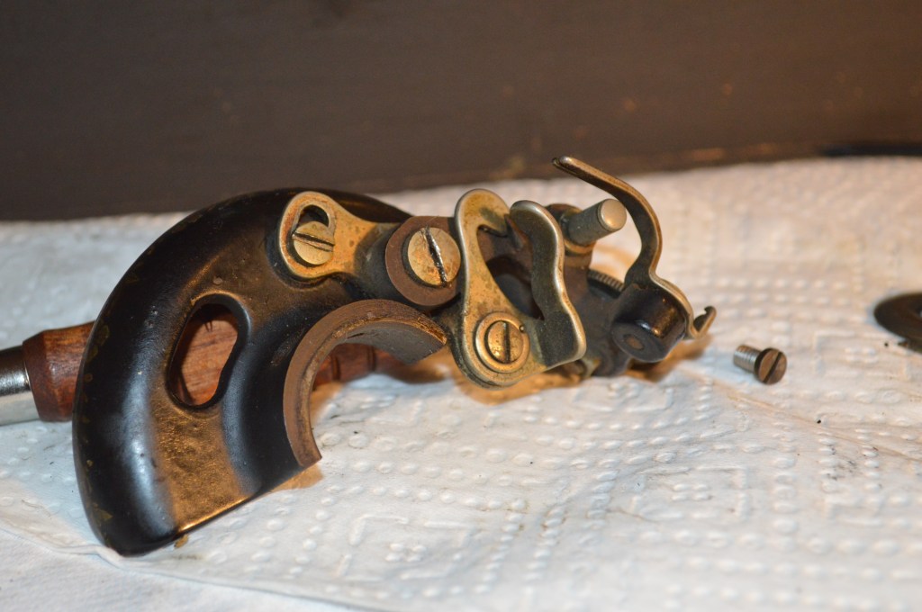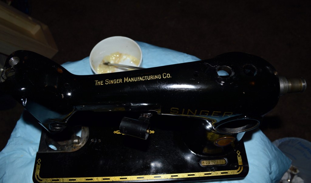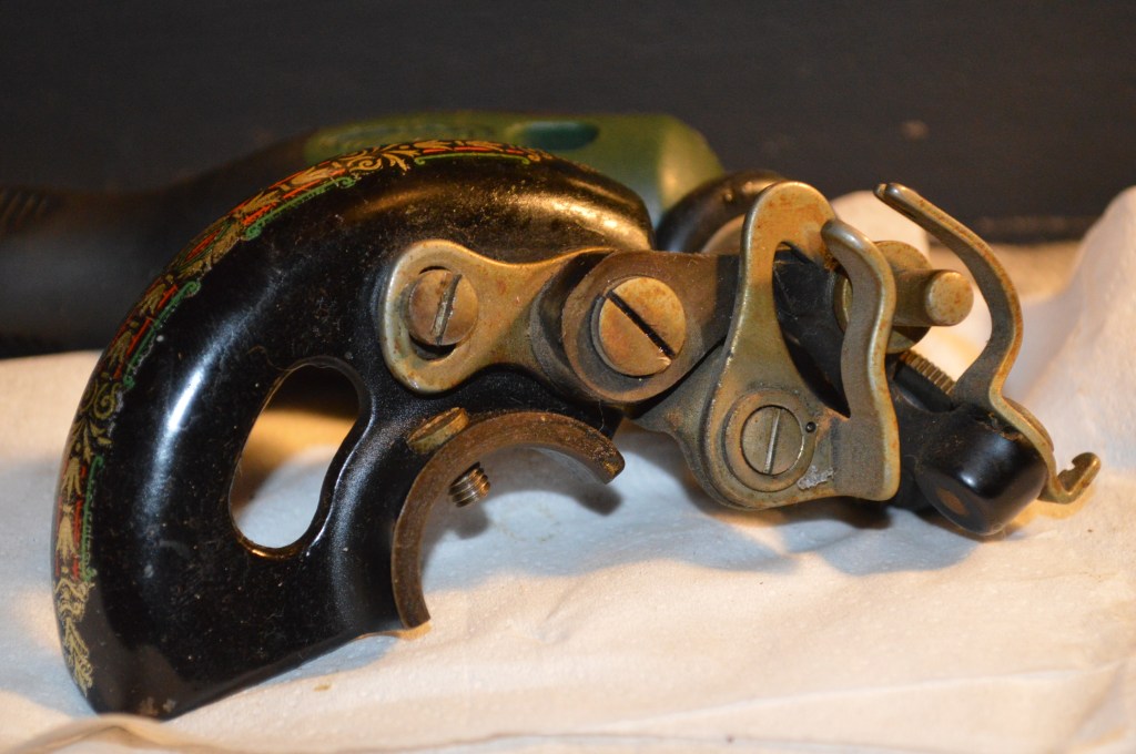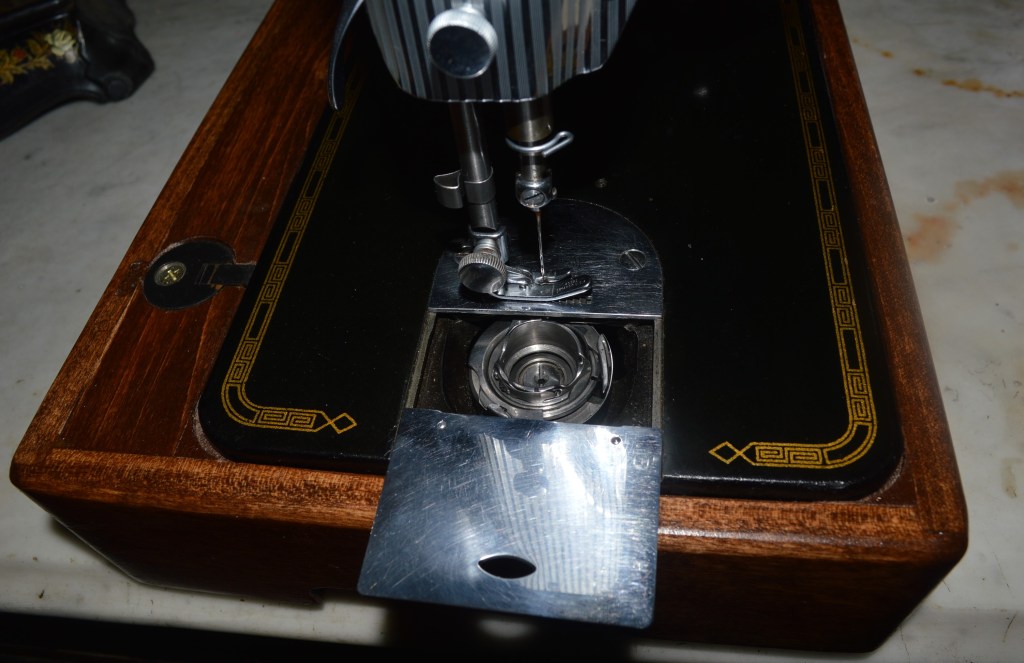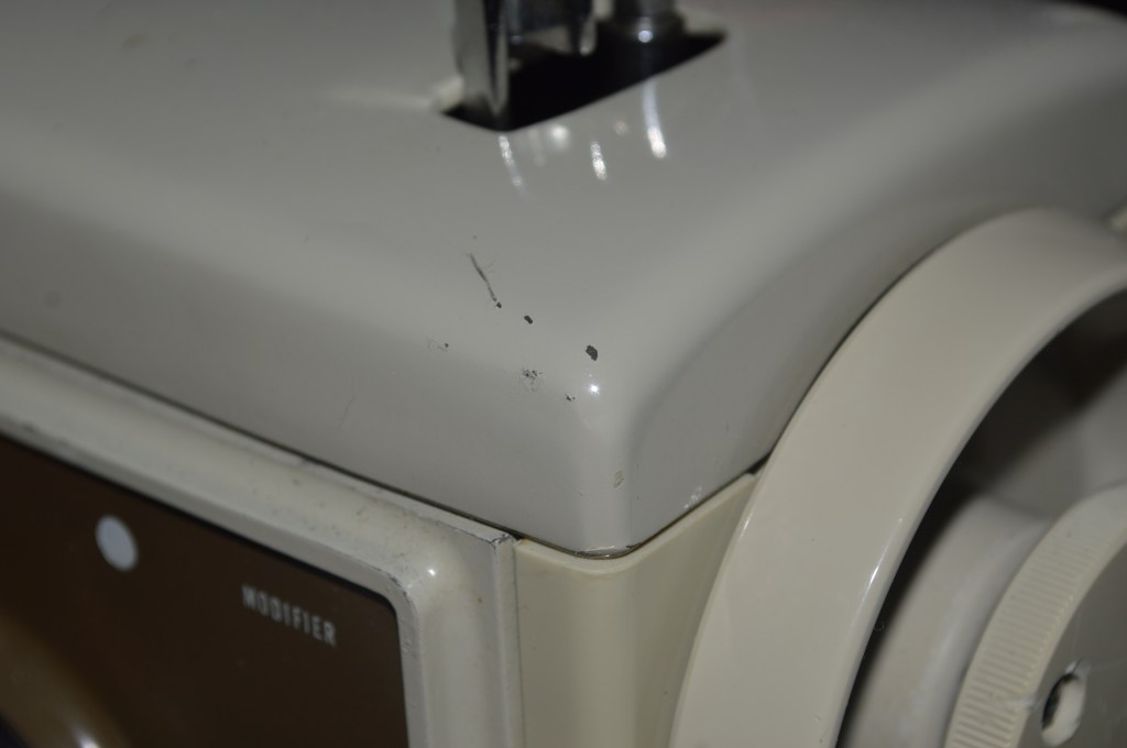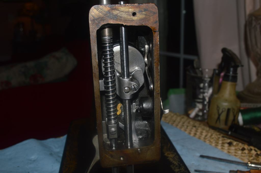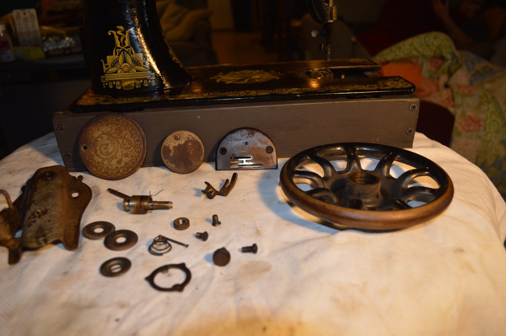 Part of the reason for this restoration is a sad story. As I said, my customer purchased this machine at a Shopgoodwill online auction. Shopgoodwill is a great place to find both common and unique sewing machines. At any given time, they can have 500 or more sewing machines for auction. I have purchased machines from them, and I have seen some rare and wonderful machines over the years. The only problem with purchasing a machine from them is that there is a high probability that it will be damaged in shipping… If it is in a case, the chance the case will be damaged by the machine smashing it or the spool pin punching thru the top… this is just my personal experience. I like Shopgoodwill and great bargains can be found there, but unless it is very desireable machine to me, I don’t source machines from them.