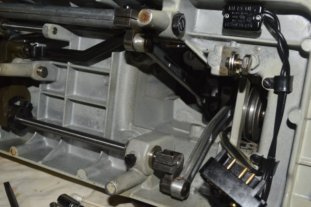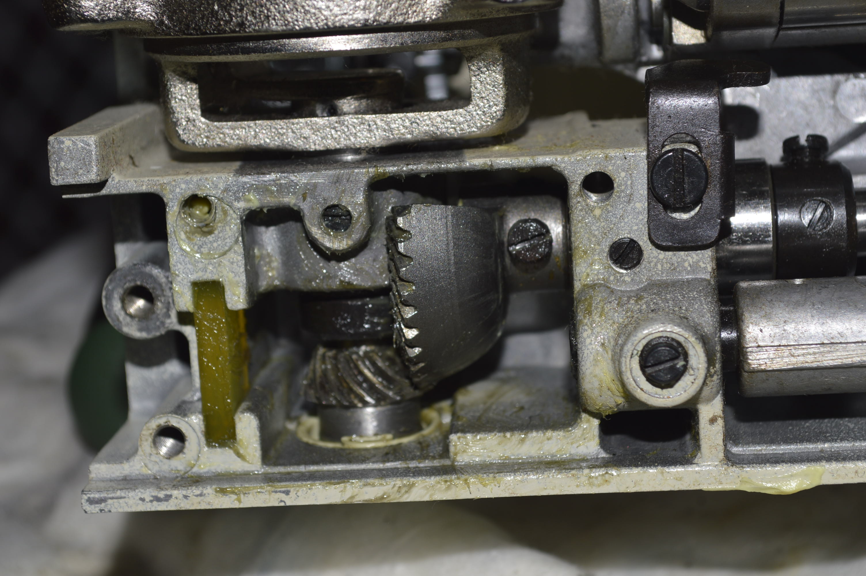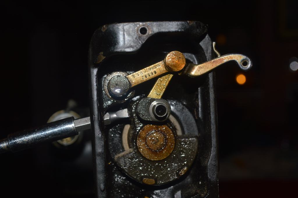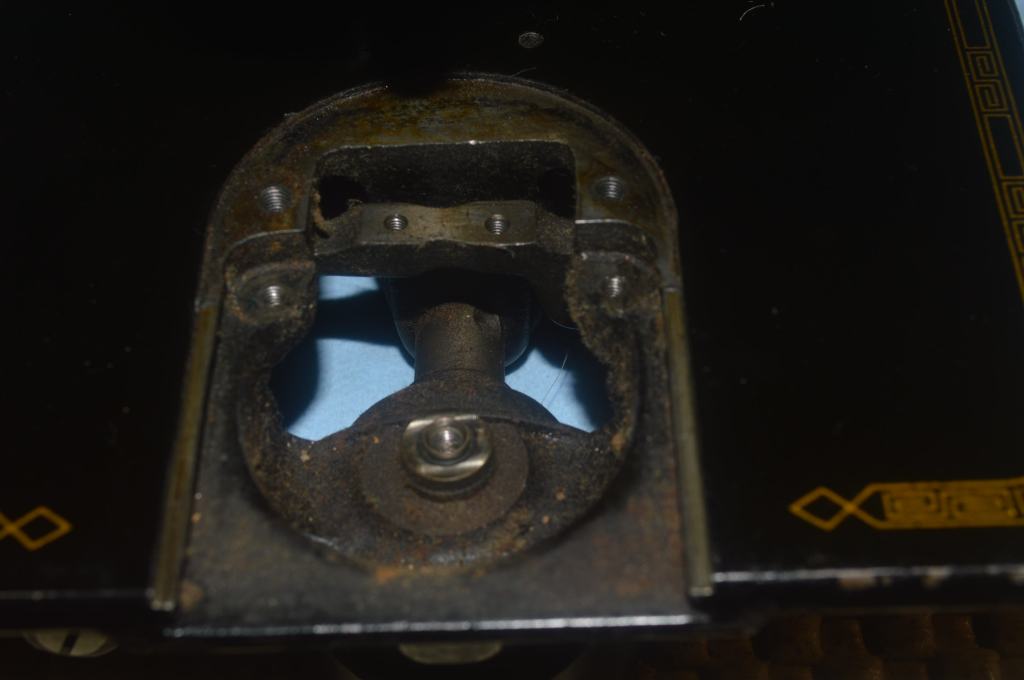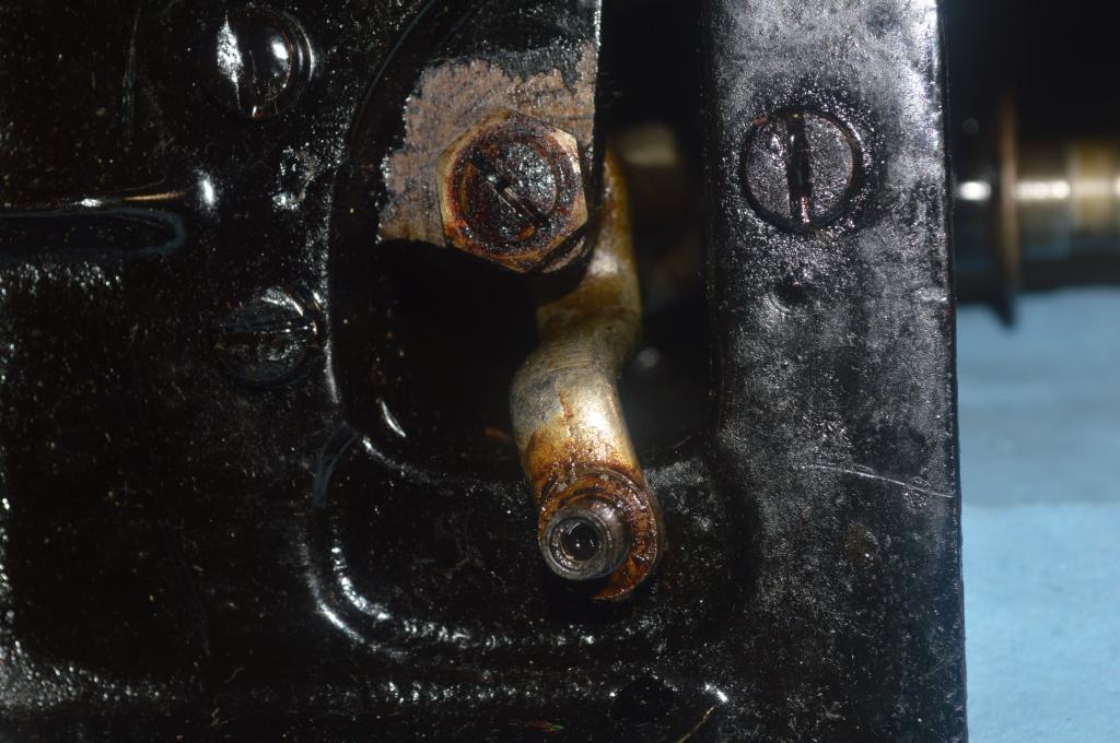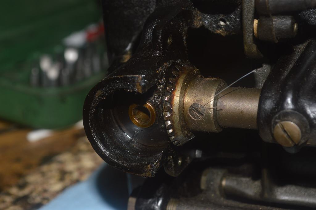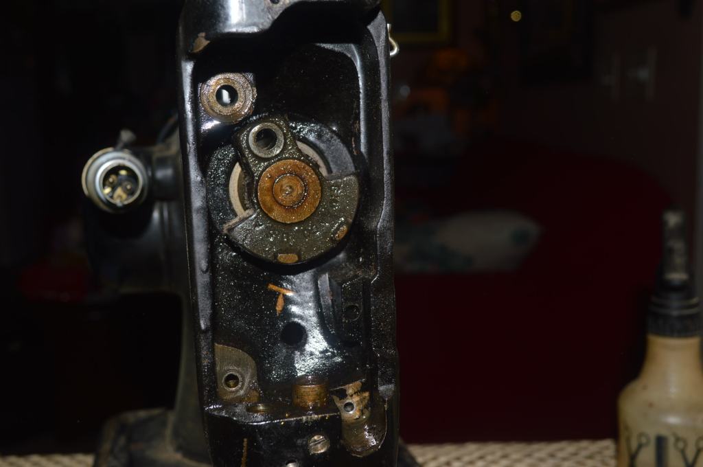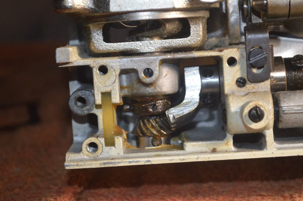 The plan included the disassembly of the top shaft and stitch length fork… The following picture convinced me not to attept this.