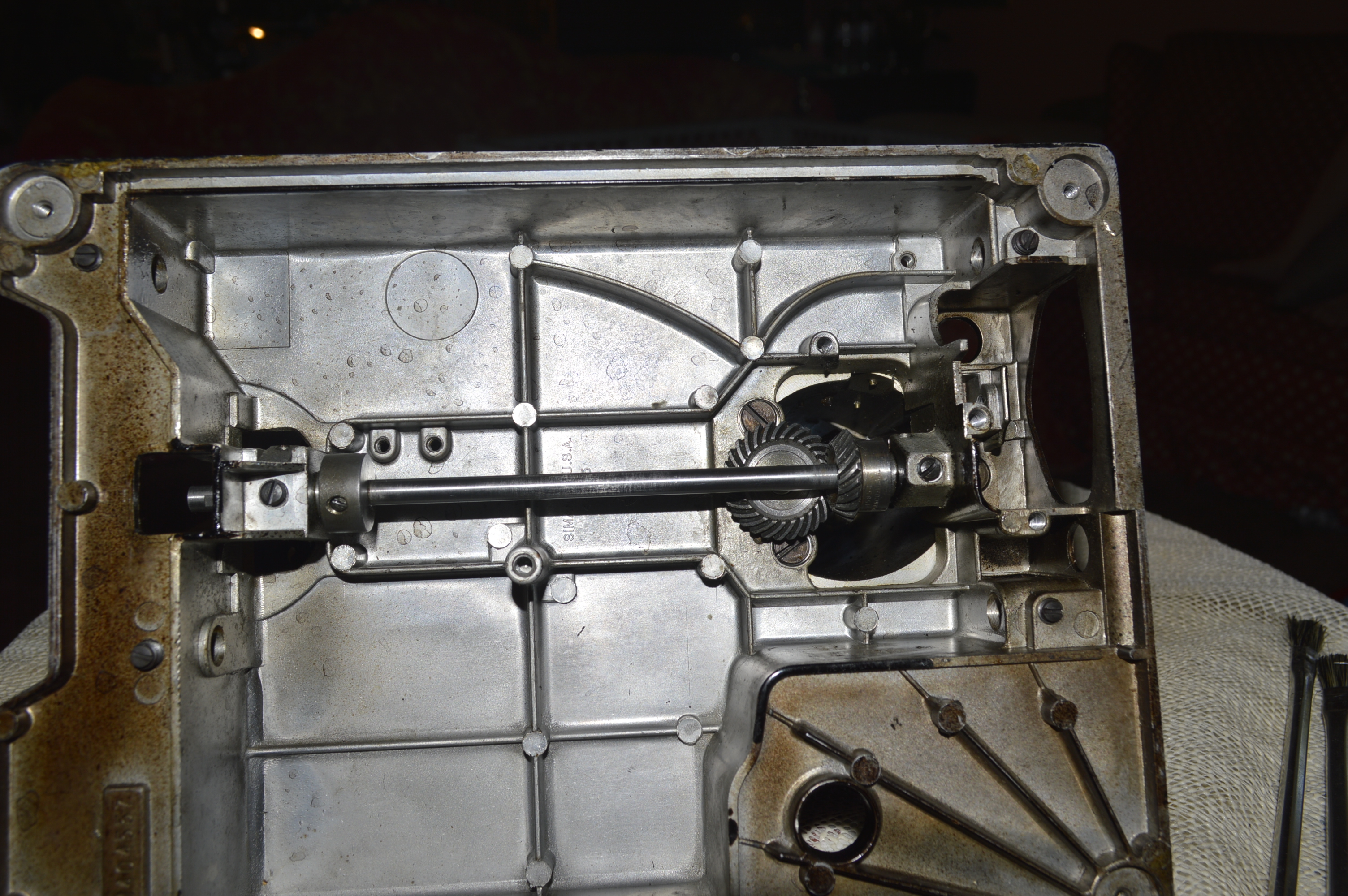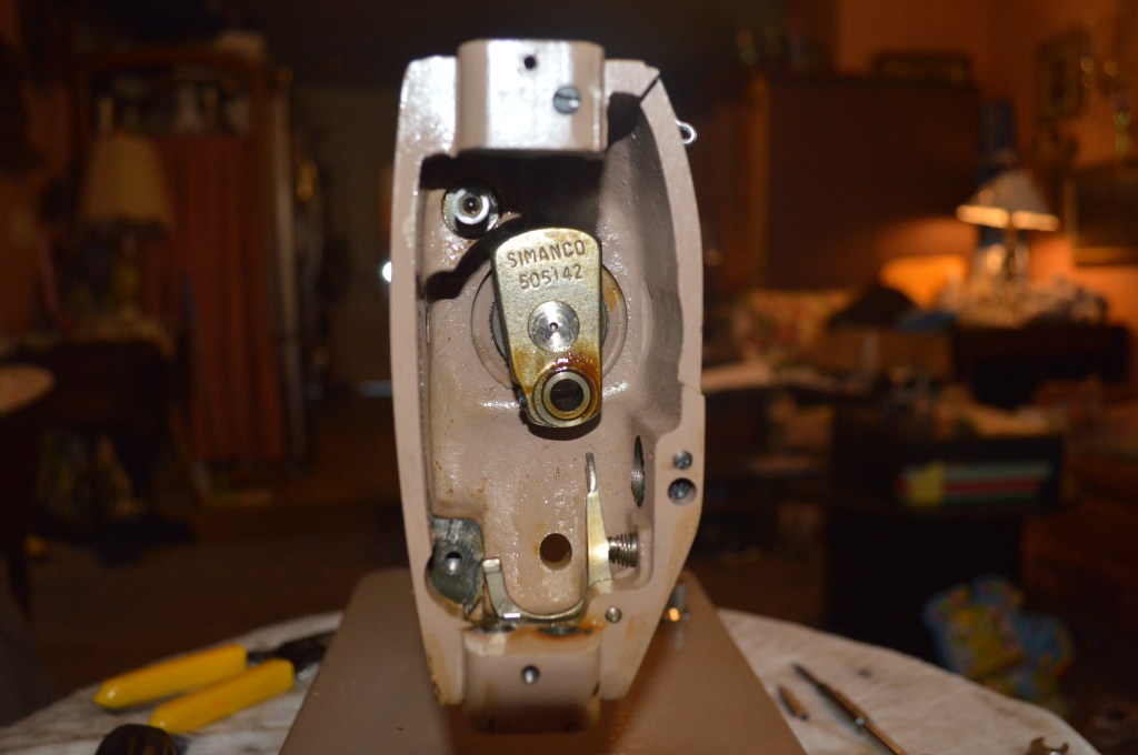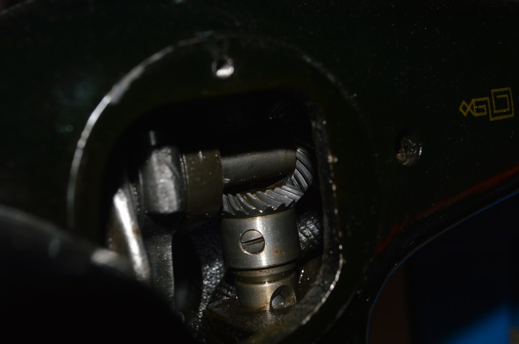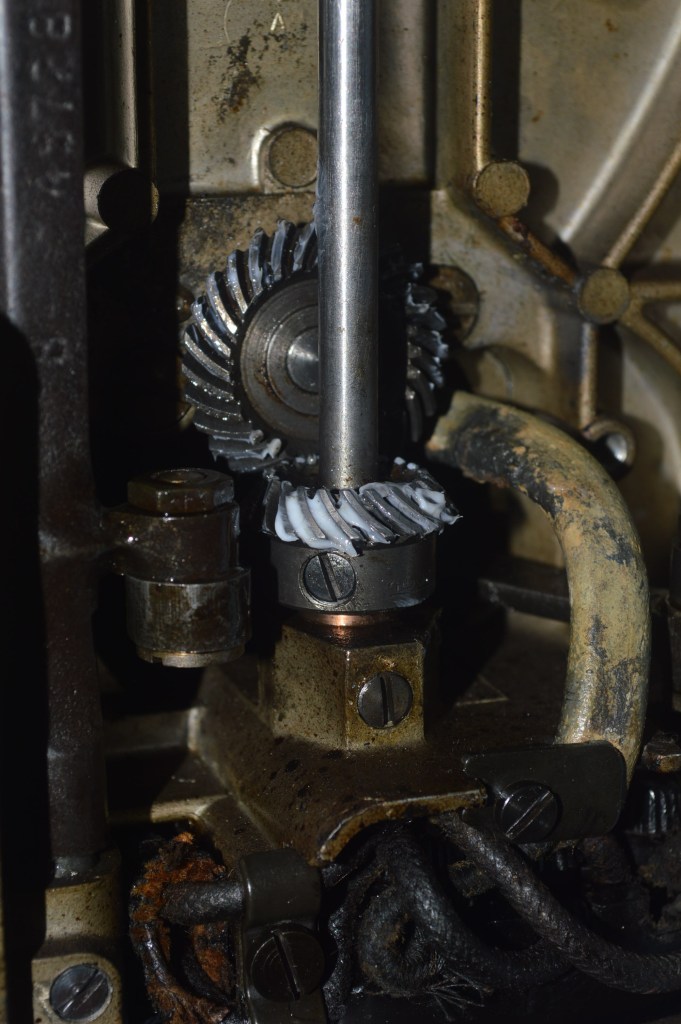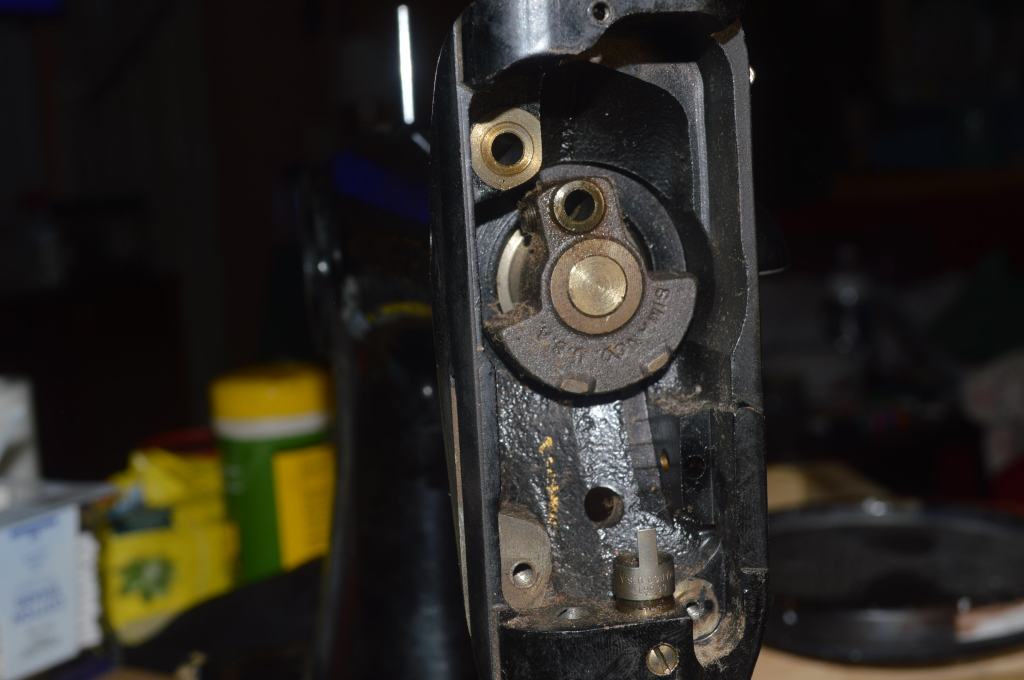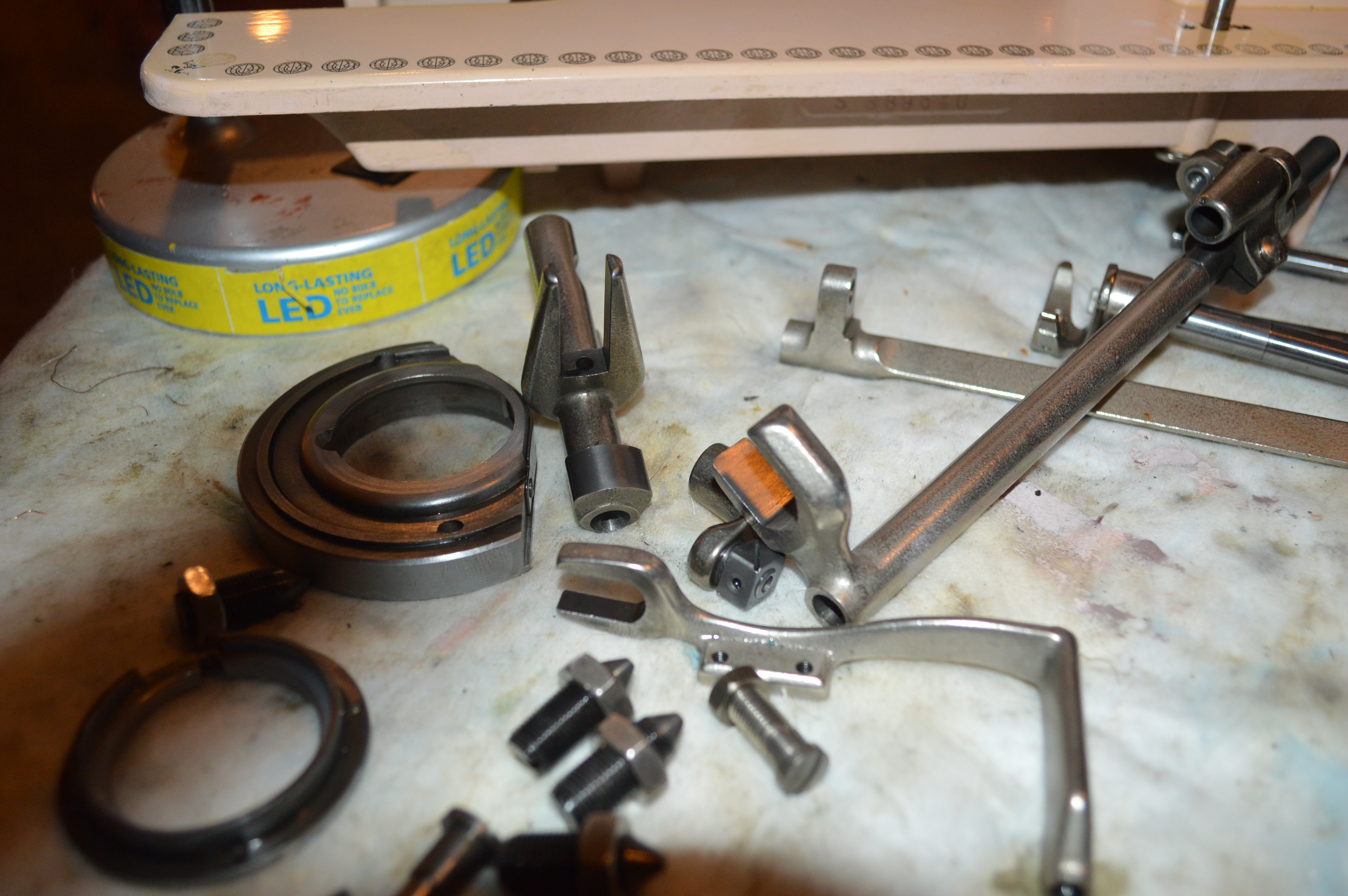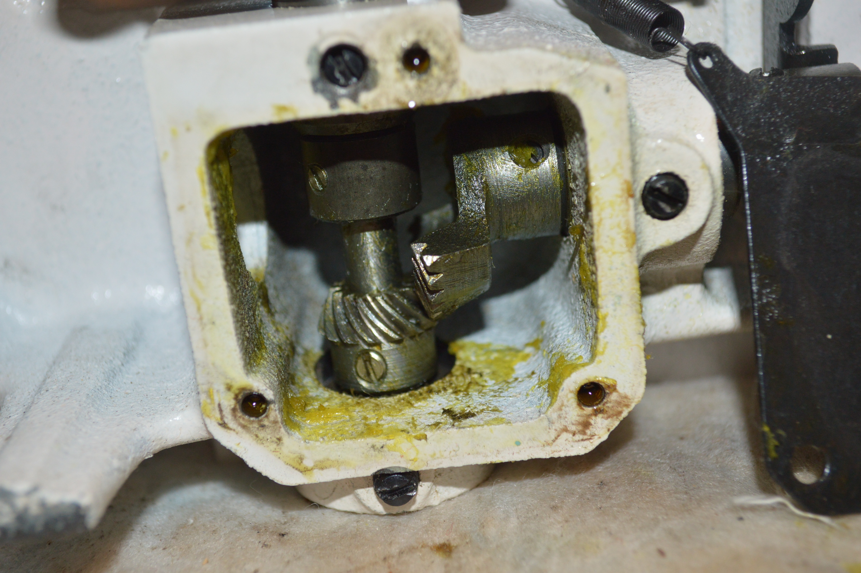 The plan included the disassembly of the top shaft and stitch length fork… The following picture convinced me not to attept this.