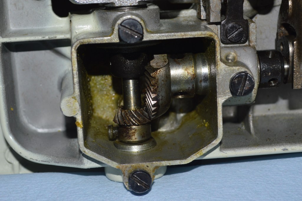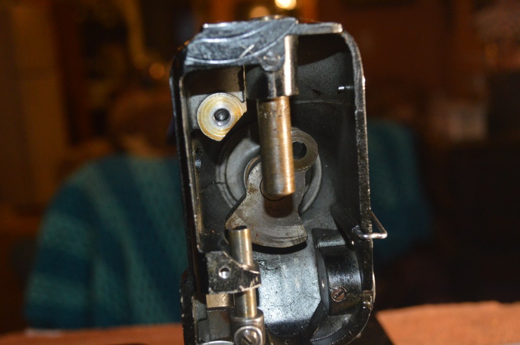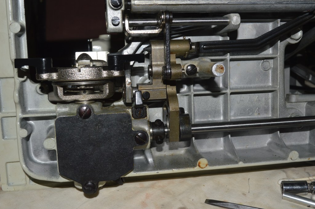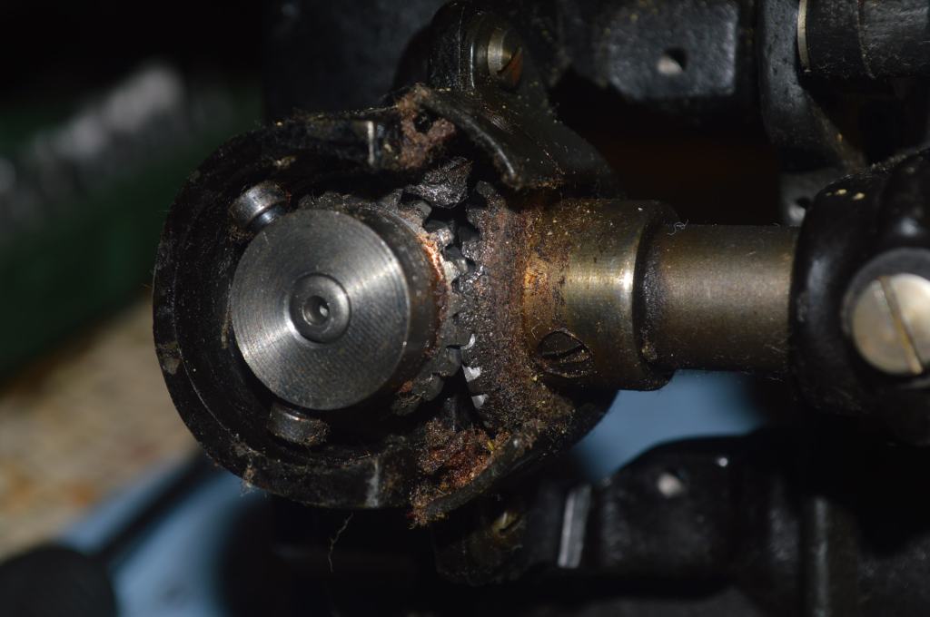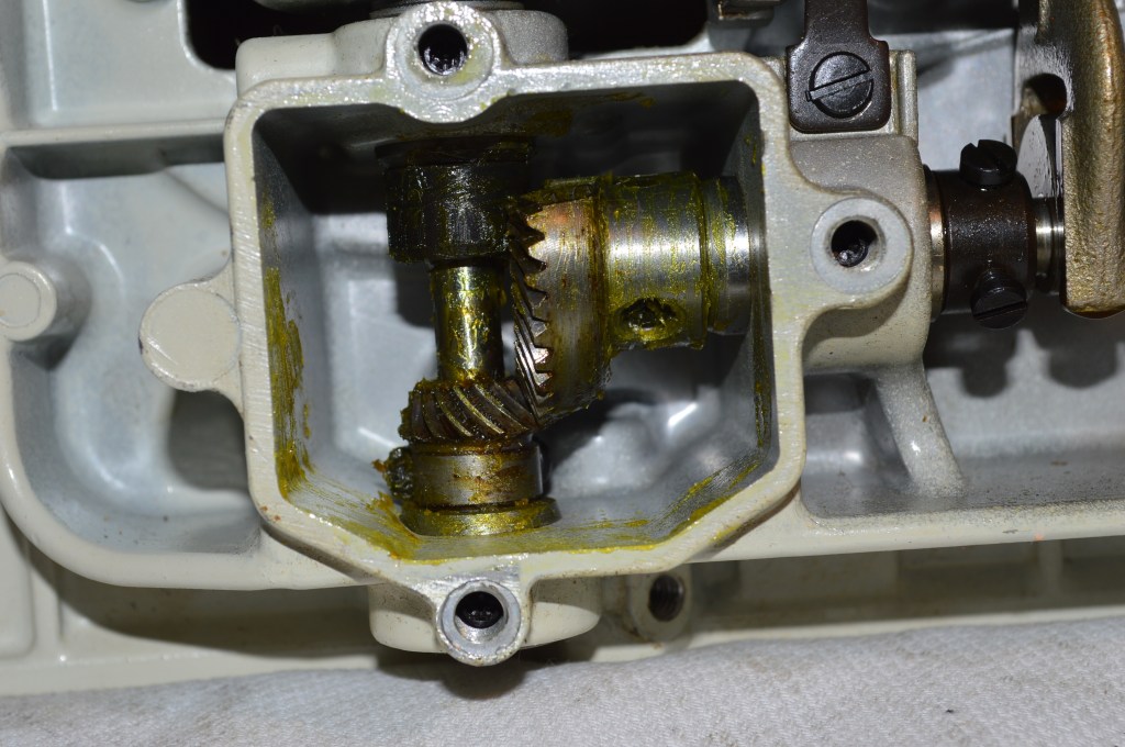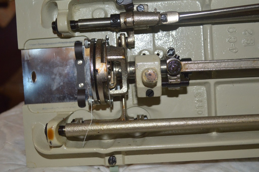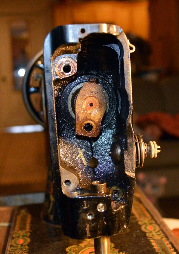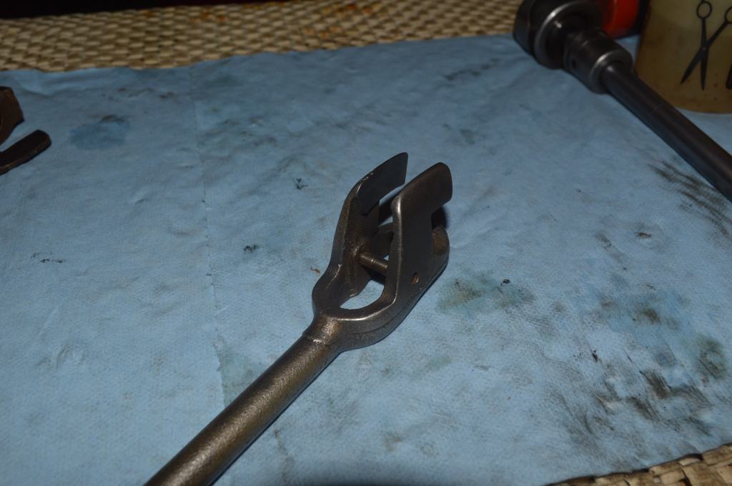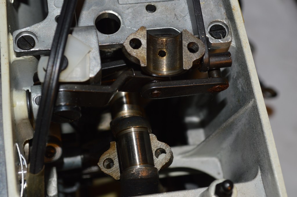 The plan included the disassembly of the top shaft and stitch length fork… The following picture convinced me not to attept this.