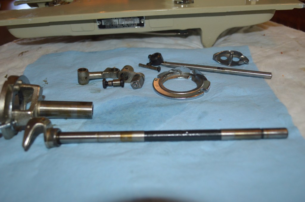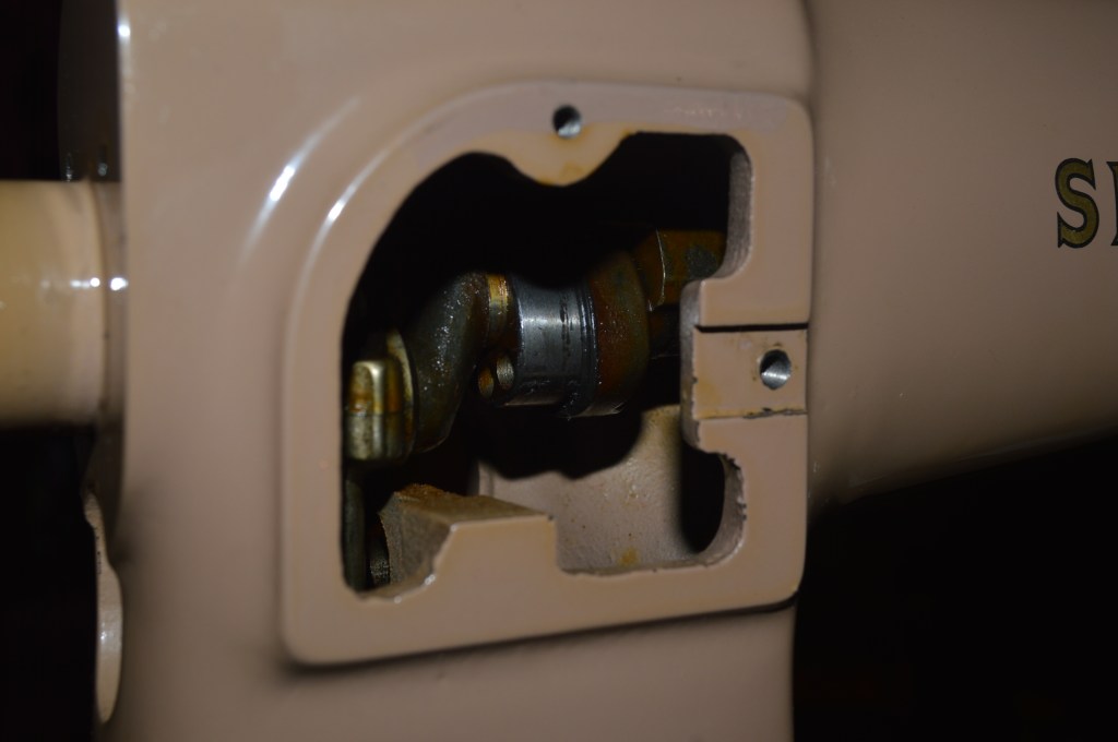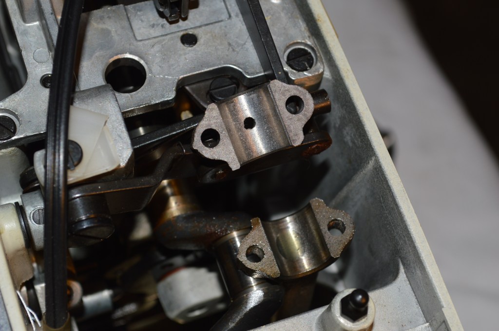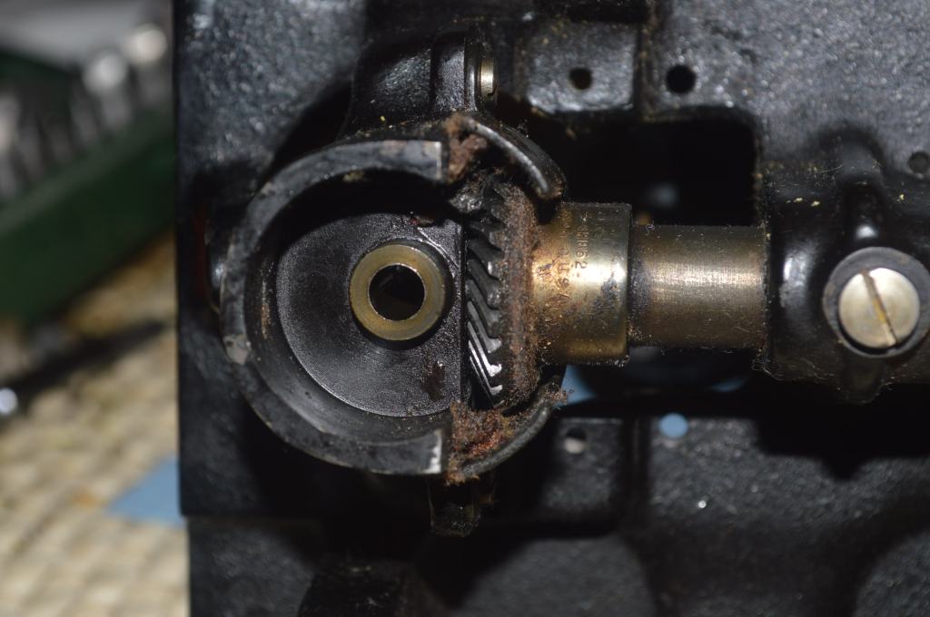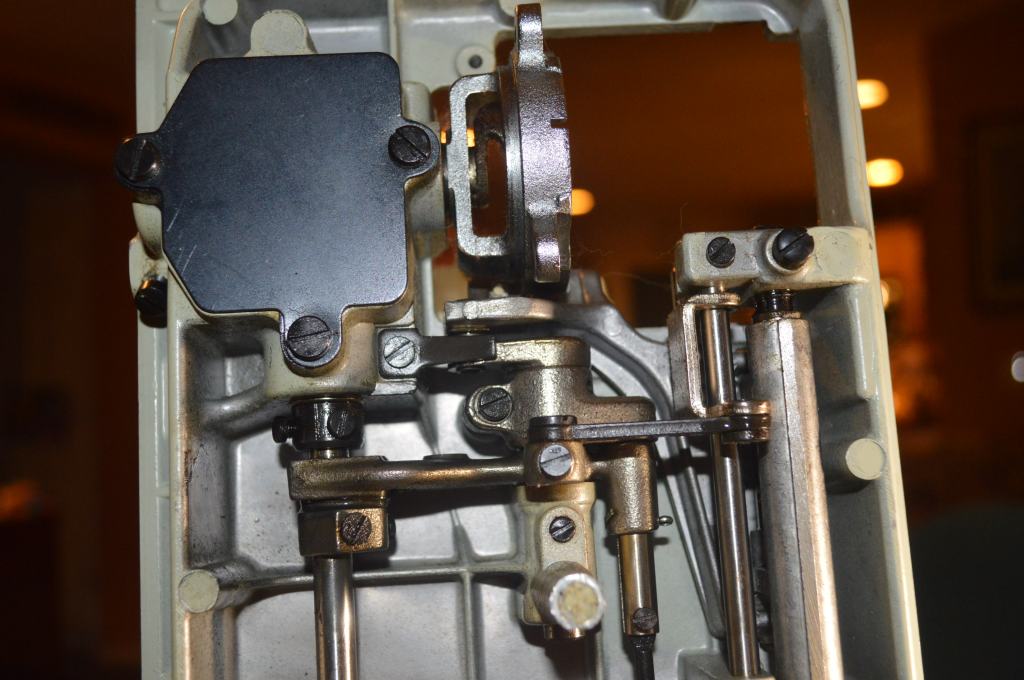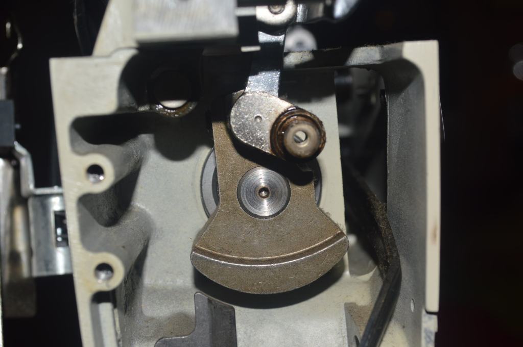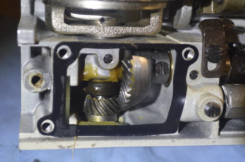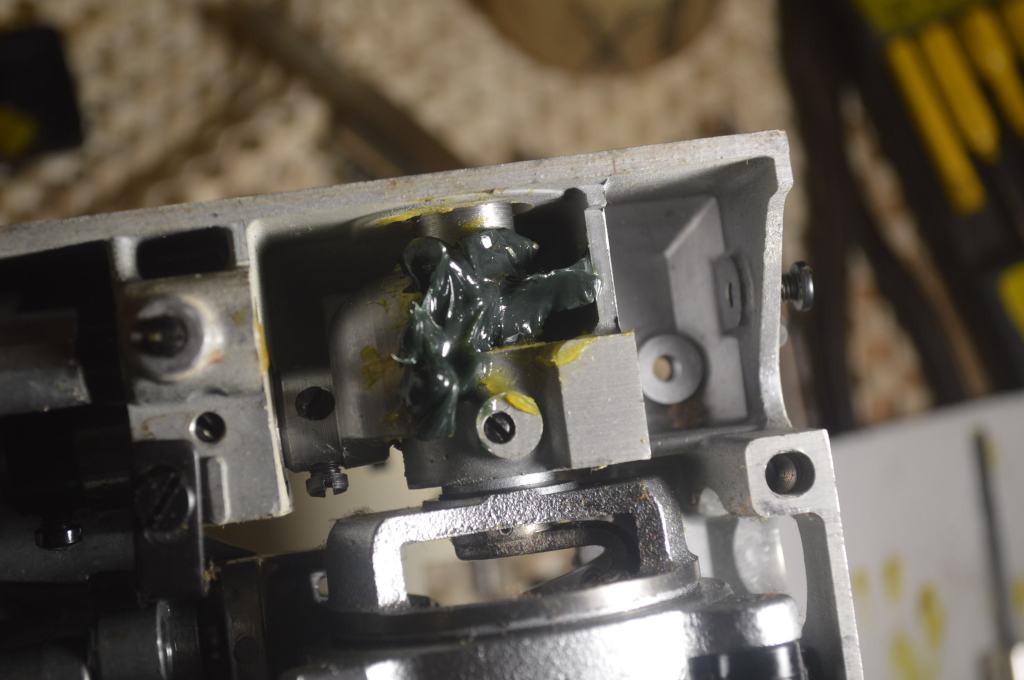 The plan included the disassembly of the top shaft and stitch length fork… The following picture convinced me not to attept this.