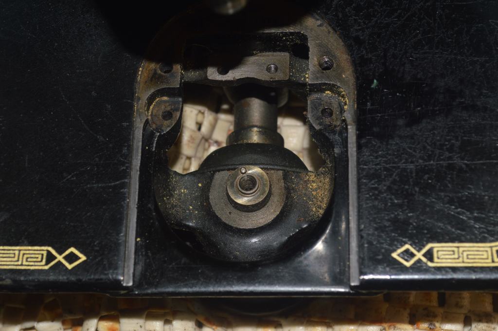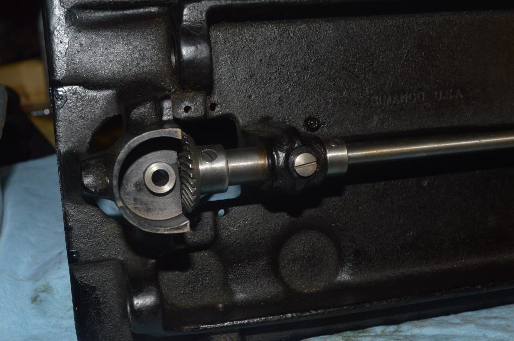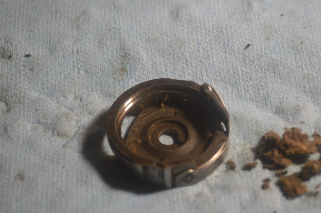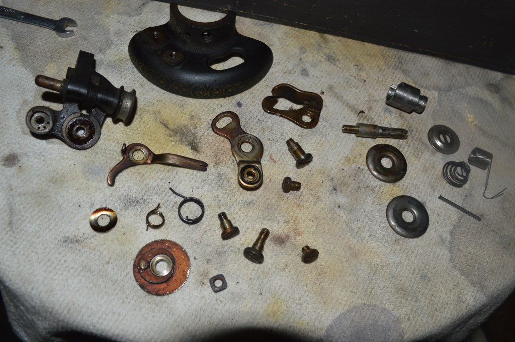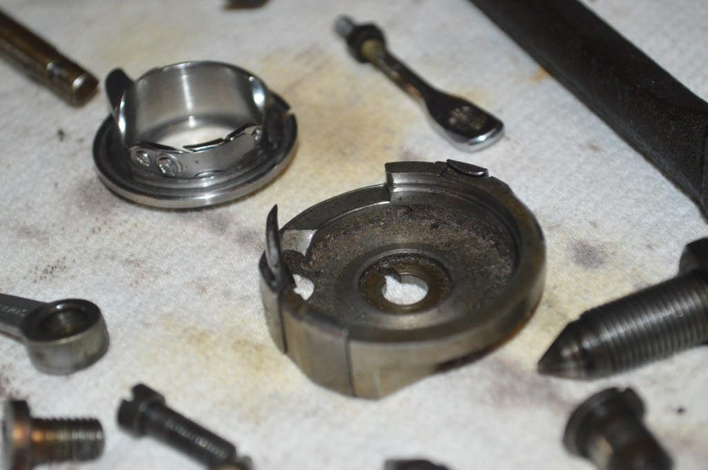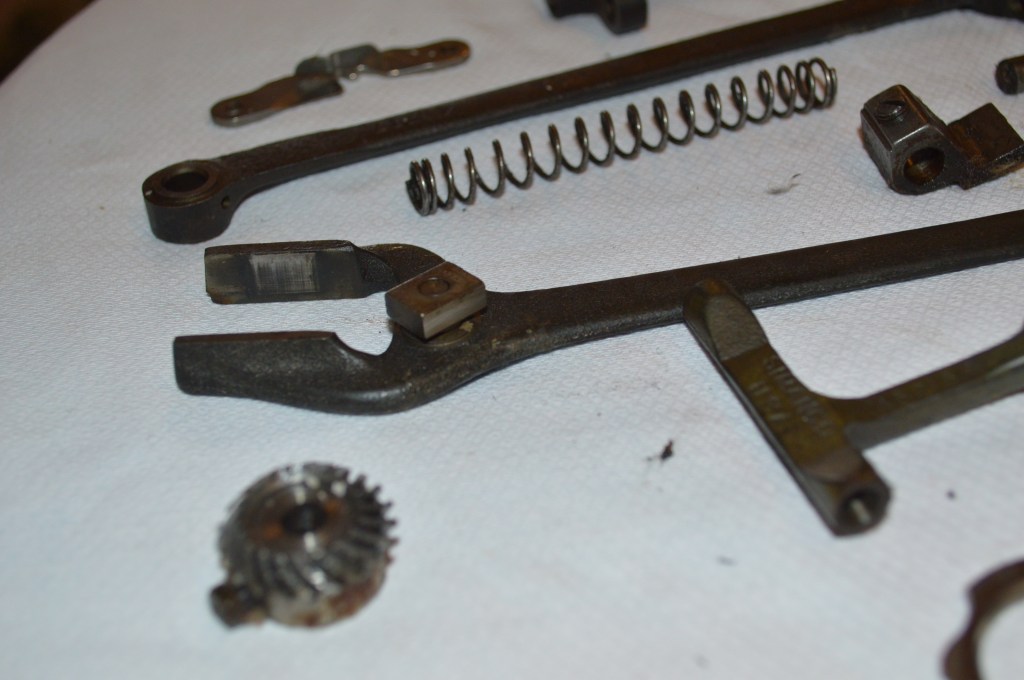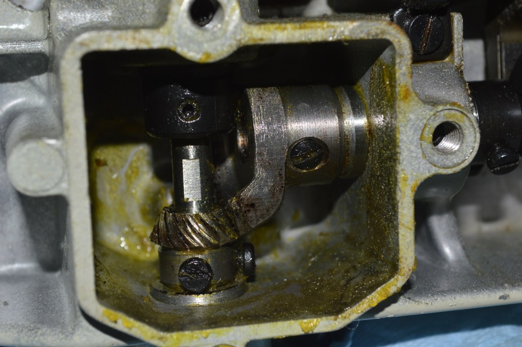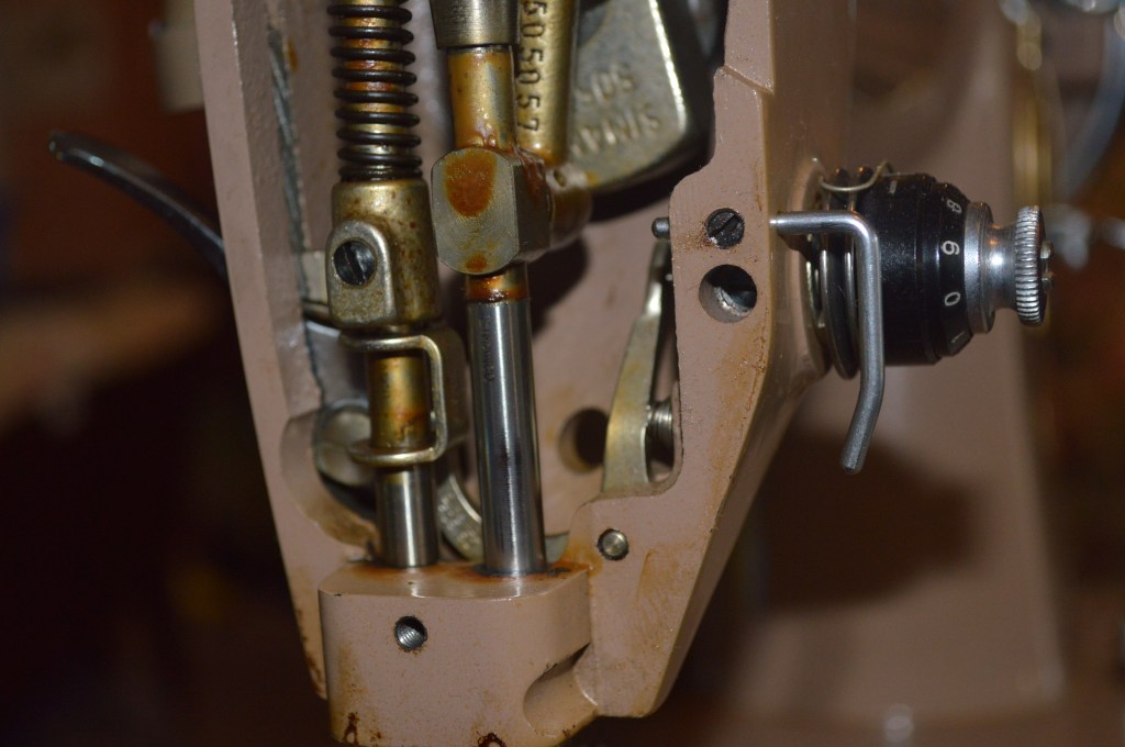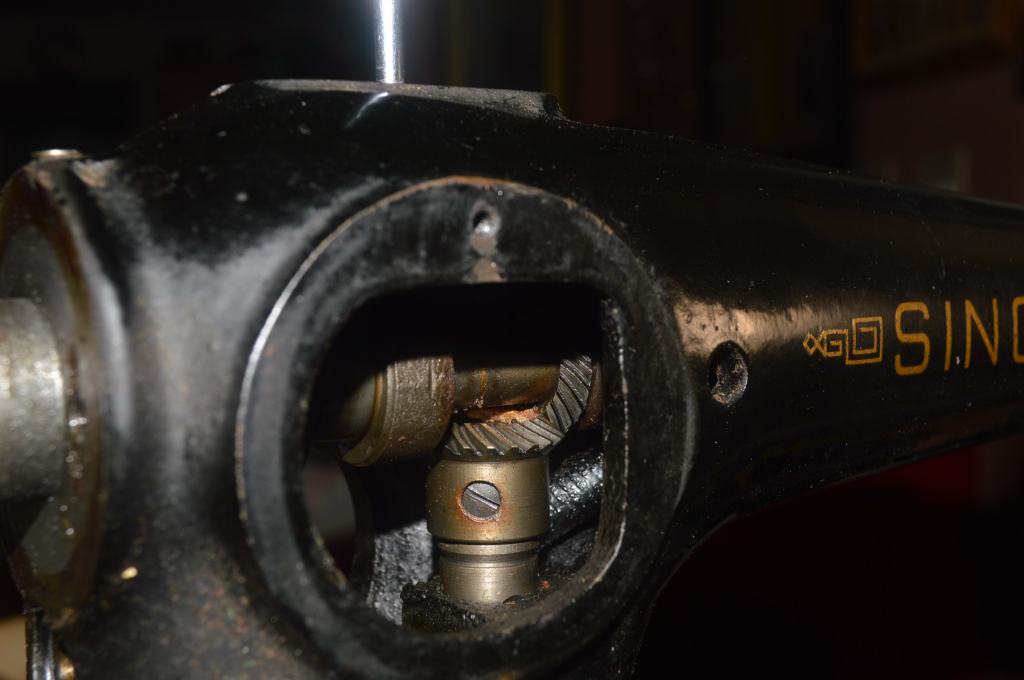 The plan included the disassembly of the top shaft and stitch length fork… The following picture convinced me not to attept this.
