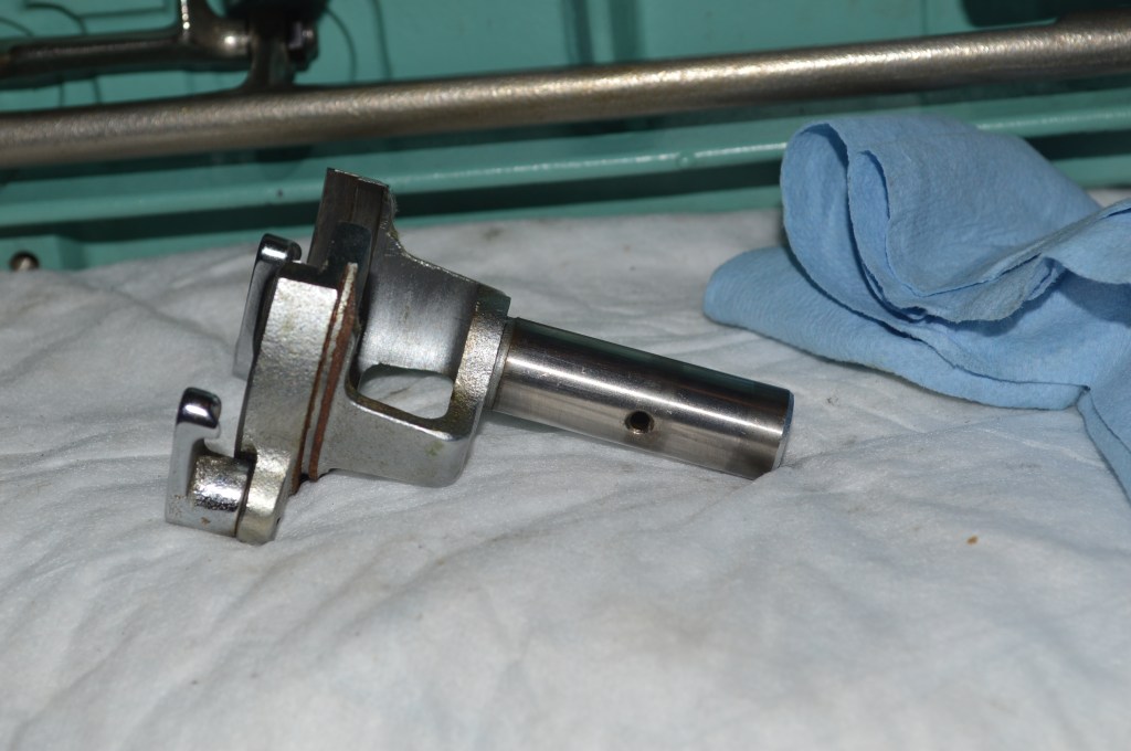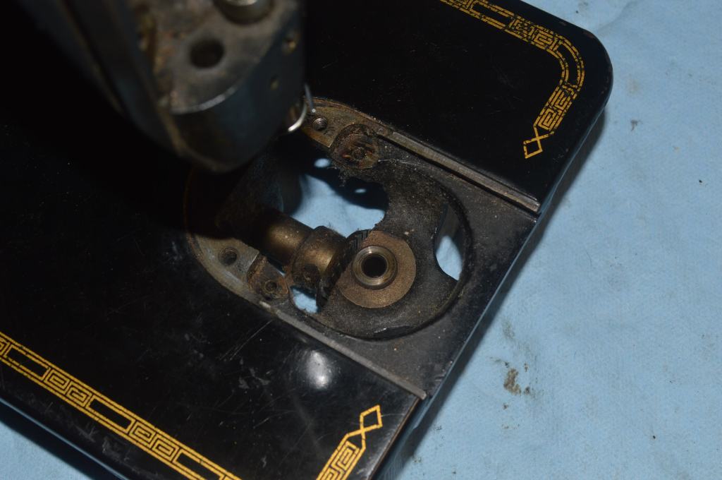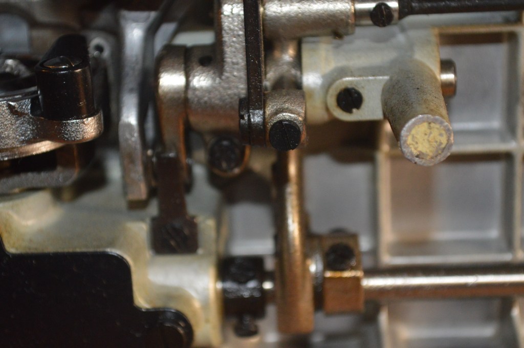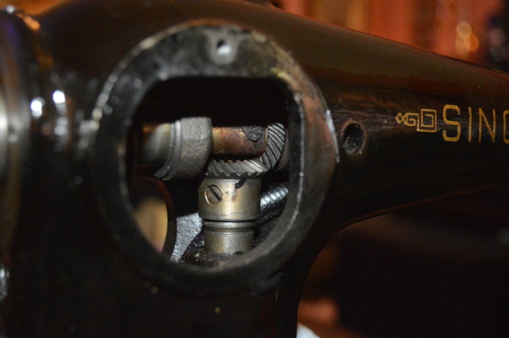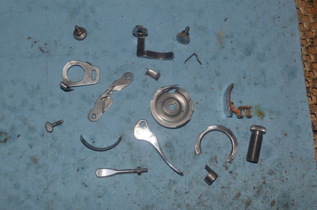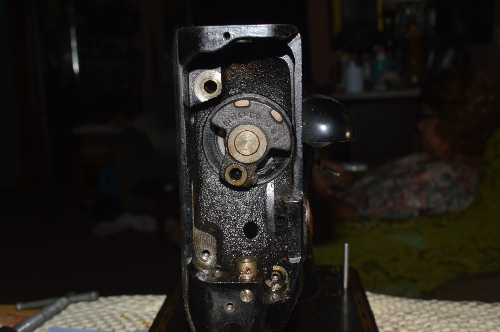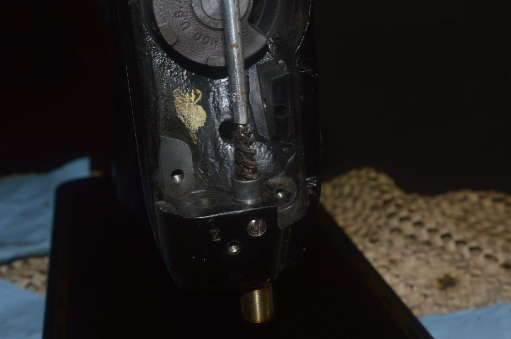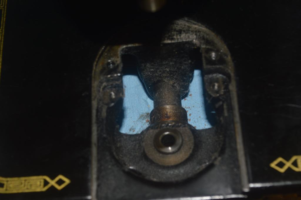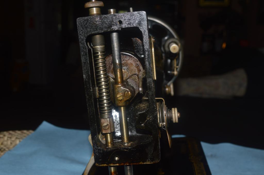 The plan included the disassembly of the top shaft and stitch length fork… The following picture convinced me not to attept this.