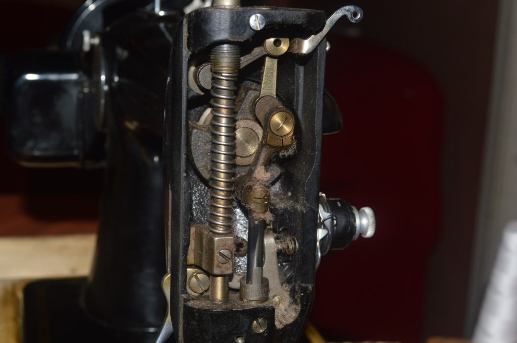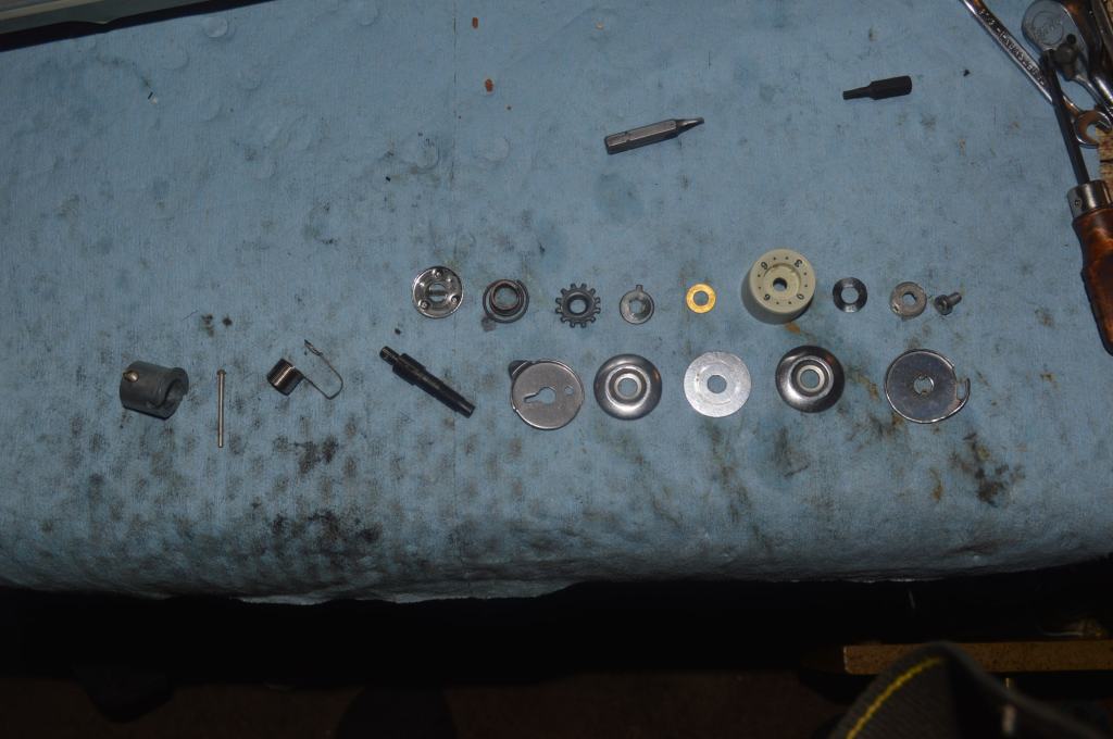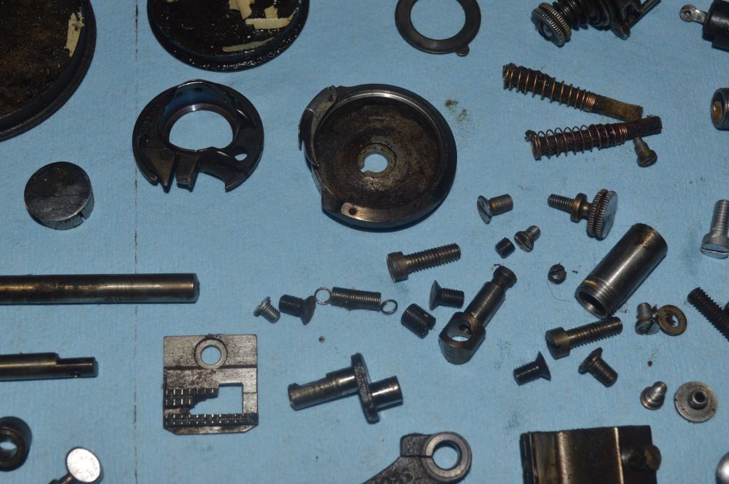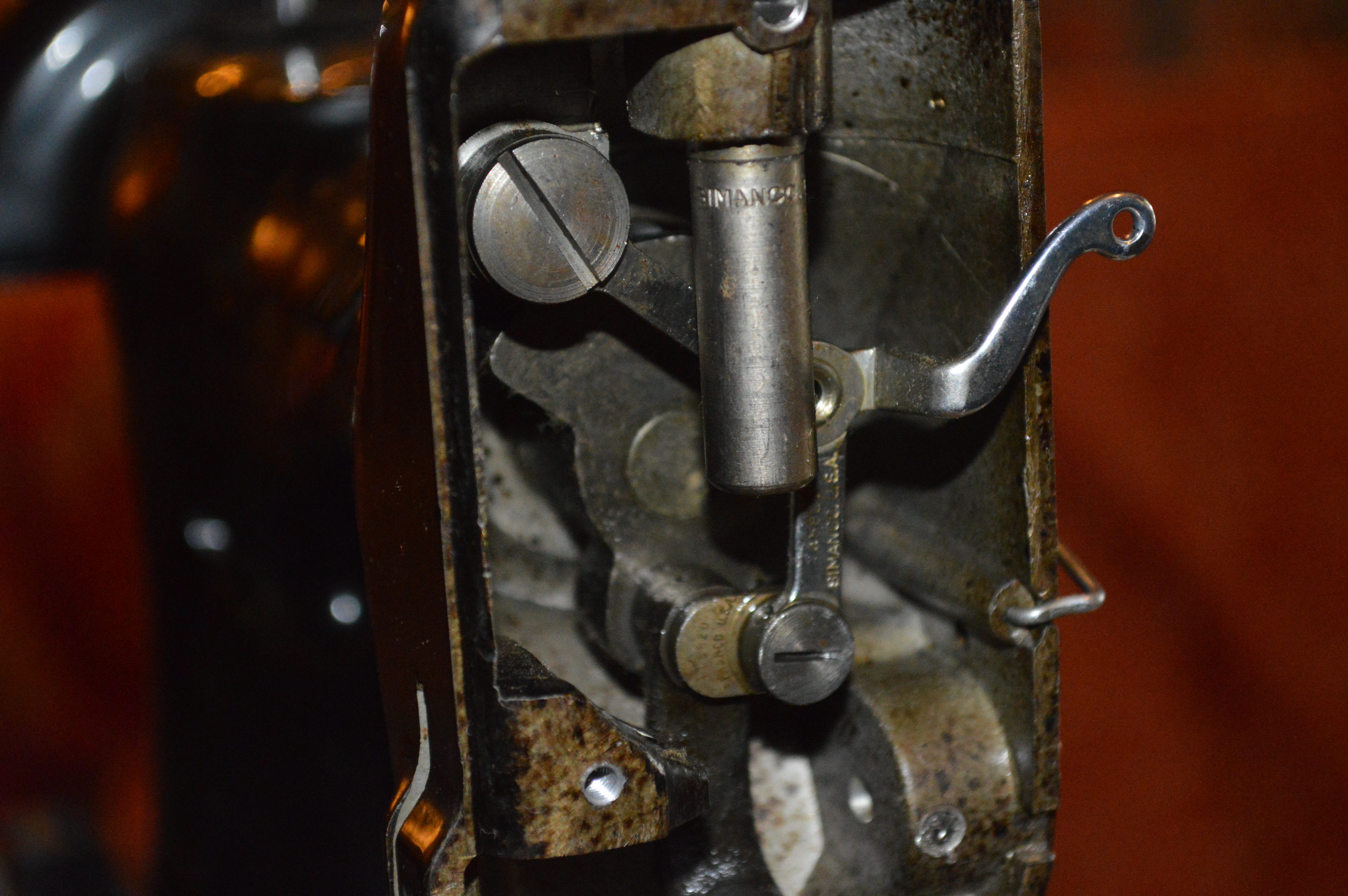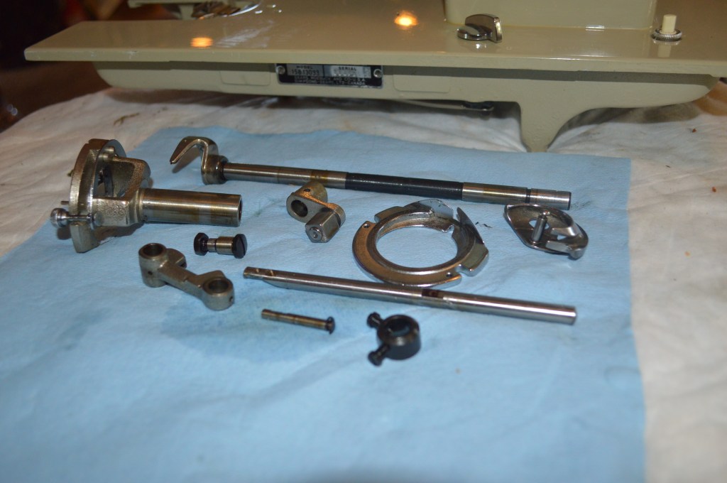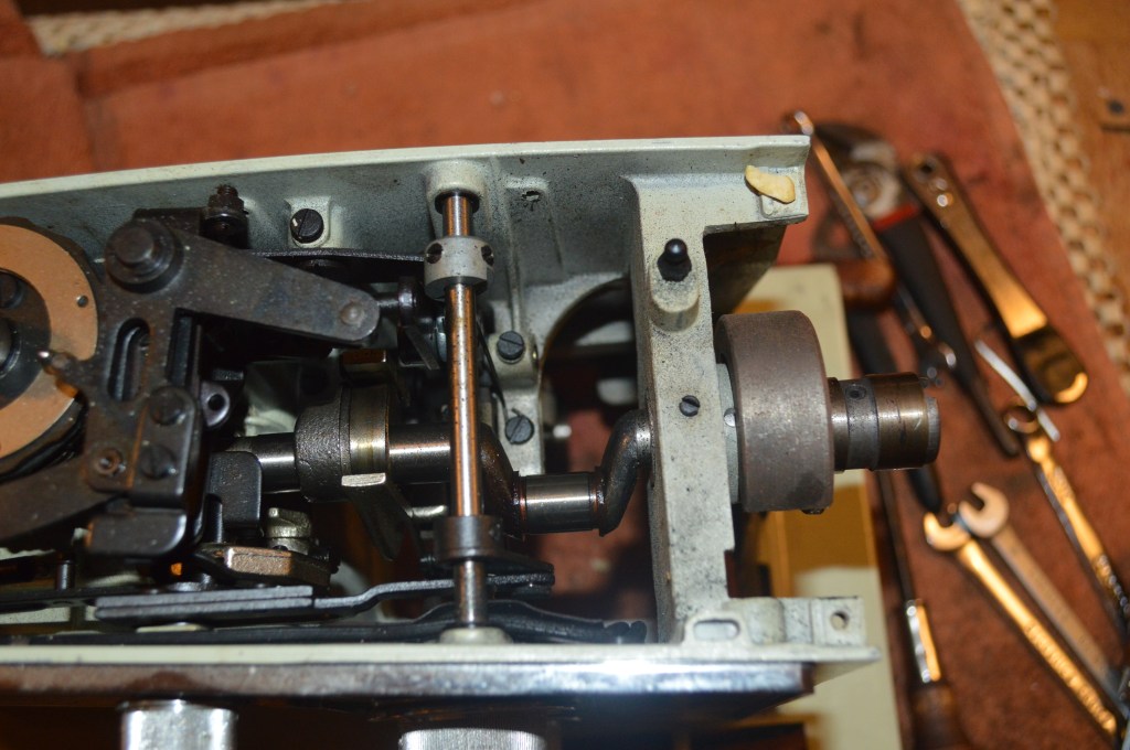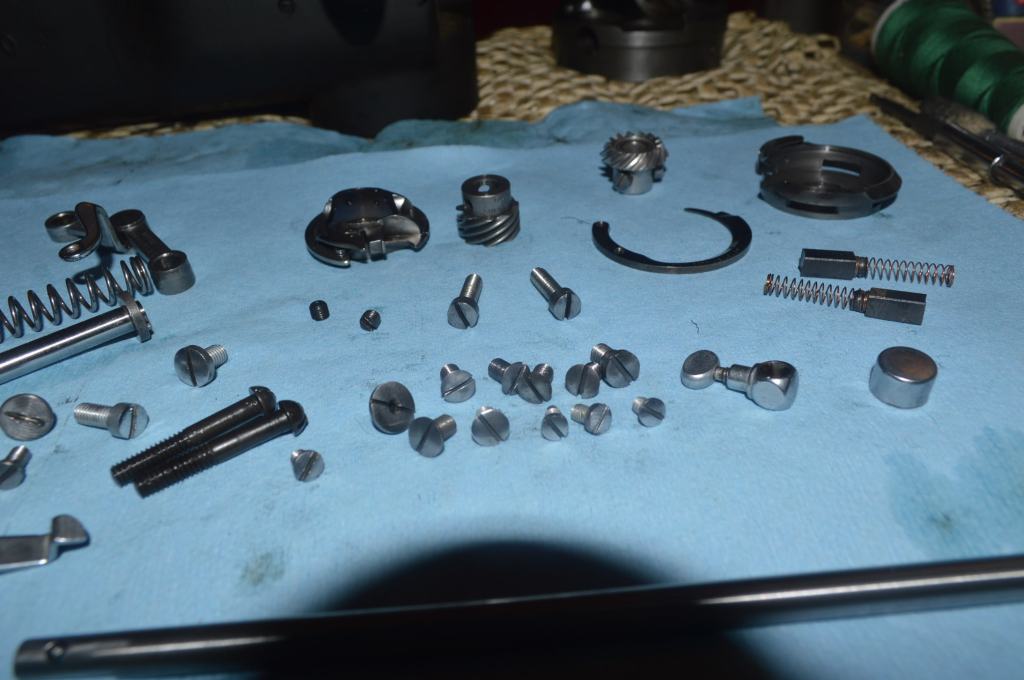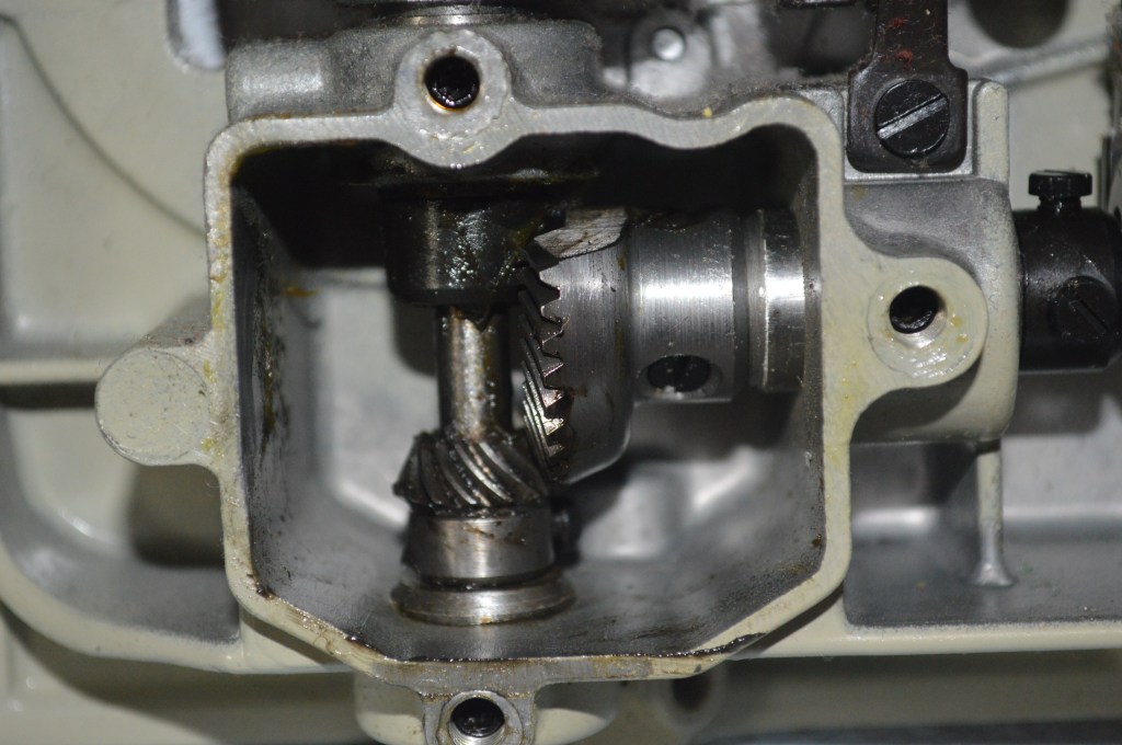 The plan included the disassembly of the top shaft and stitch length fork… The following picture convinced me not to attept this.