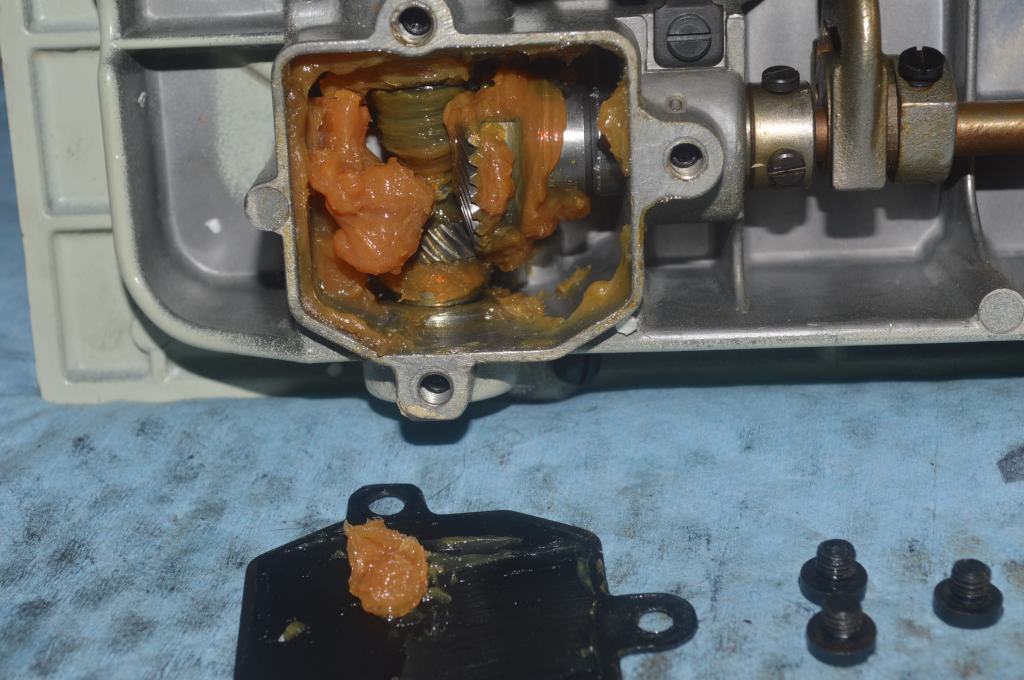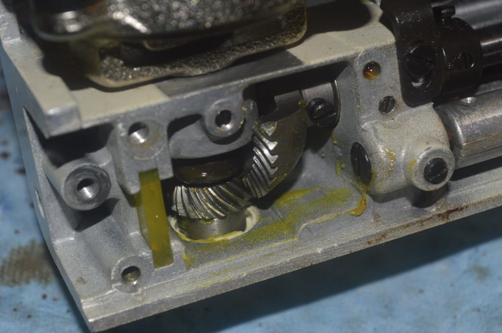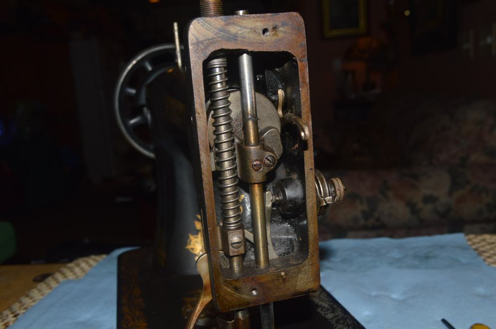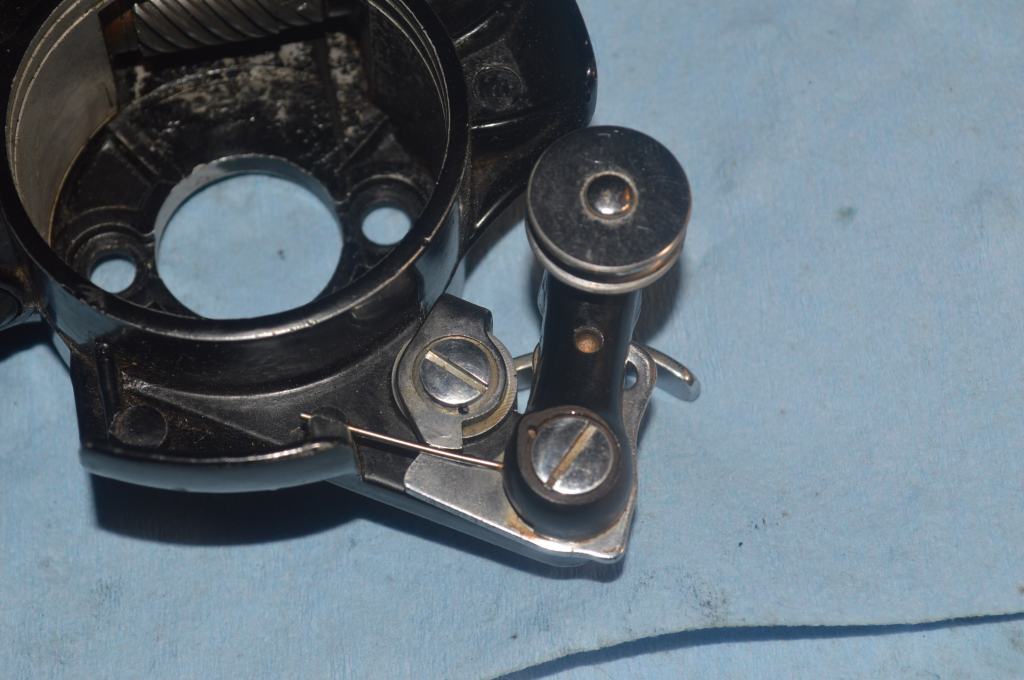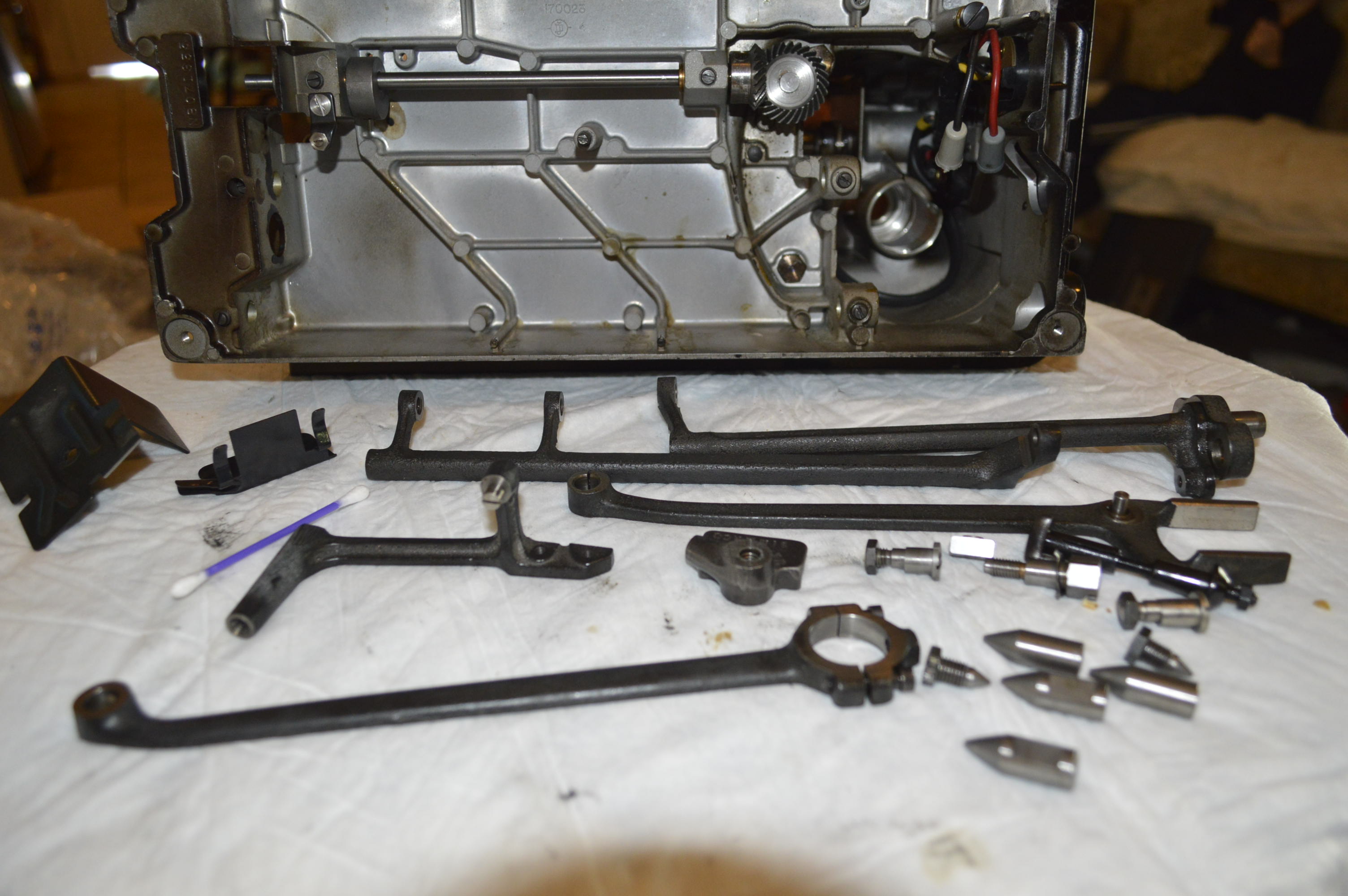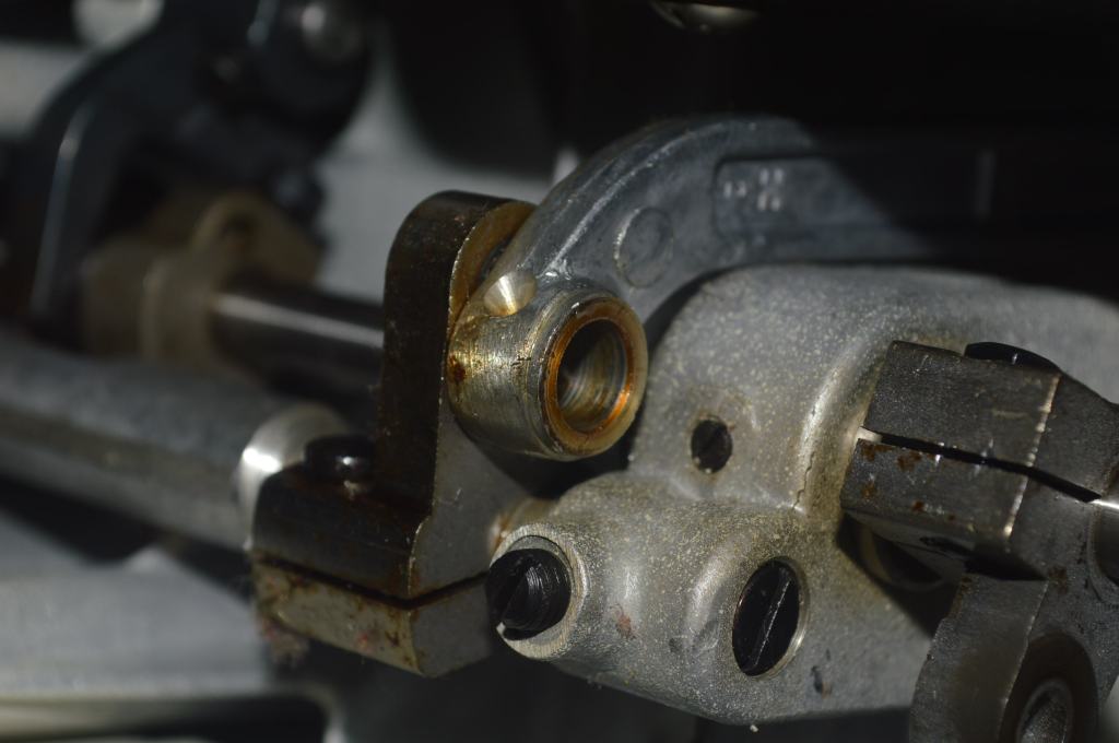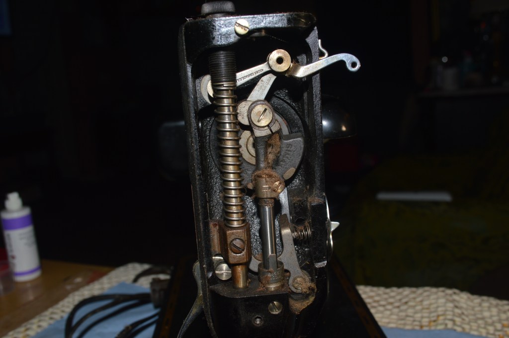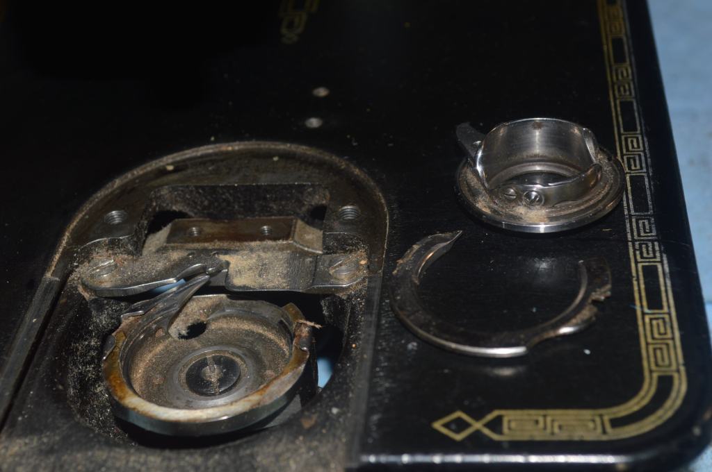 The plan included the disassembly of the top shaft and stitch length fork… The following picture convinced me not to attept this.