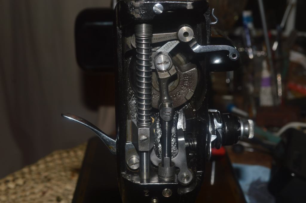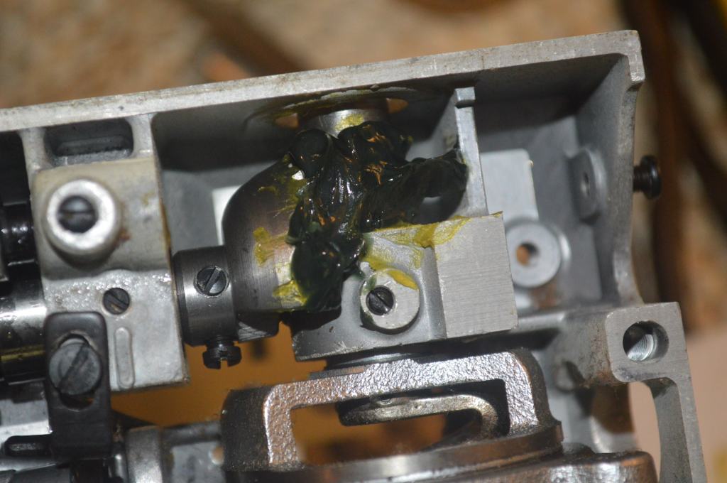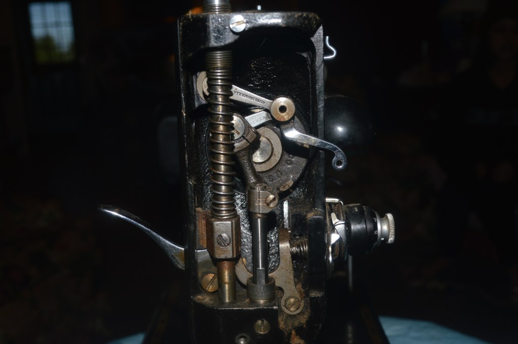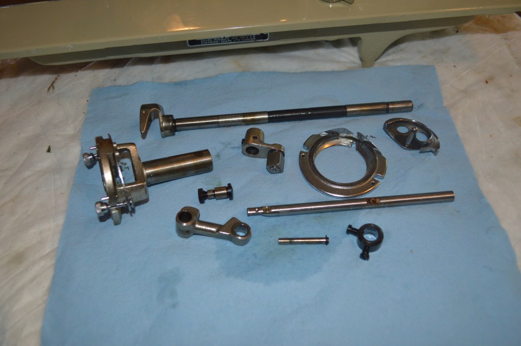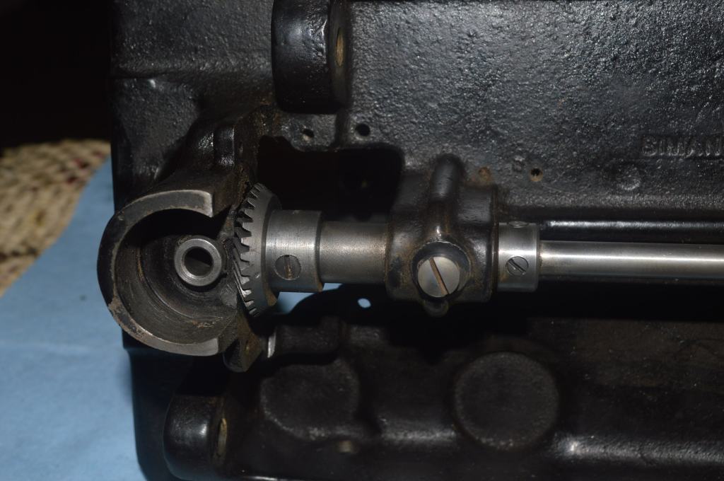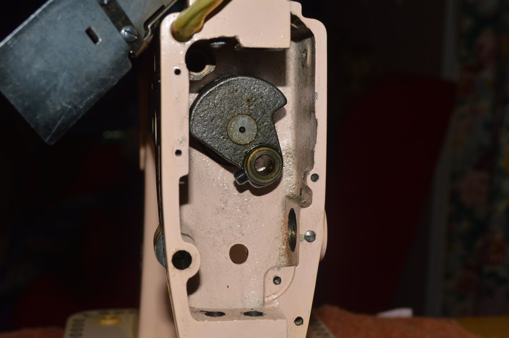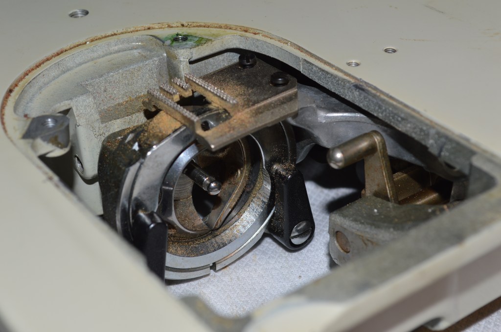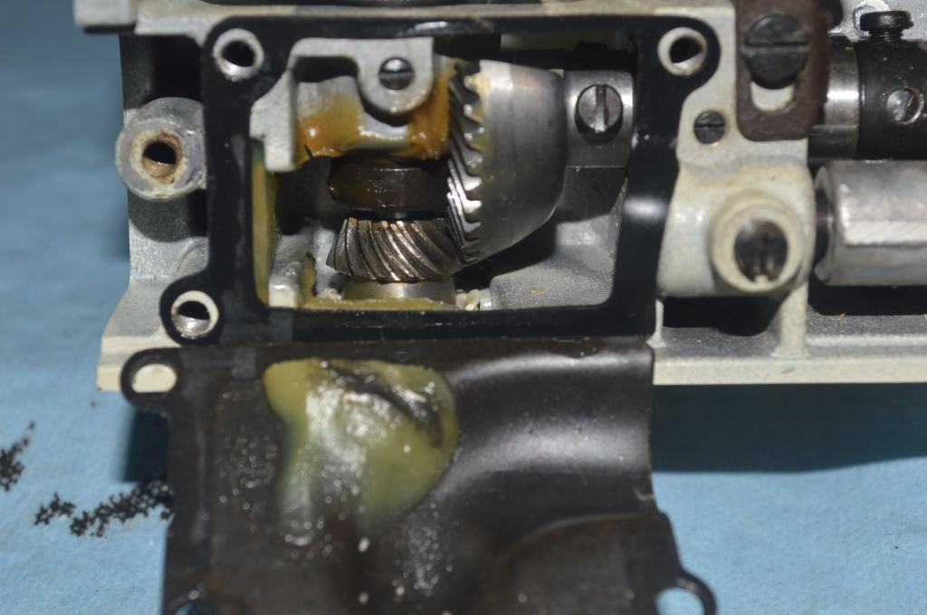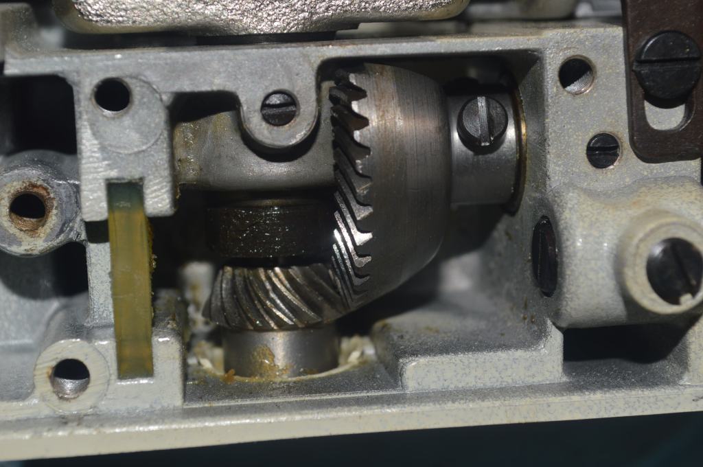 The plan included the disassembly of the top shaft and stitch length fork… The following picture convinced me not to attept this.