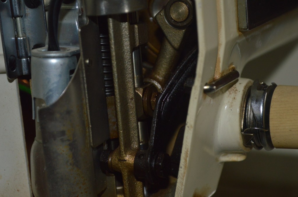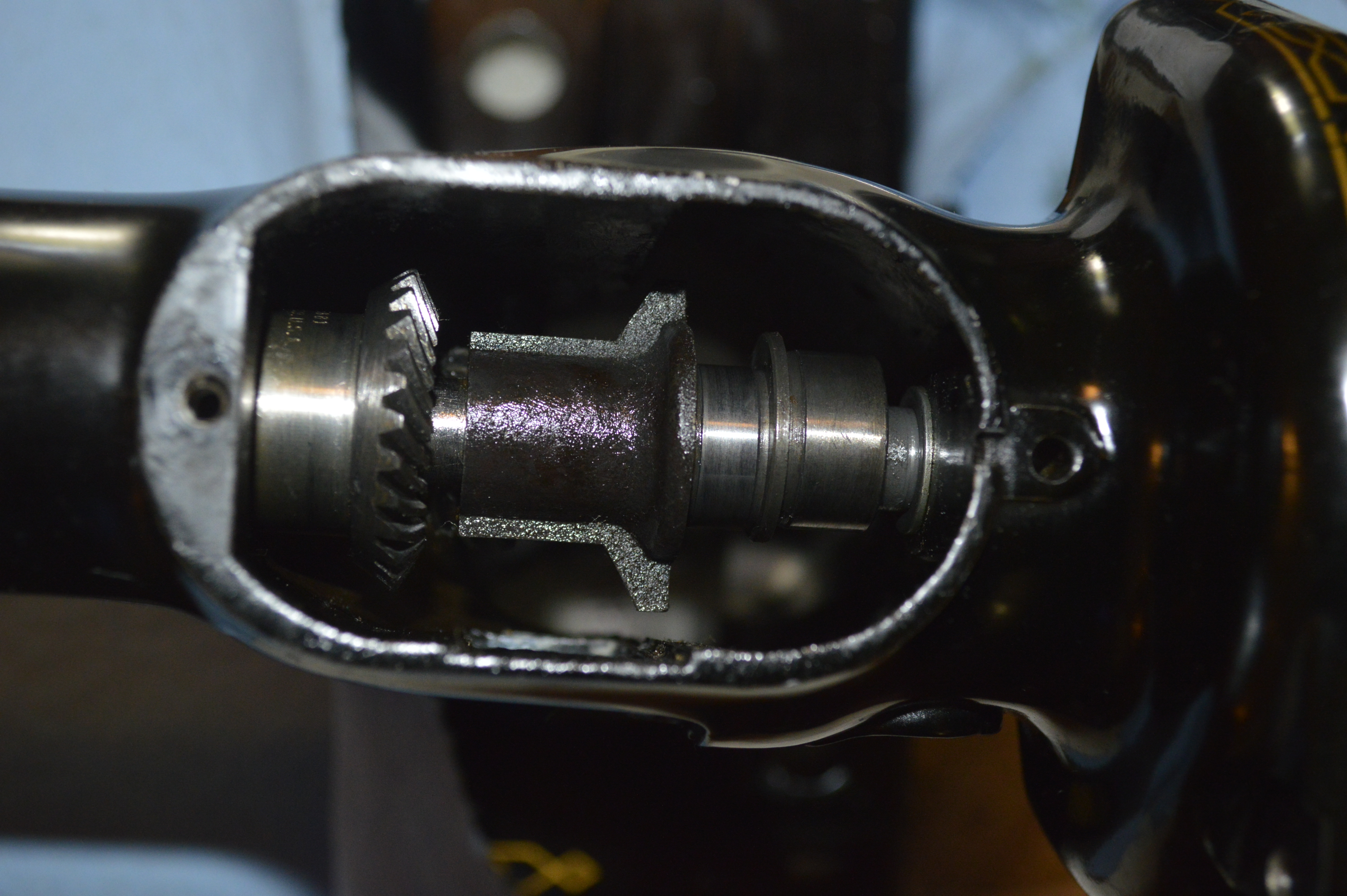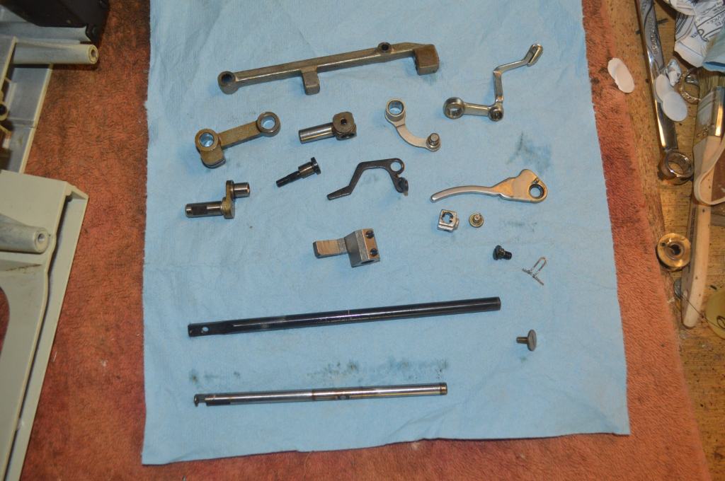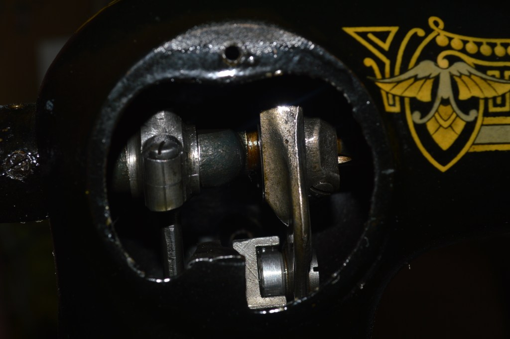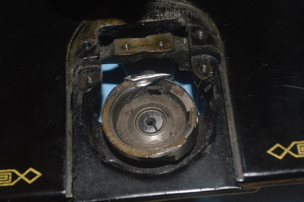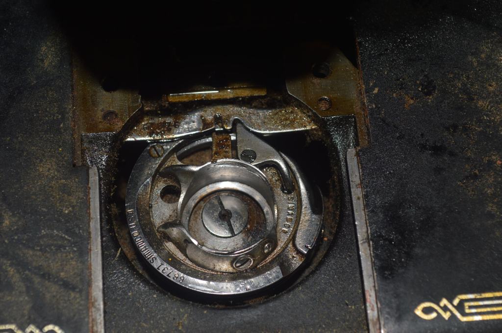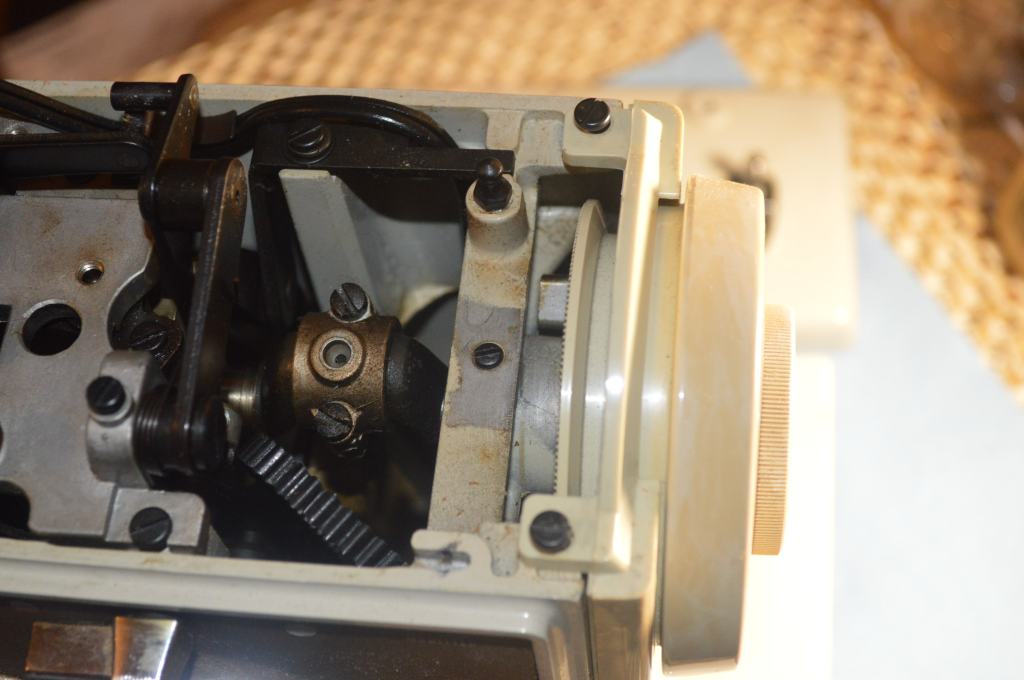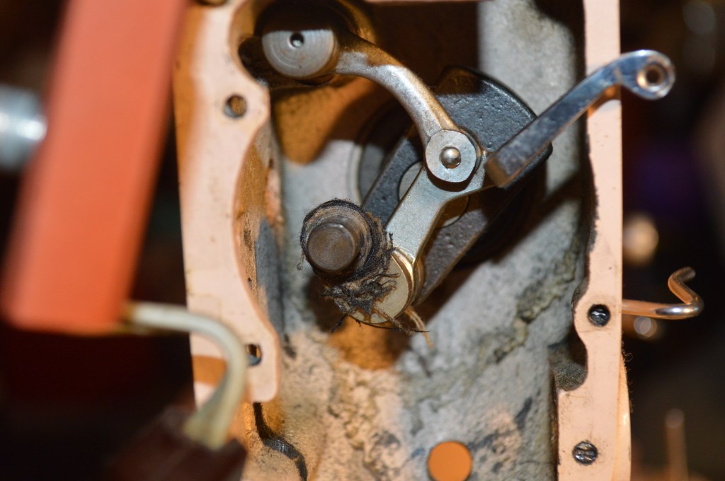 The plan included the disassembly of the top shaft and stitch length fork… The following picture convinced me not to attept this.