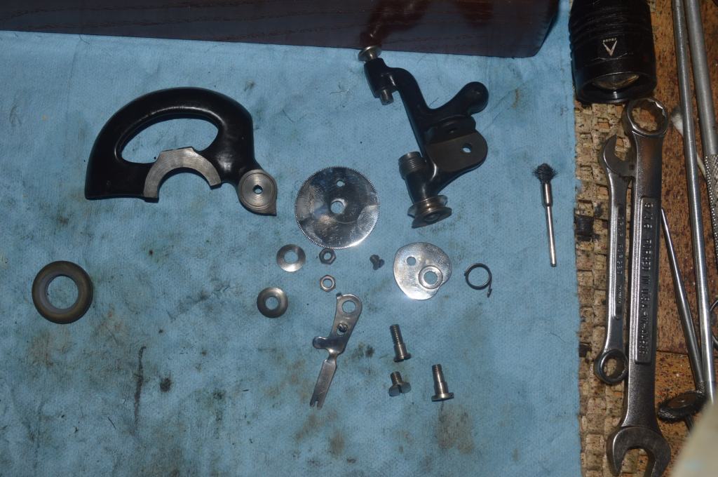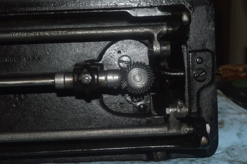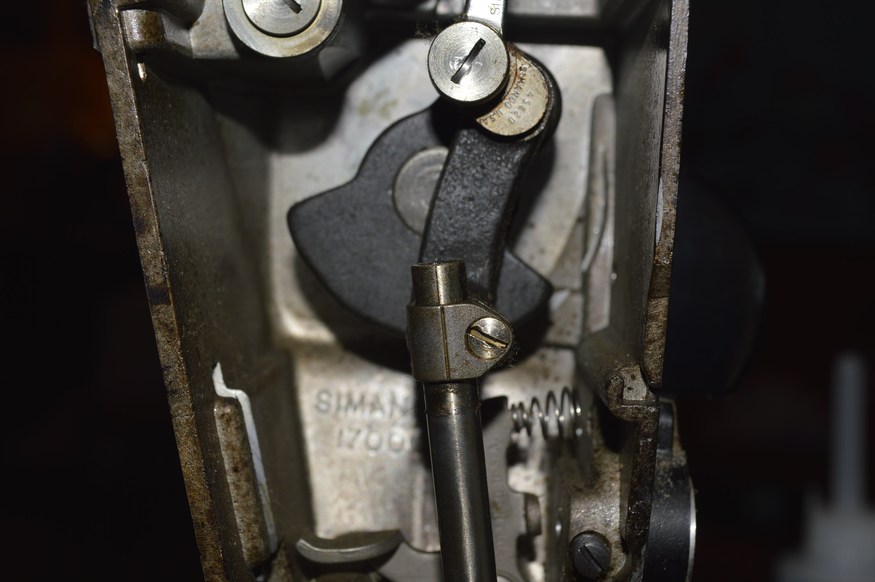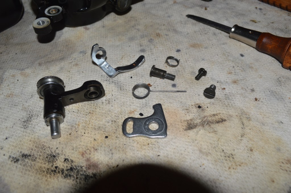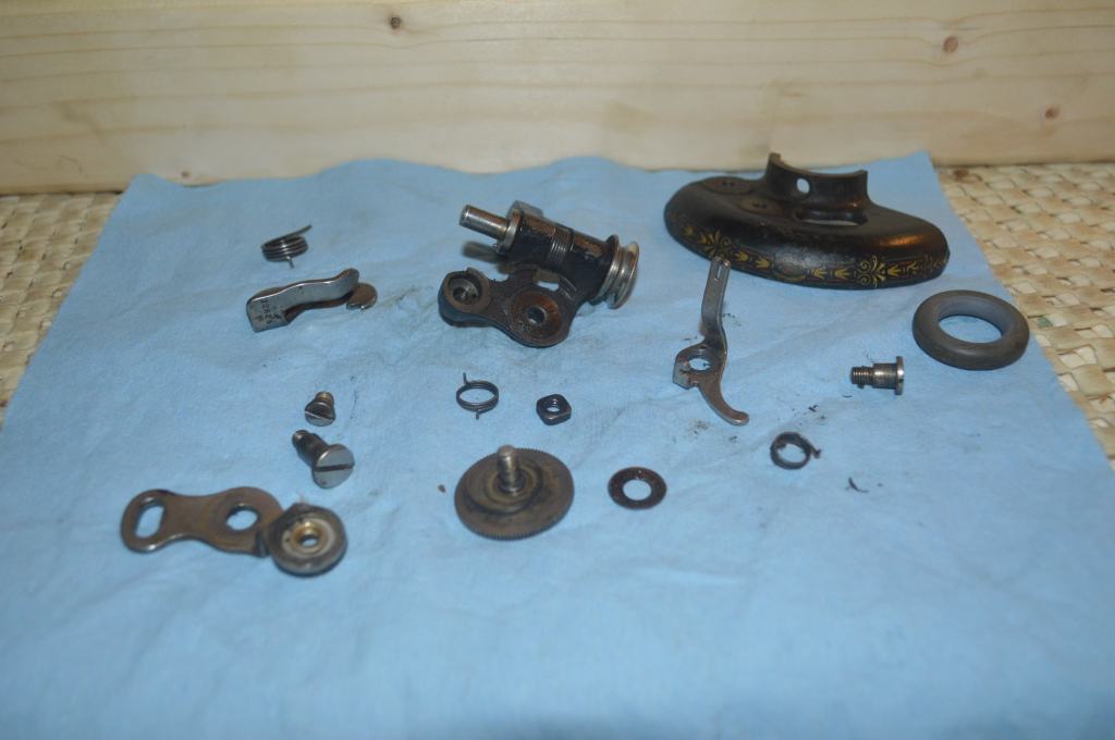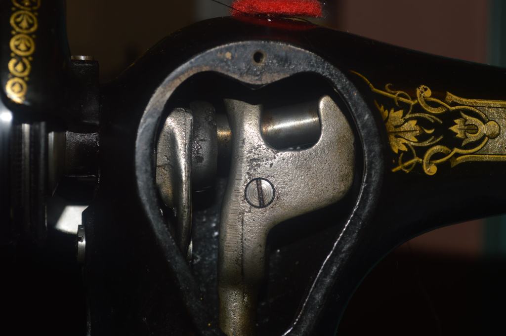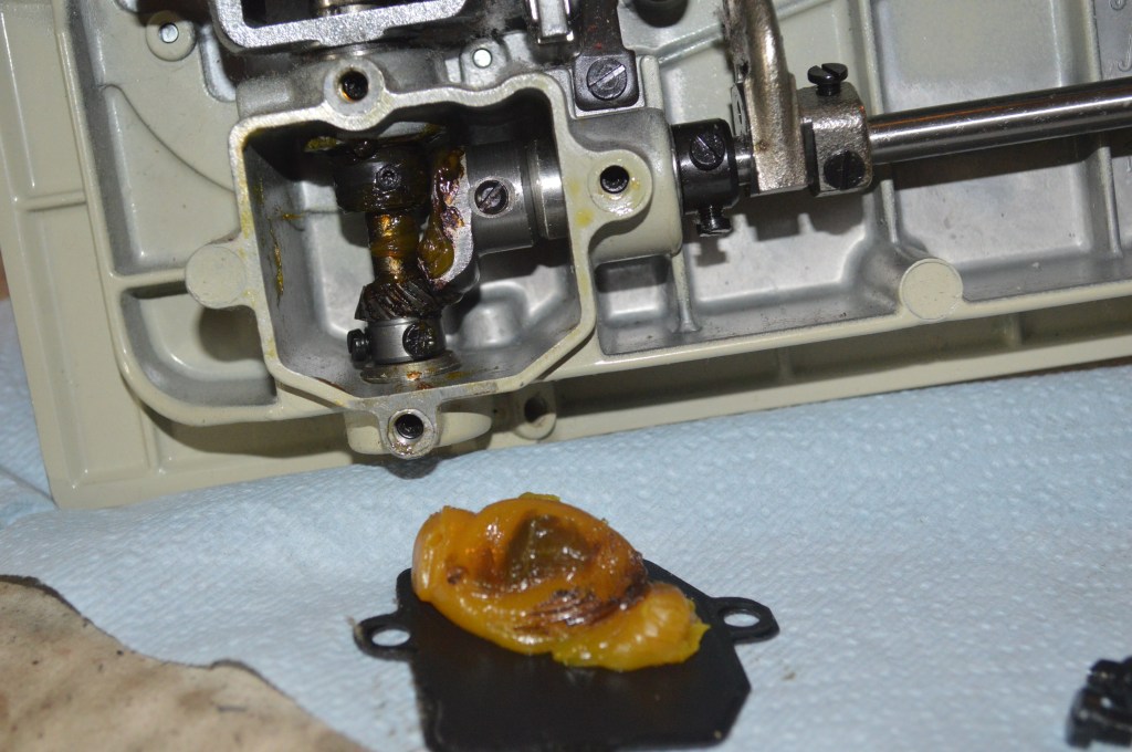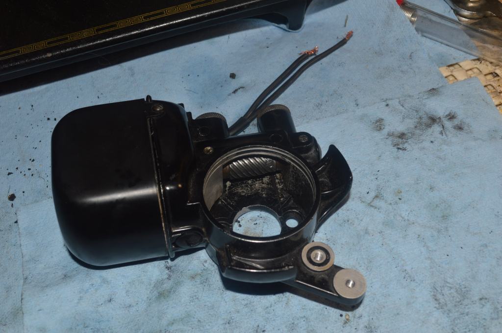 The plan included the disassembly of the top shaft and stitch length fork… The following picture convinced me not to attept this.
