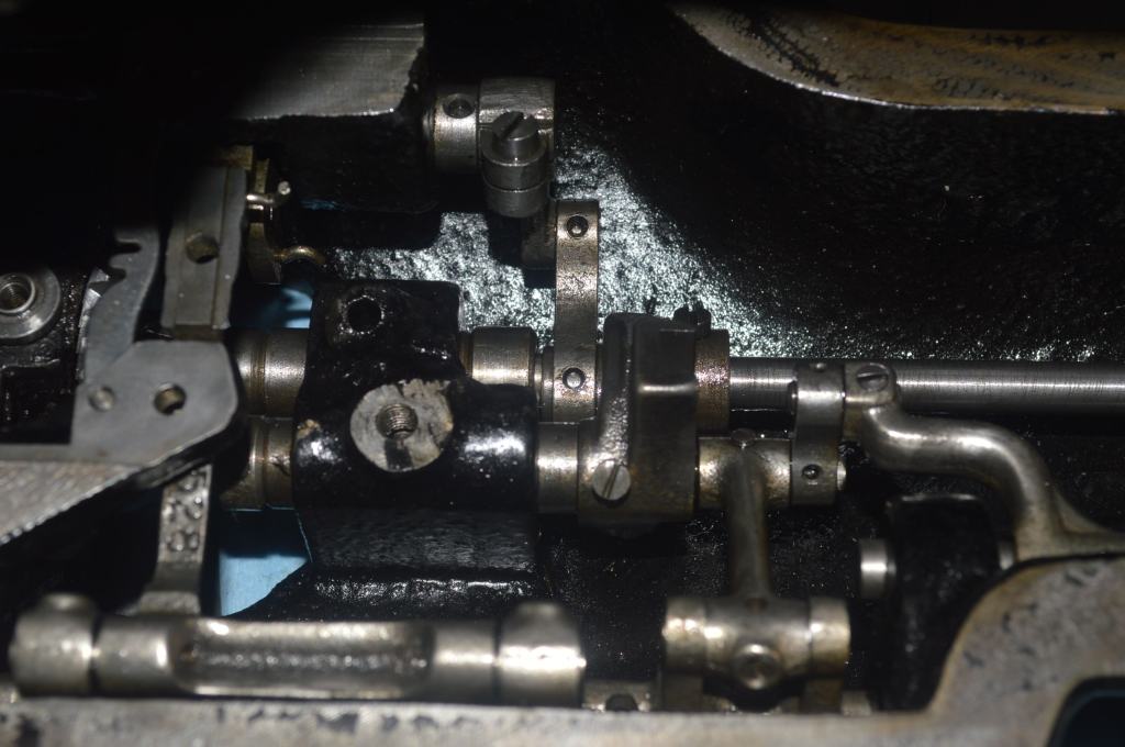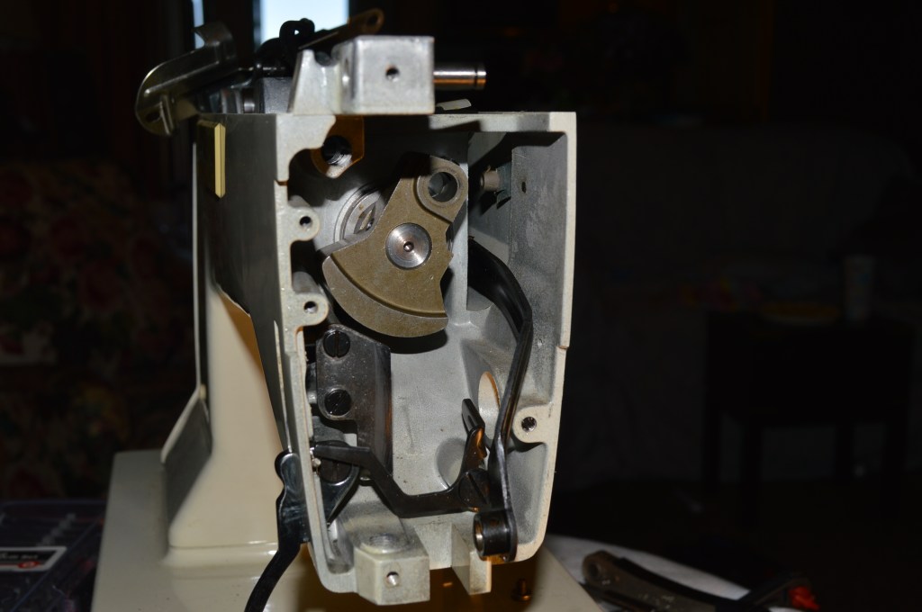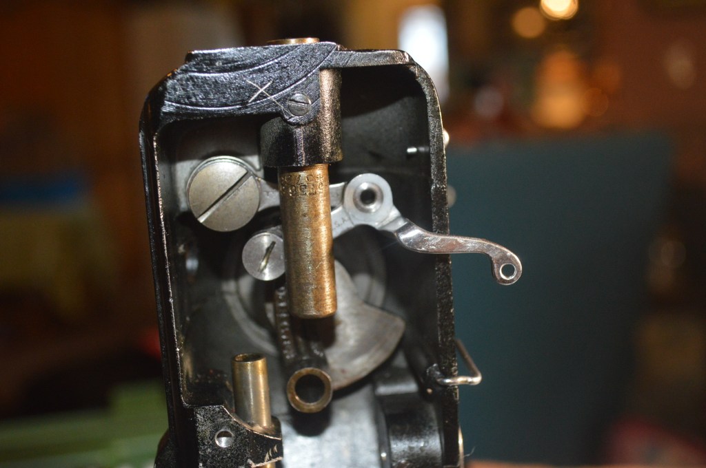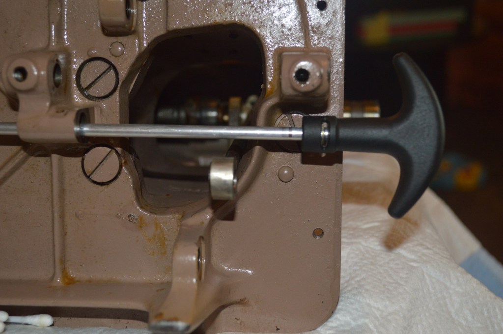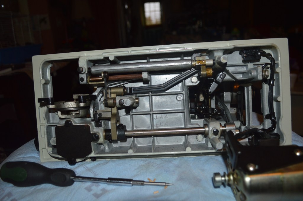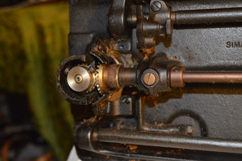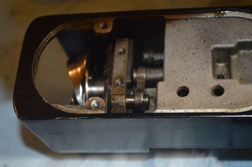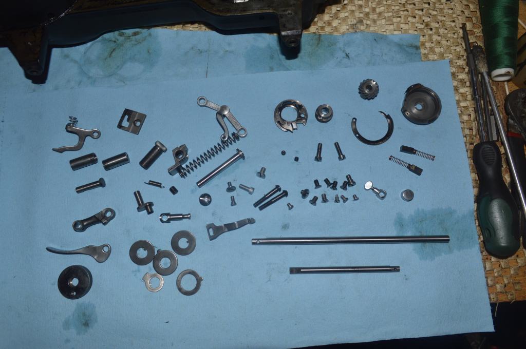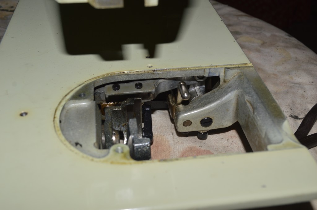 The plan included the disassembly of the top shaft and stitch length fork… The following picture convinced me not to attept this.