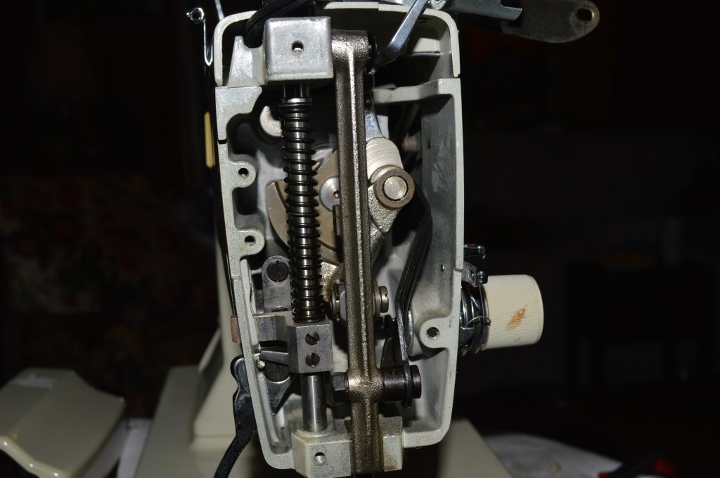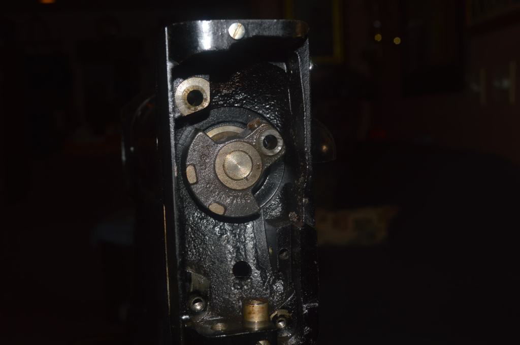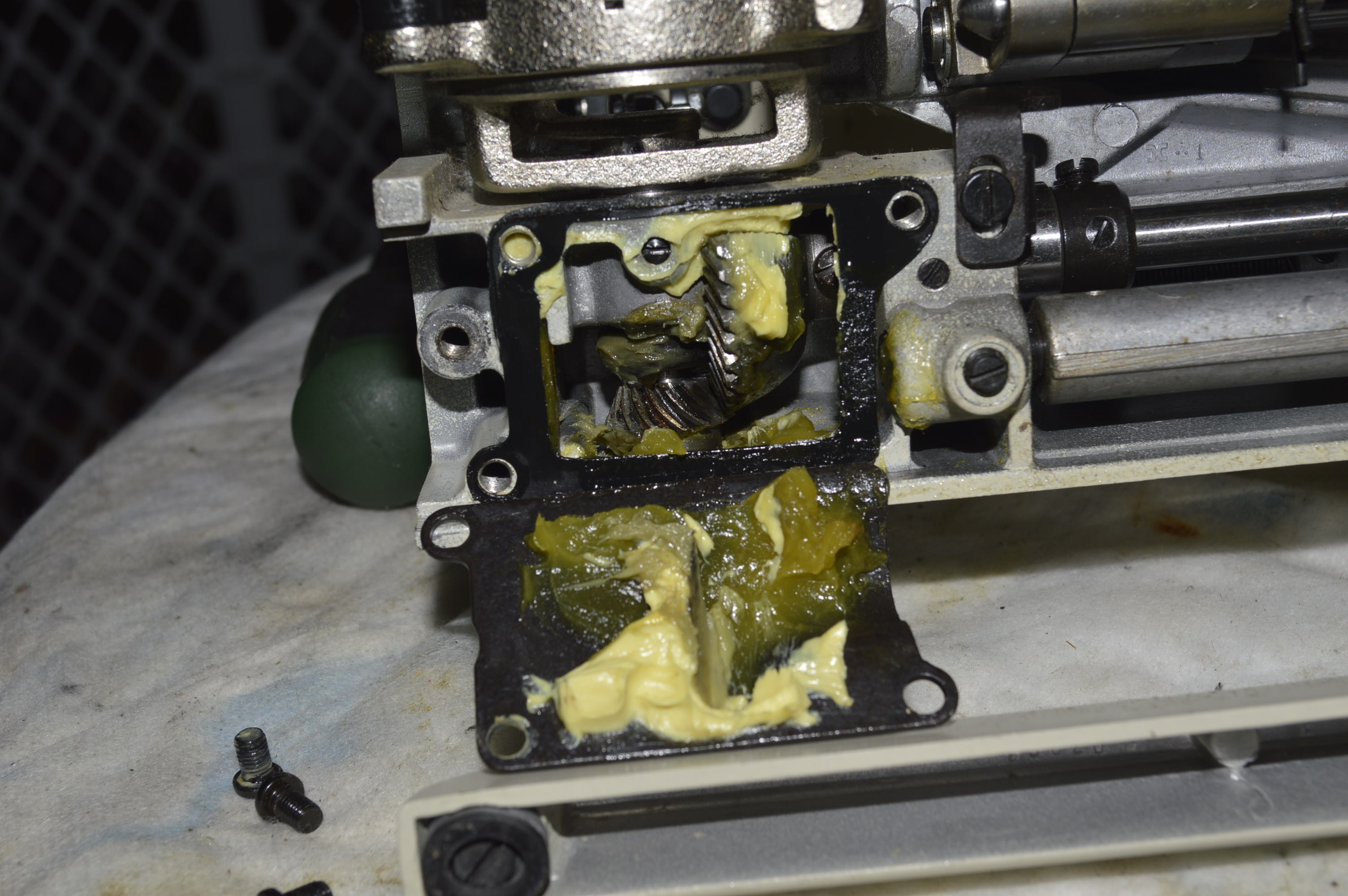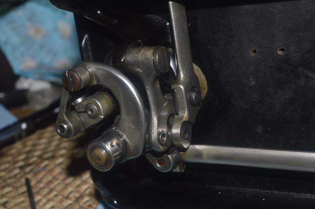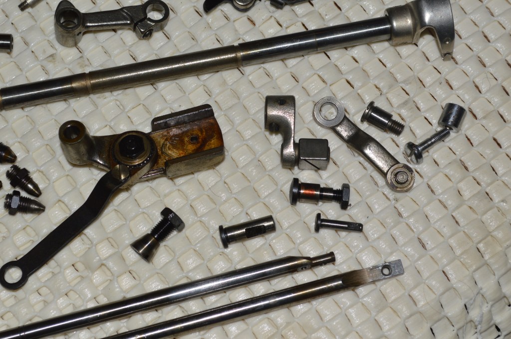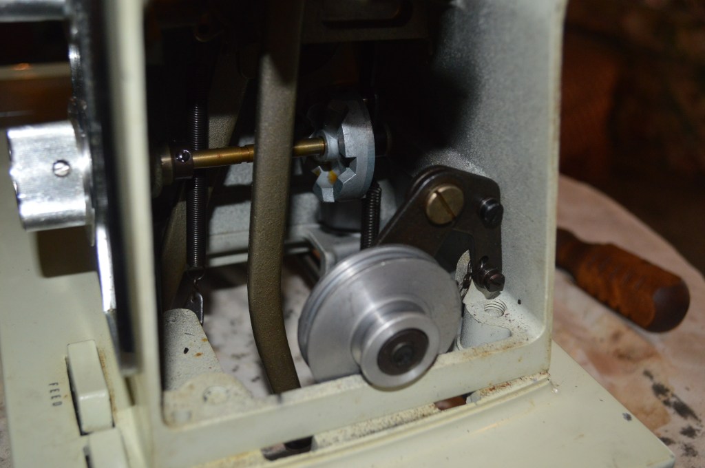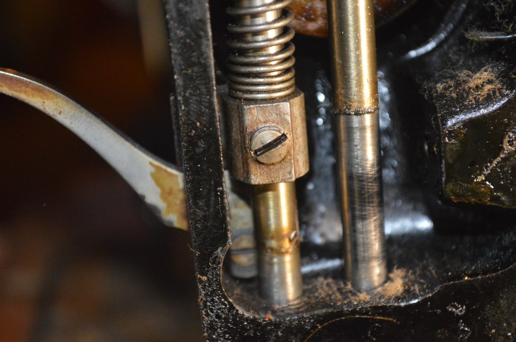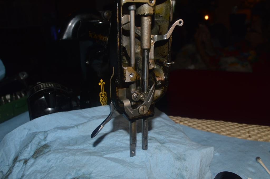 The plan included the disassembly of the top shaft and stitch length fork… The following picture convinced me not to attept this.