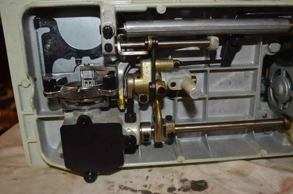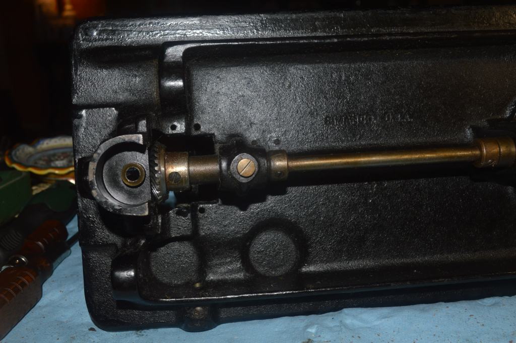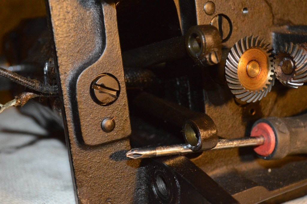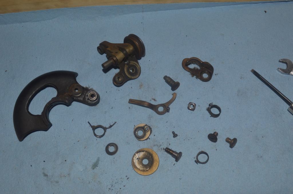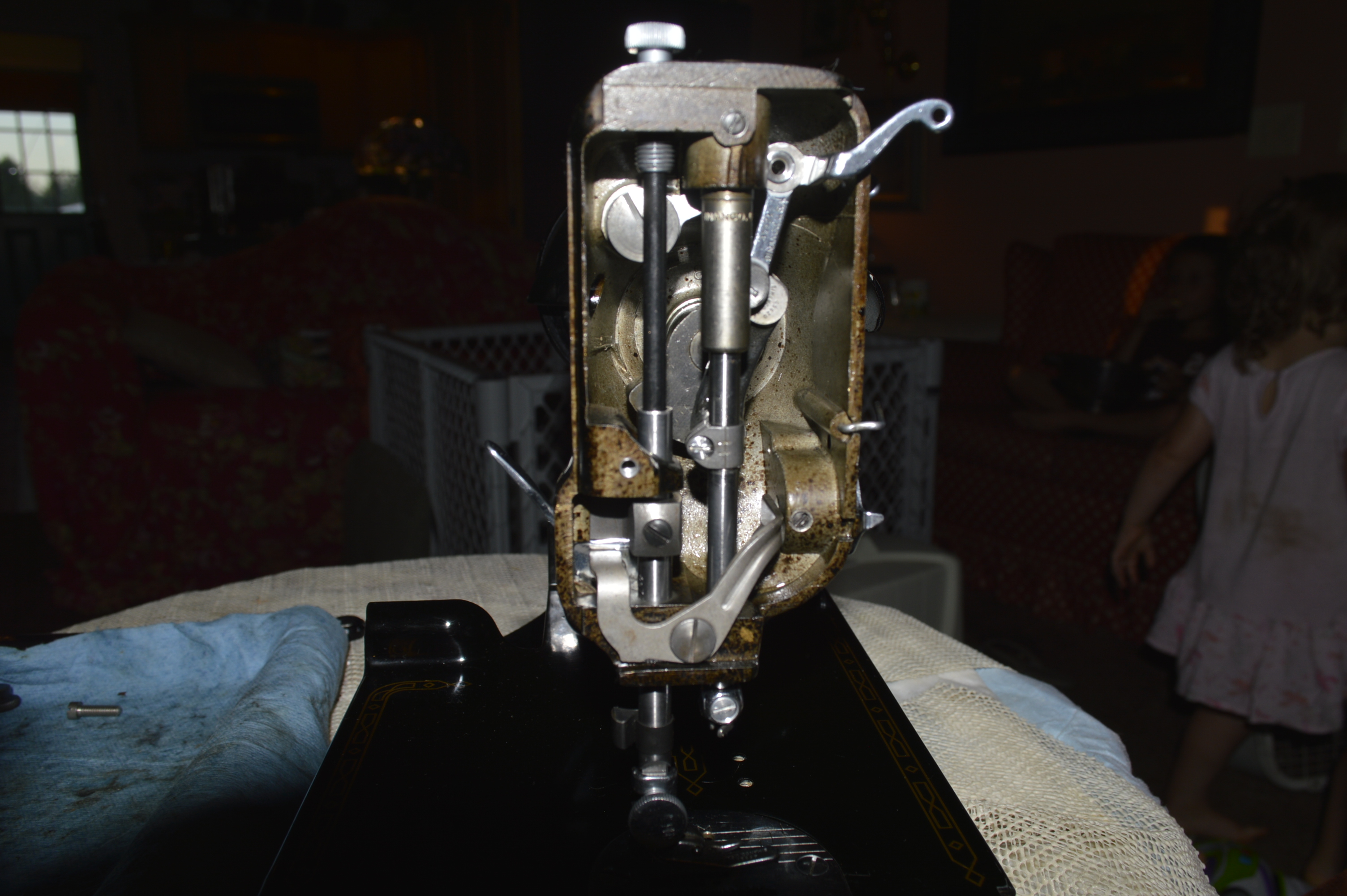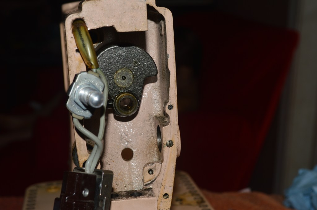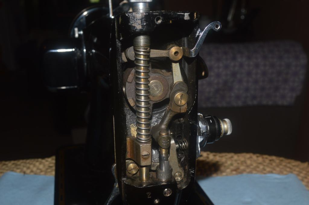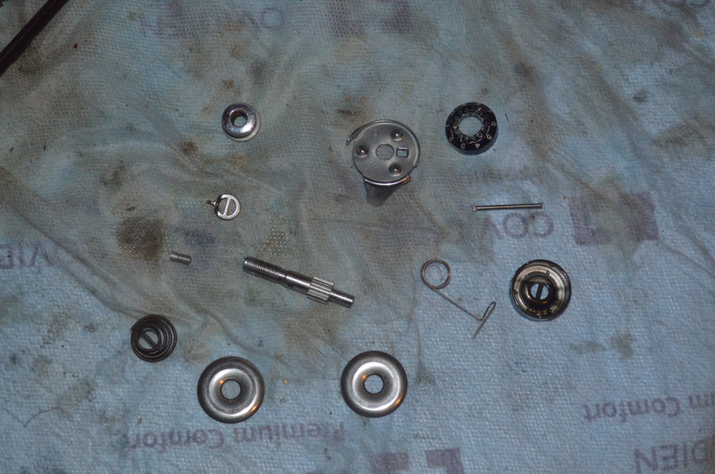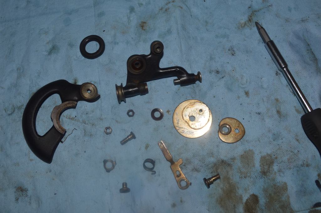 The plan included the disassembly of the top shaft and stitch length fork… The following picture convinced me not to attept this.